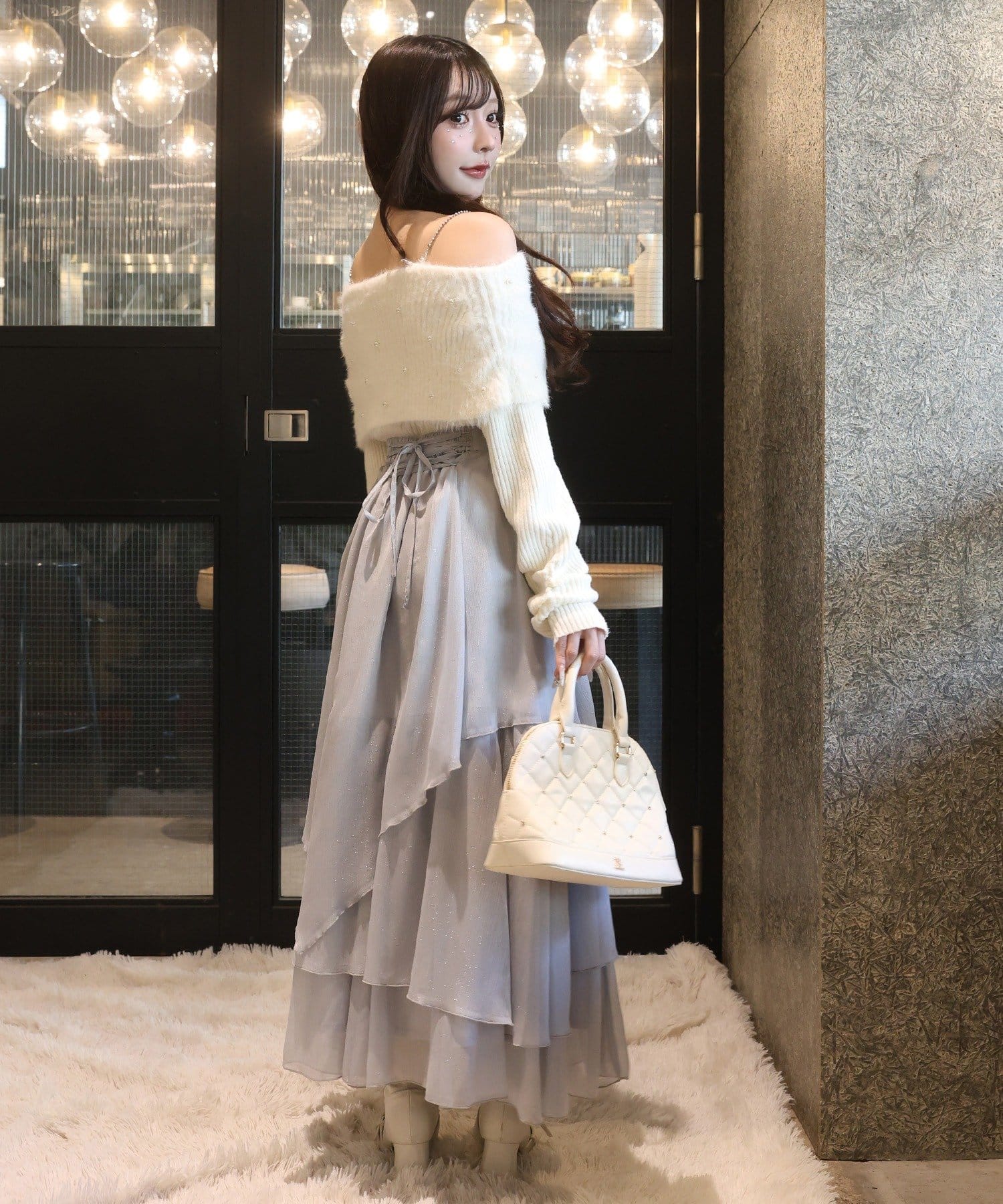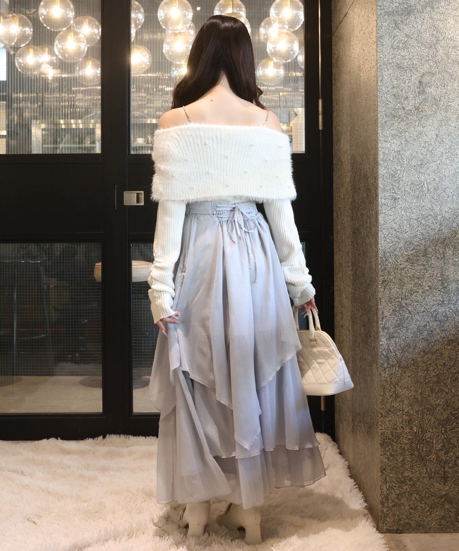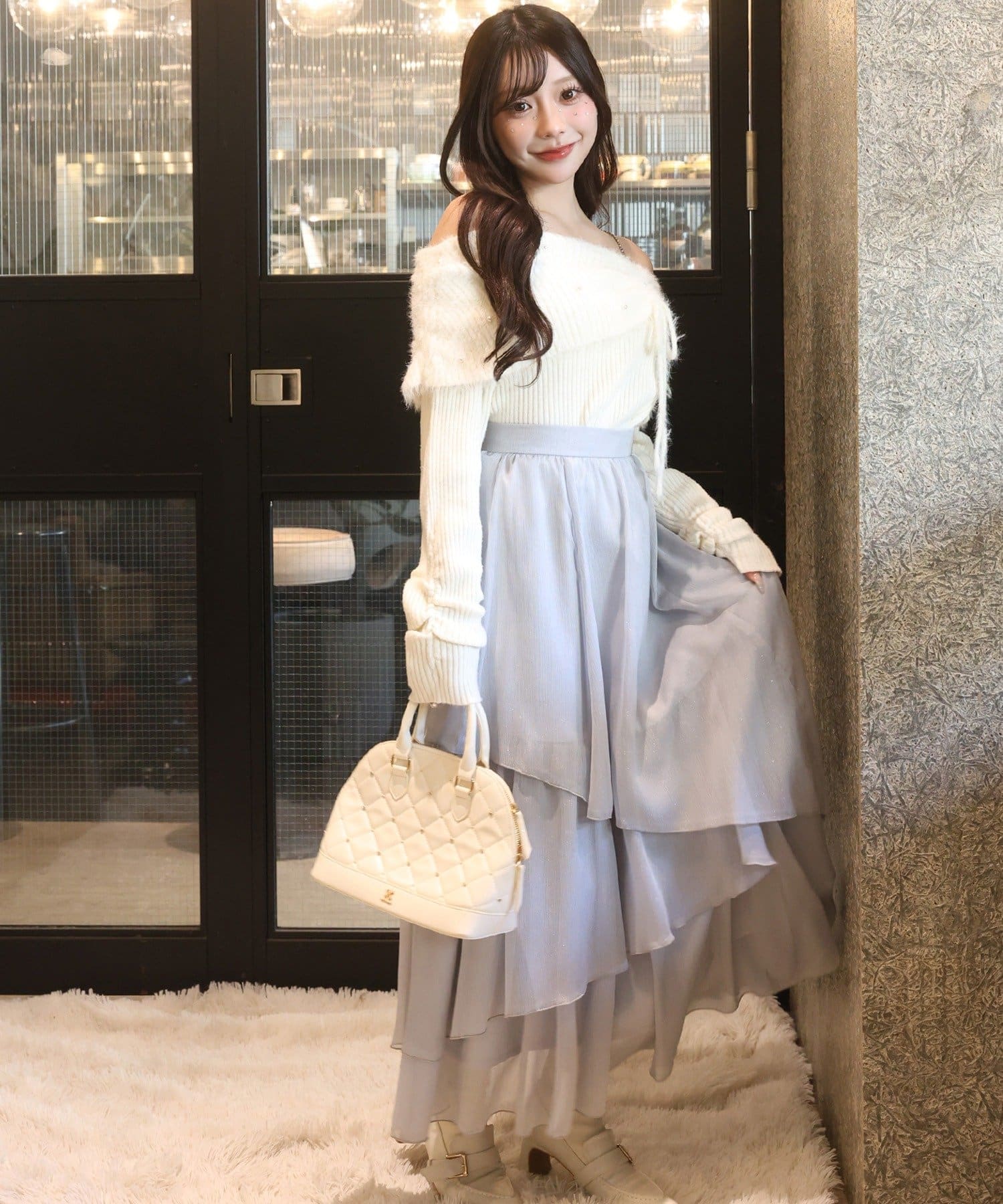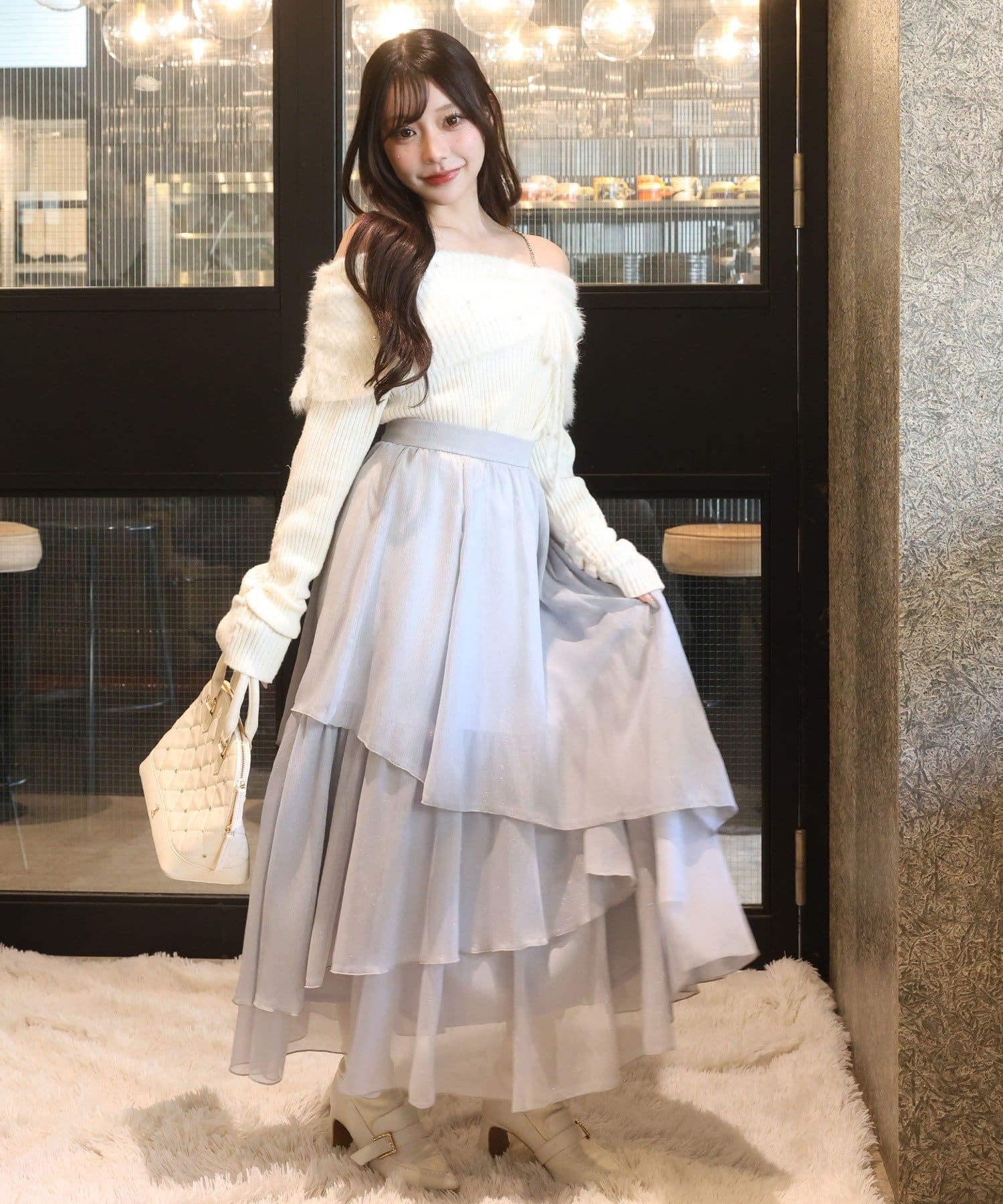 ニットやカーディガンと合わせてフェミニンな冬コーデに