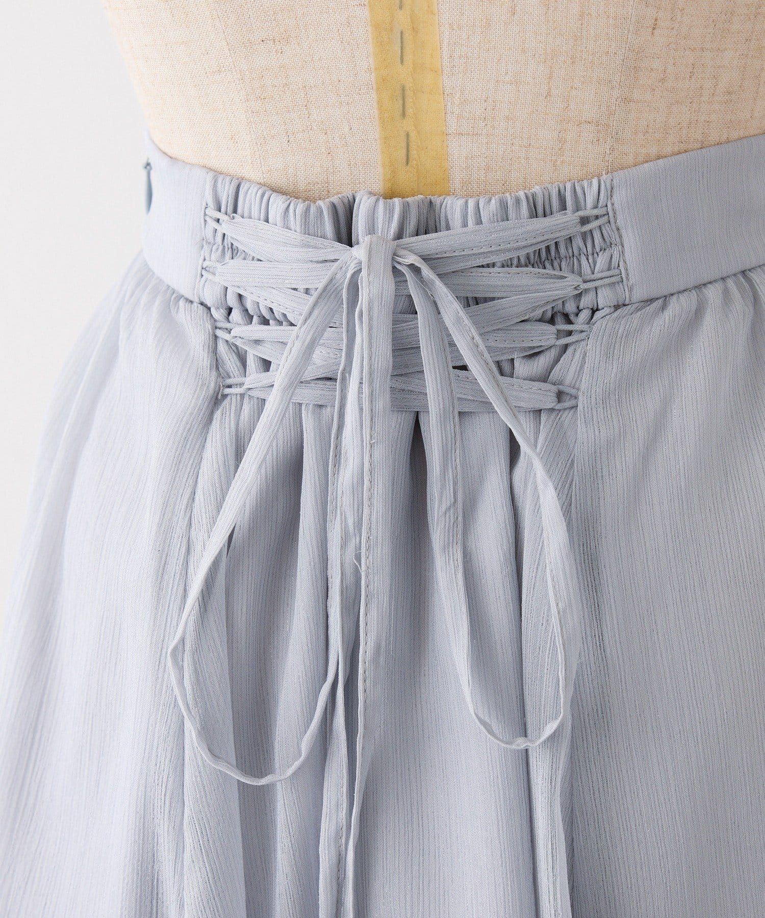 軽やかで透け感のある素材が、歩くたびに揺れてフェミニンさを演出します。