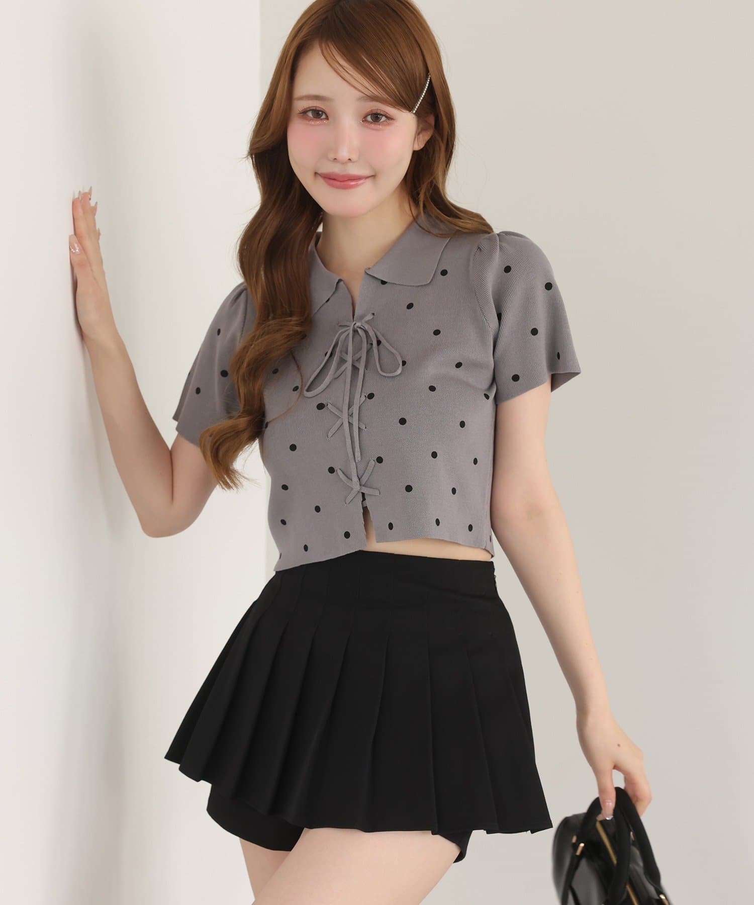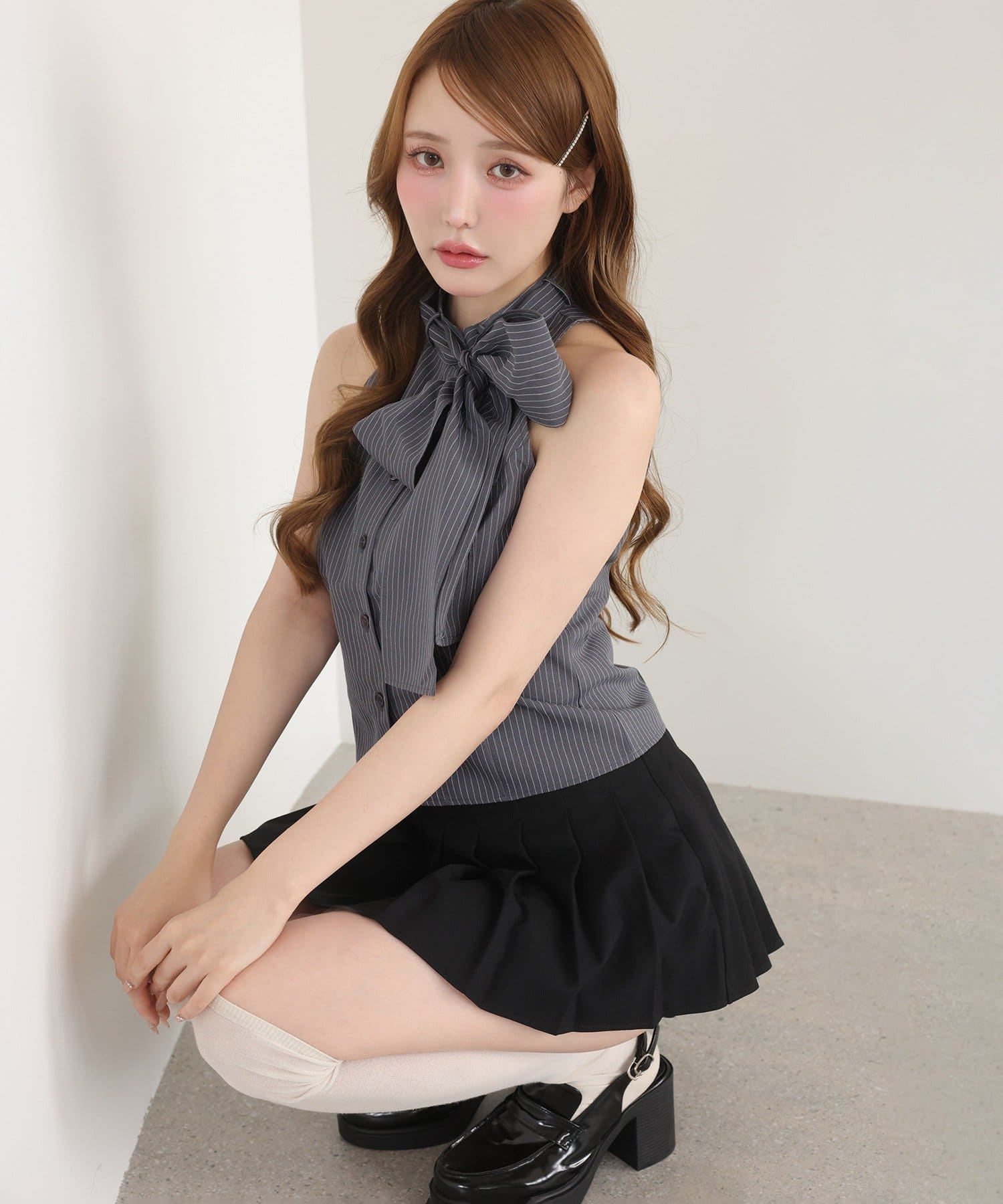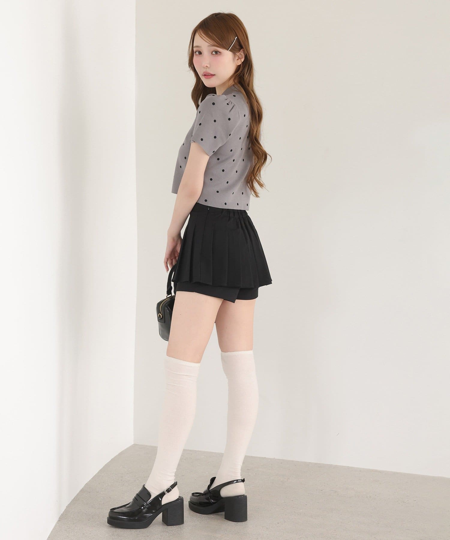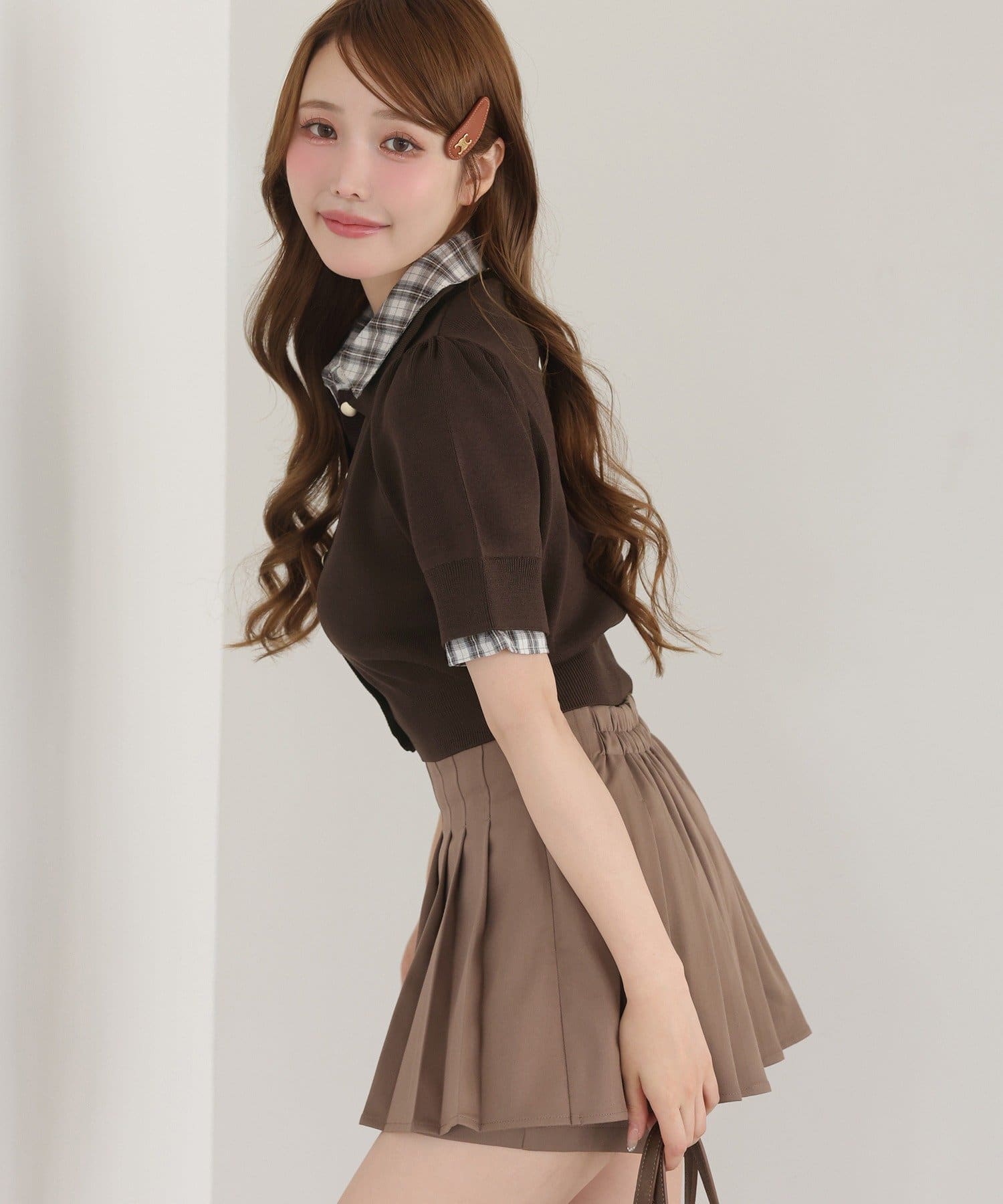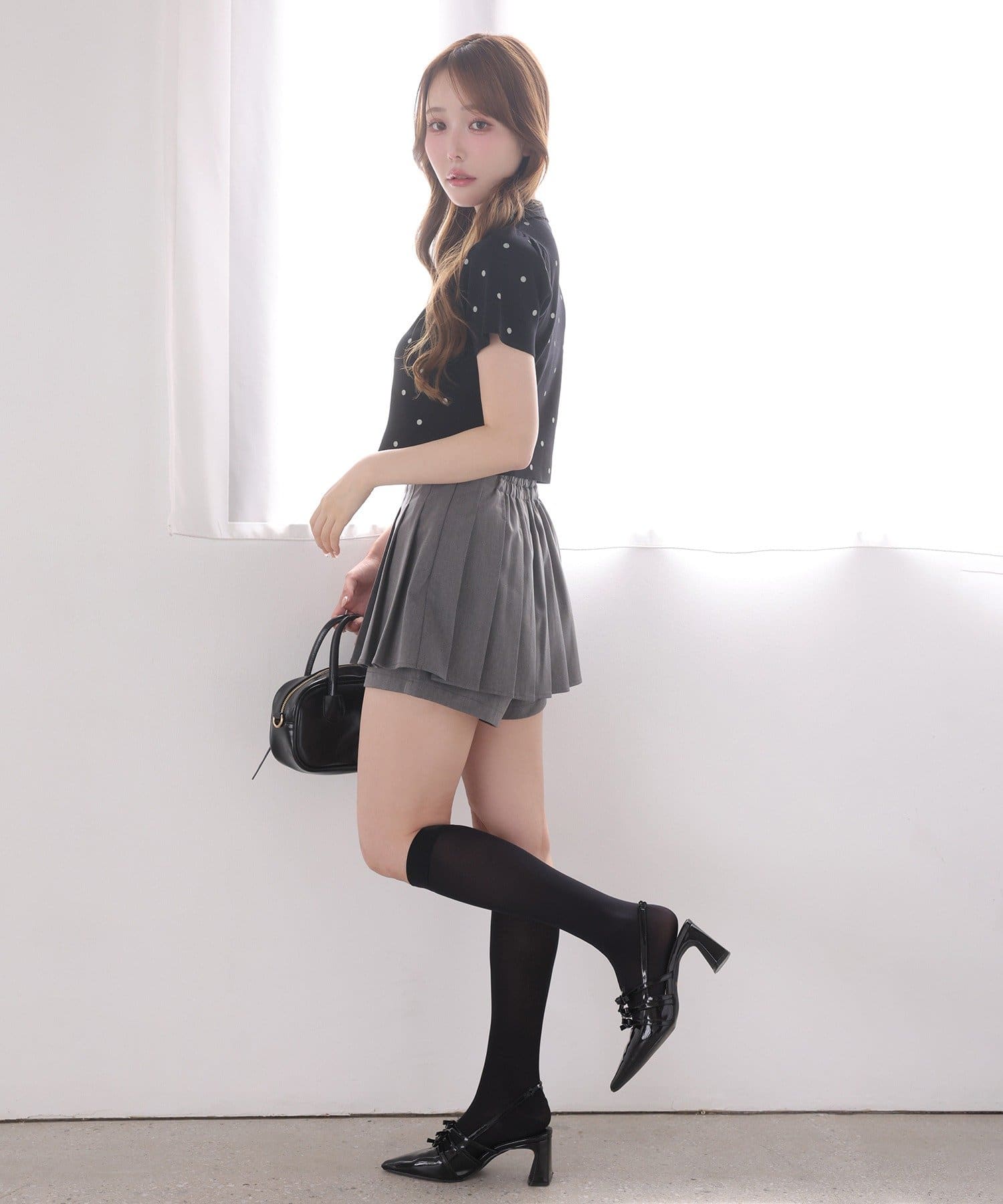 細かめのプリーツは、動くたびに揺れ動き大人っぽさもプラスします。