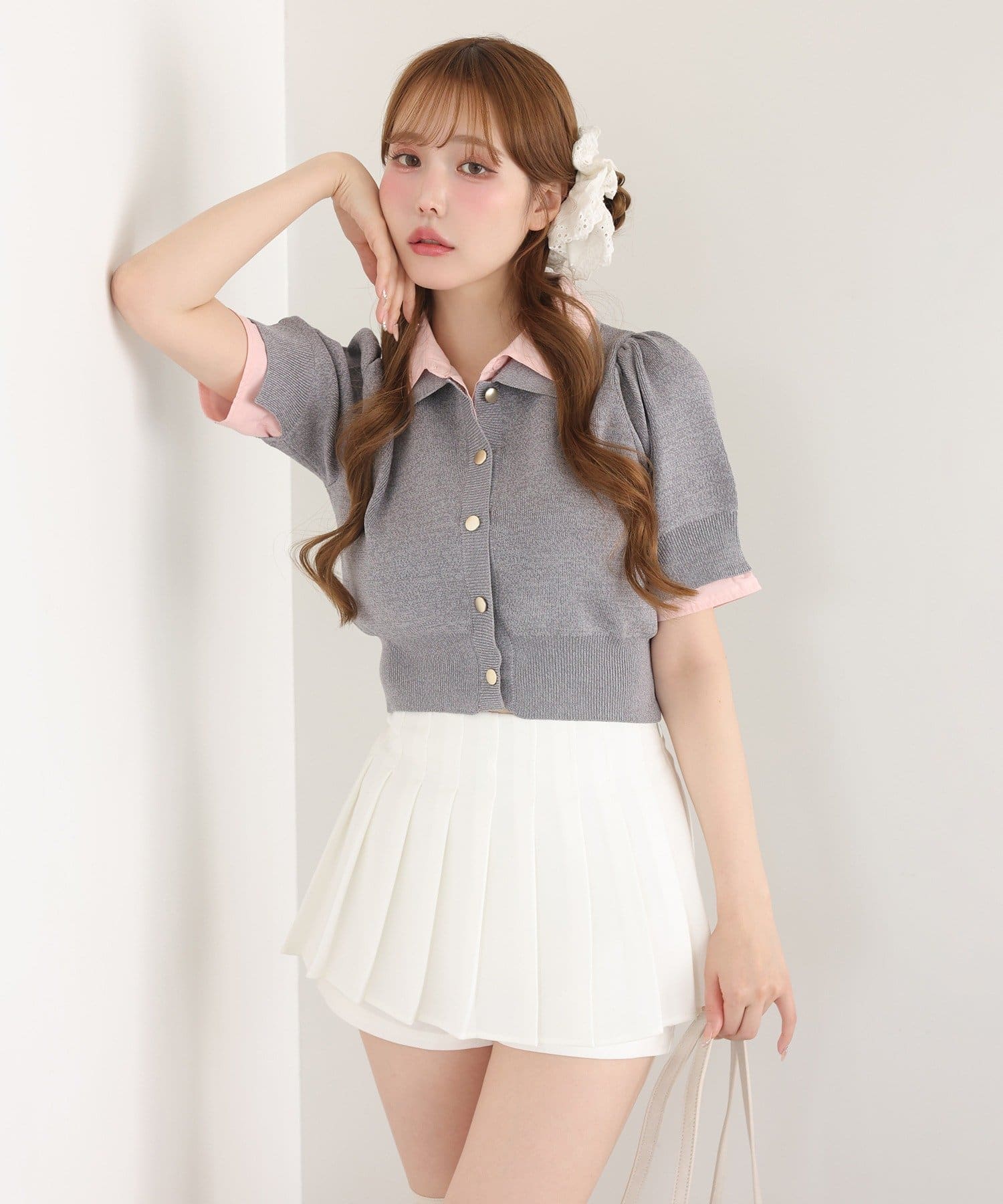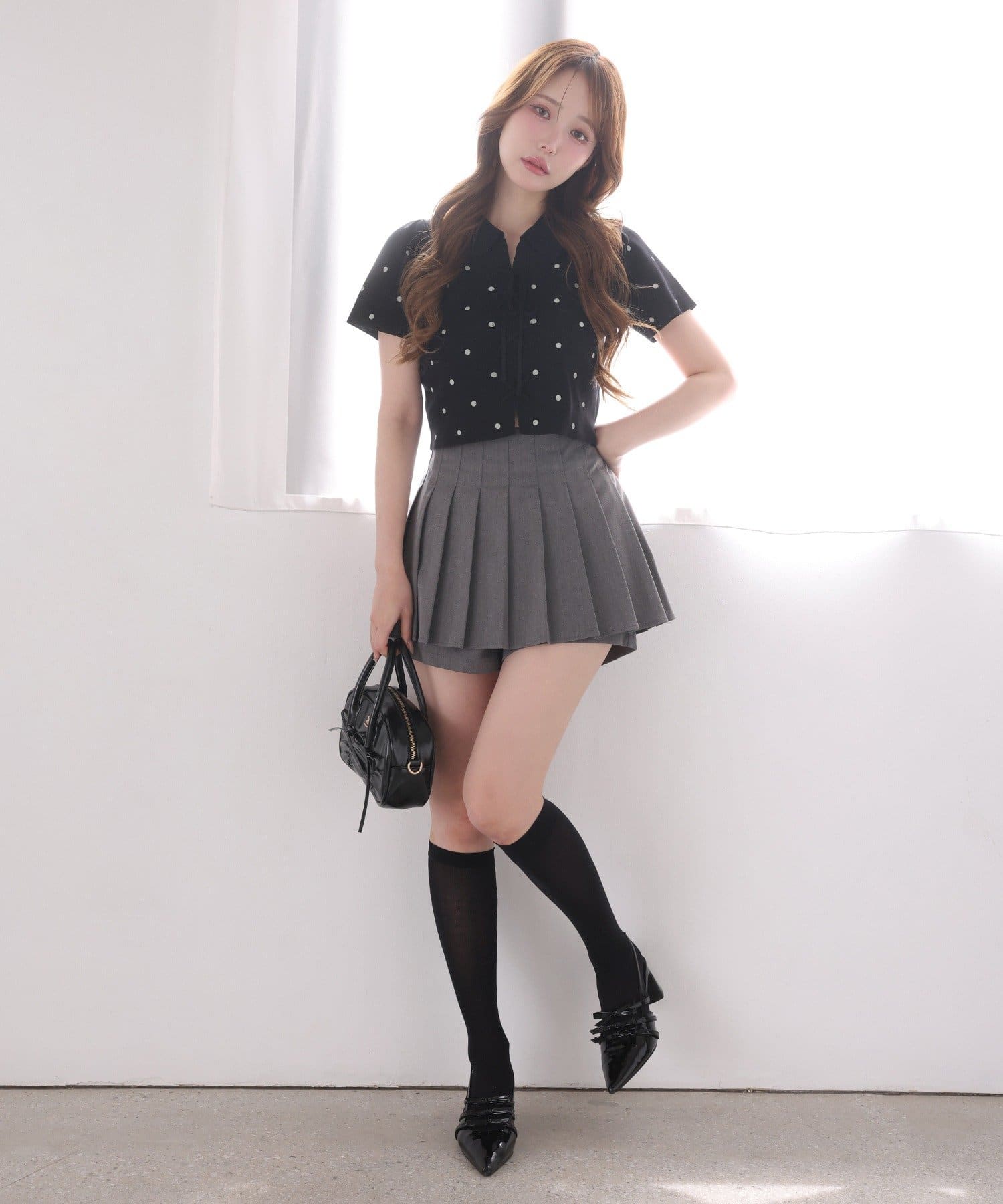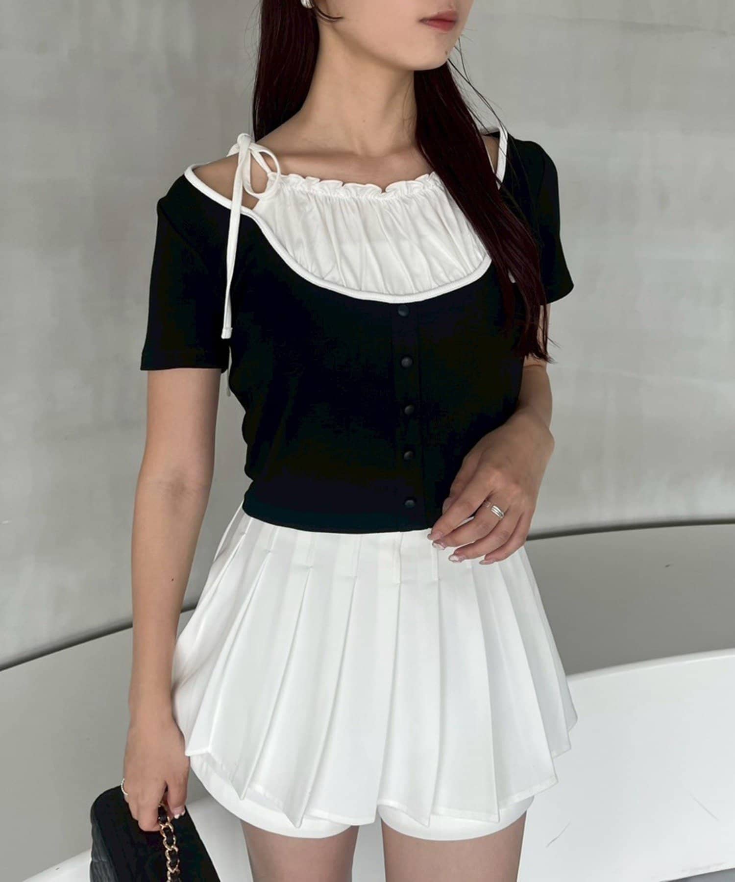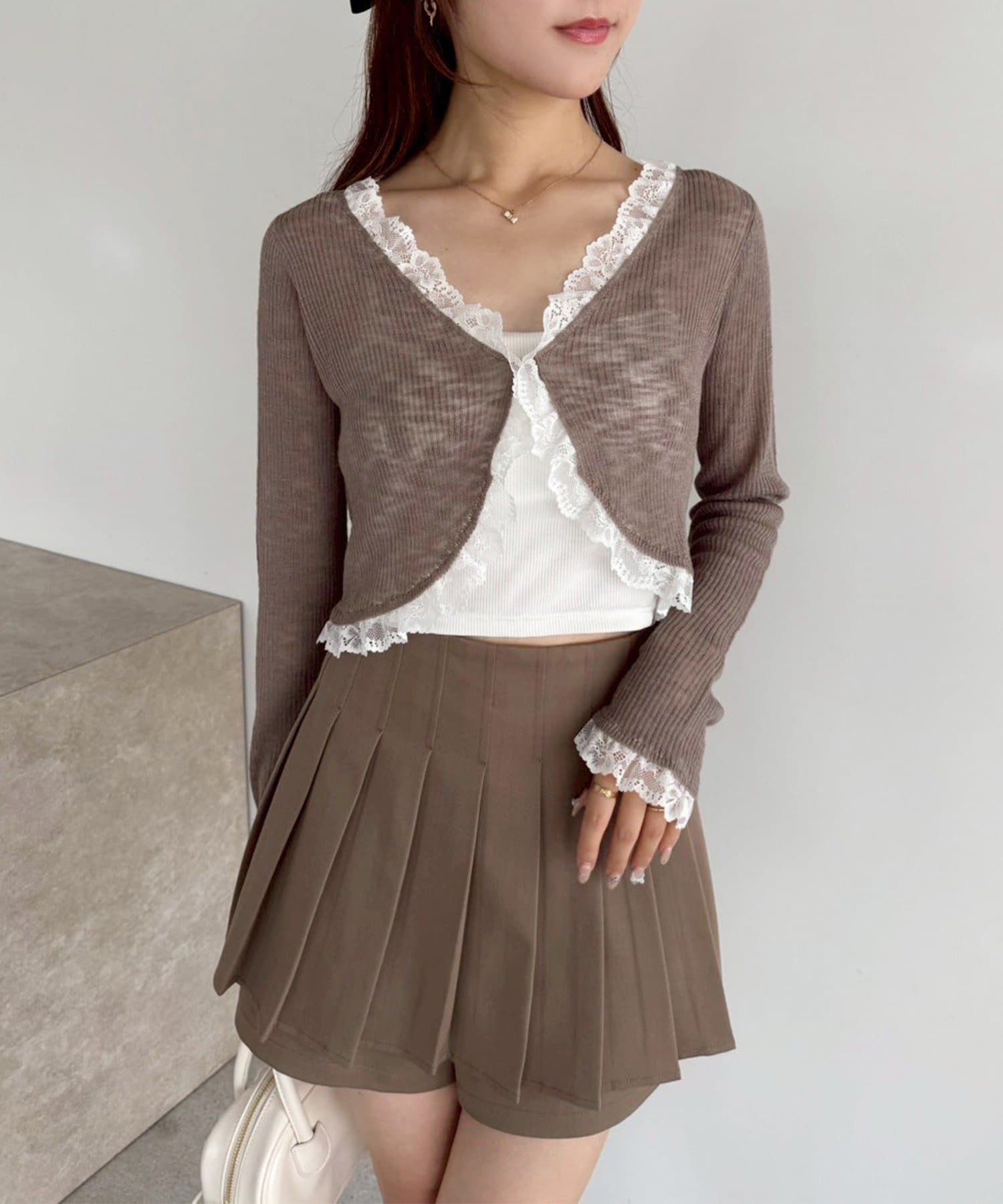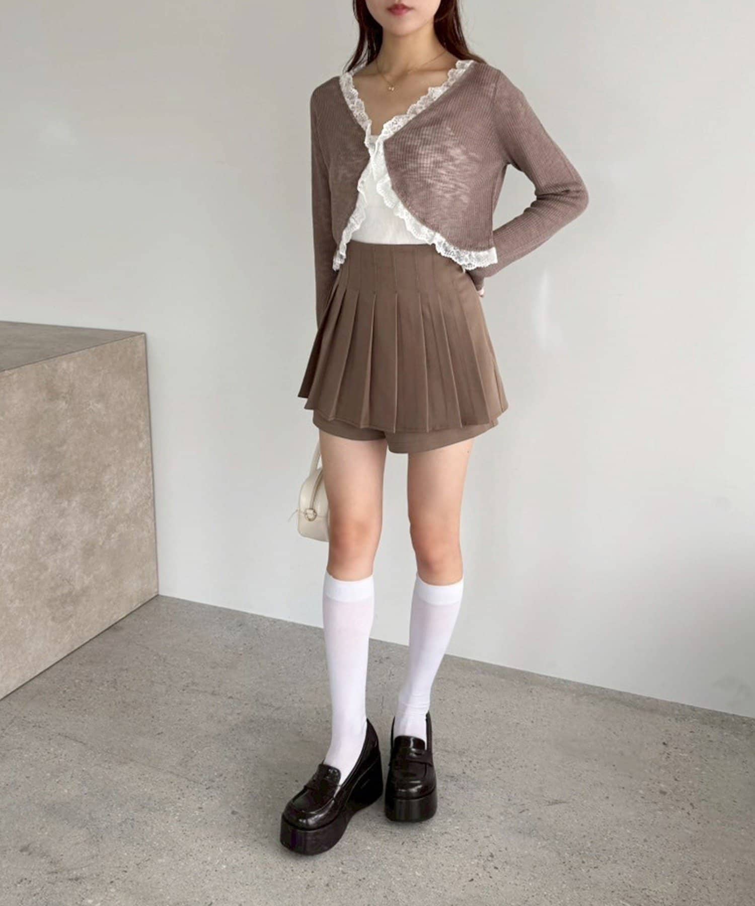細かめのプリーツは、動くたびに揺れ動き大人っぽさもプラスします。