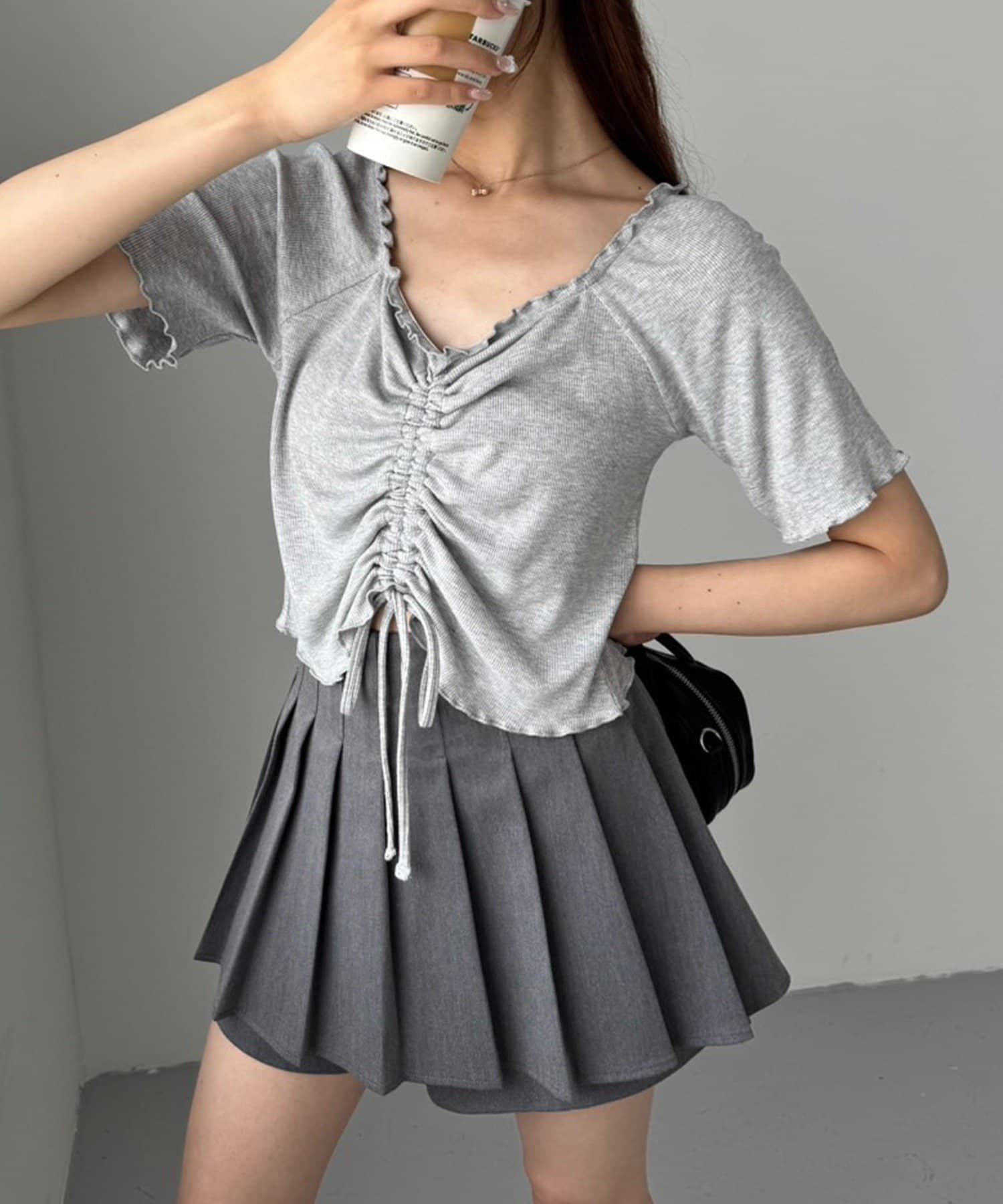 美脚効果の高いプリーツミニスカート