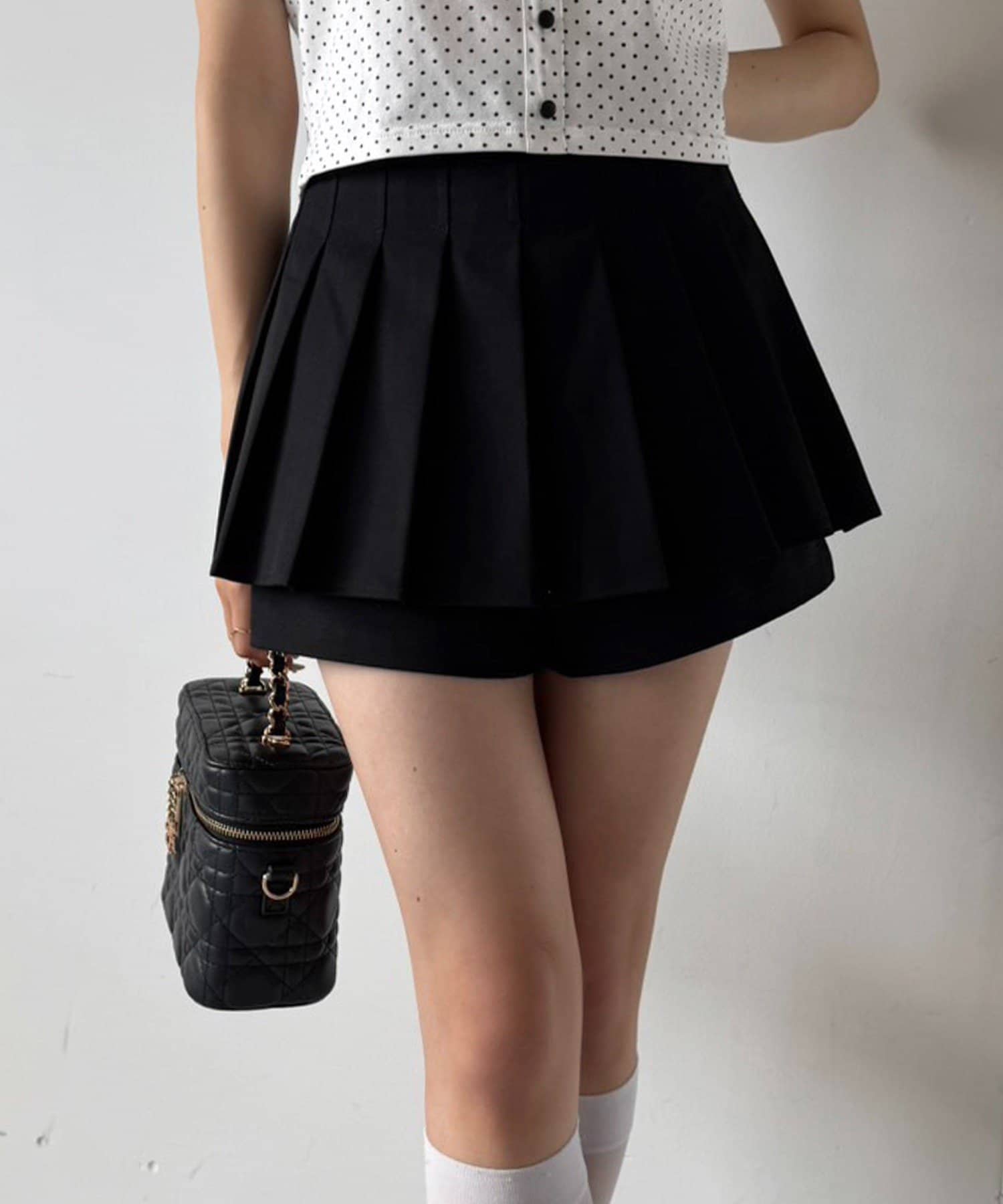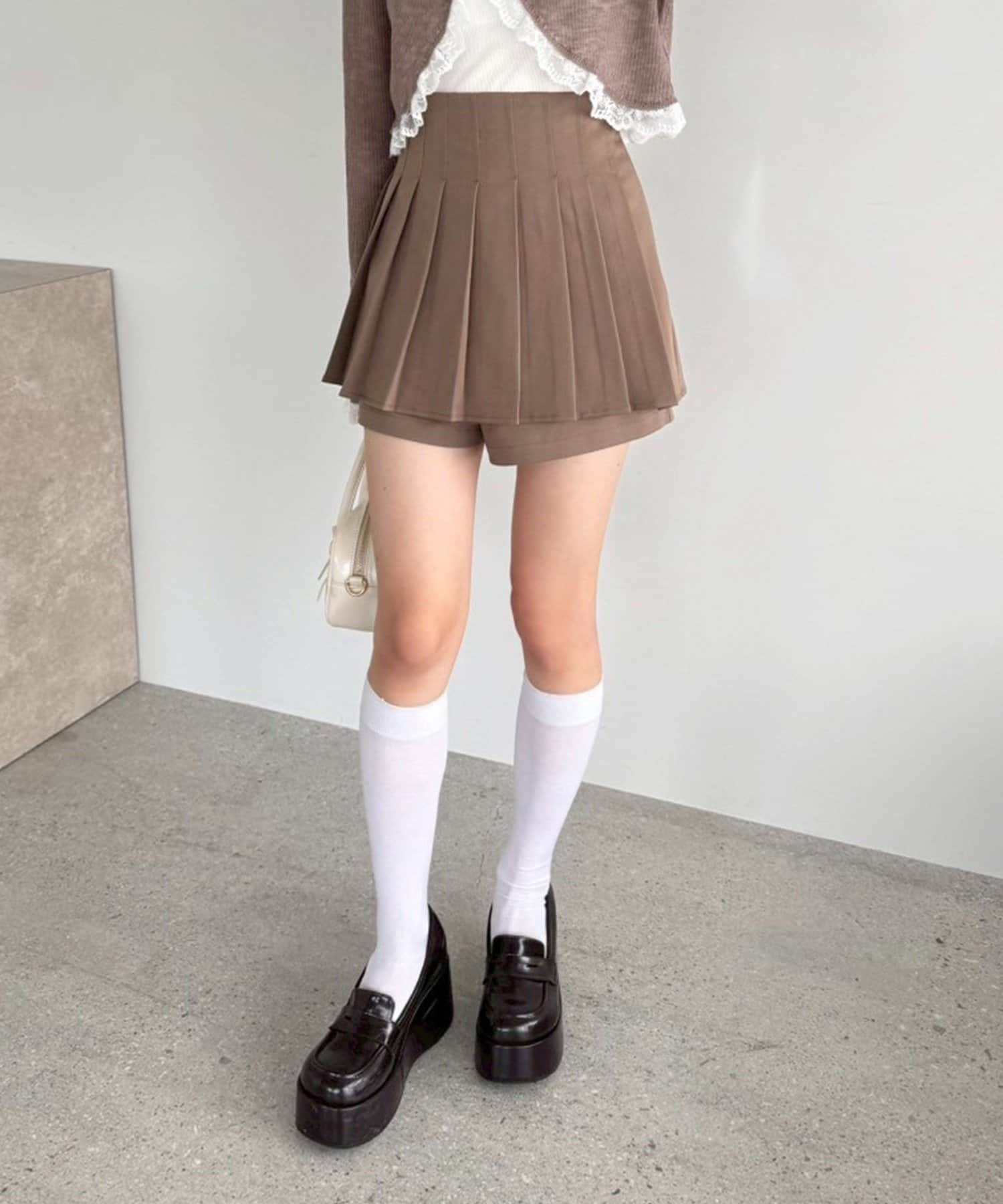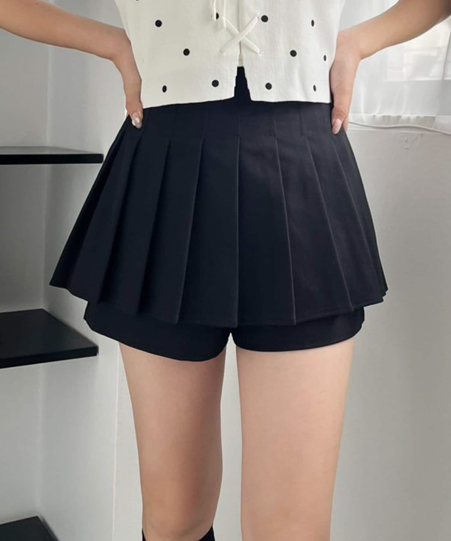 スカパンツになっているので、ミニ丈でも気にせずに着用していただけます。
