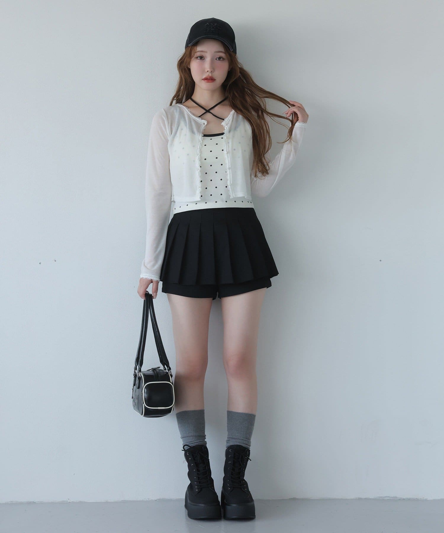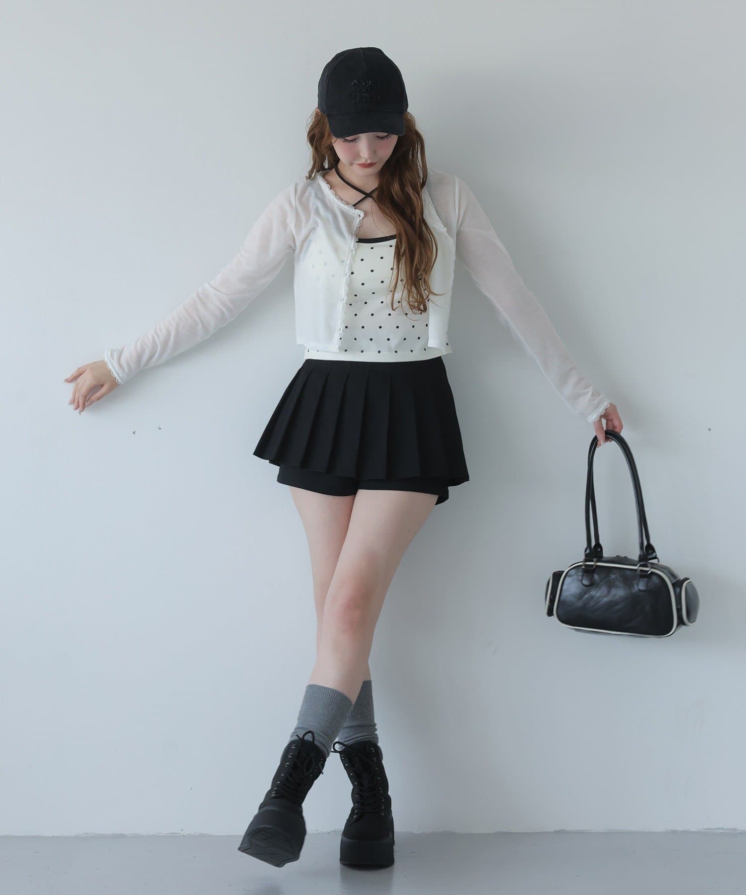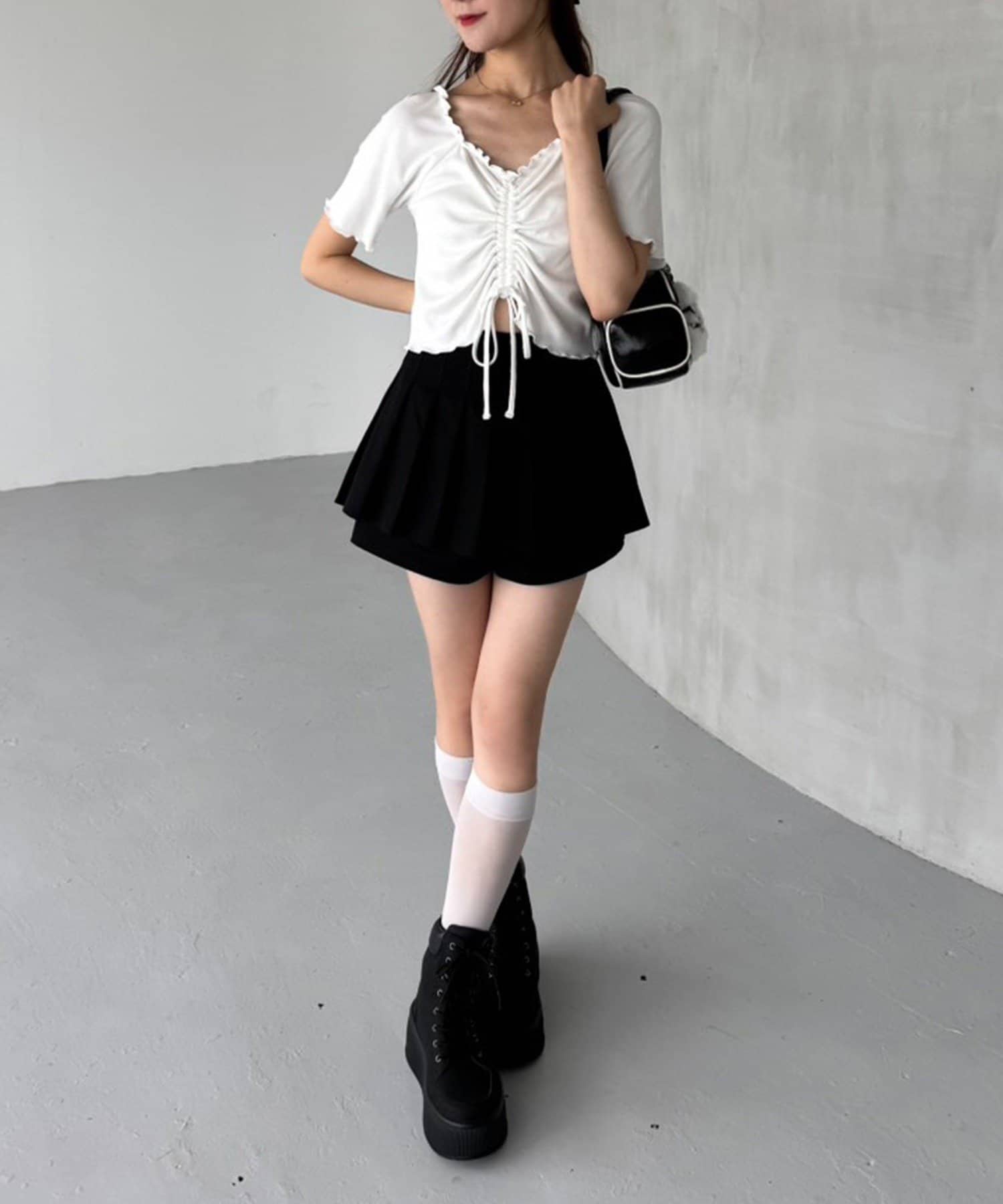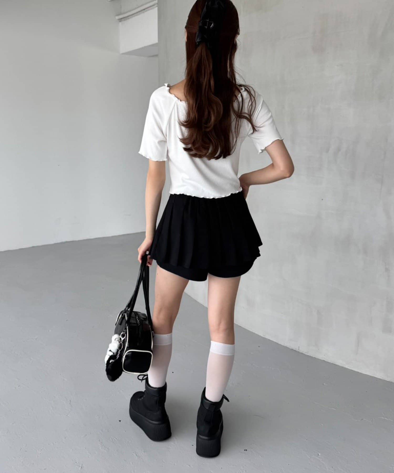 スカパンツになっているので、ミニ丈でも気にせずに着用していただけます。