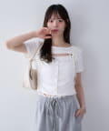 コンパクトなトップスを合わせてメリハリのあるシルエットに◎