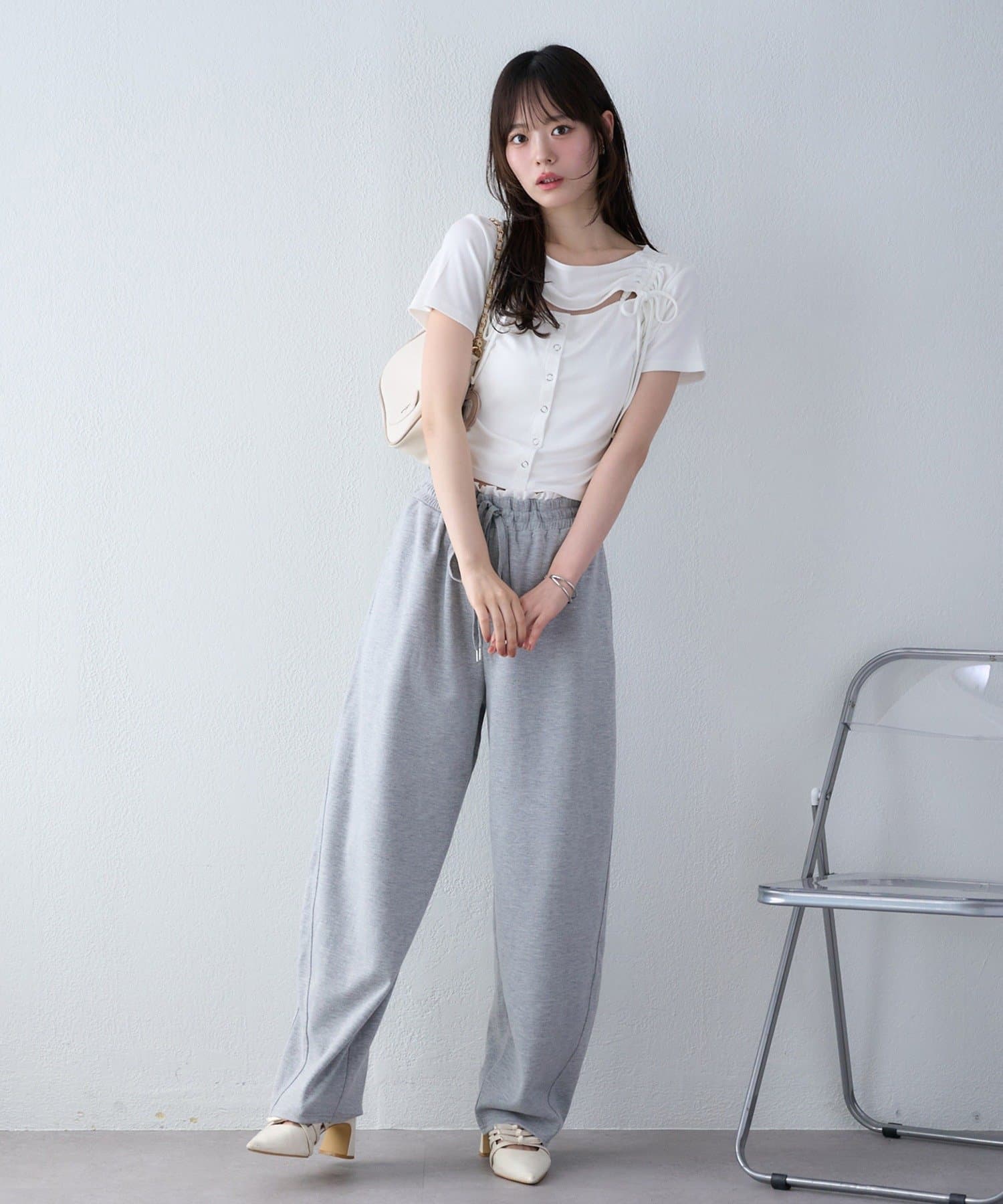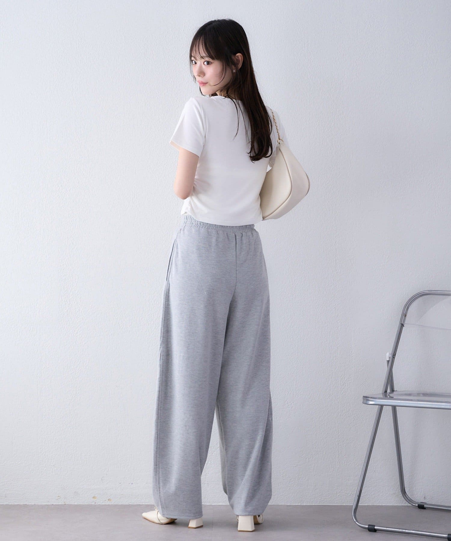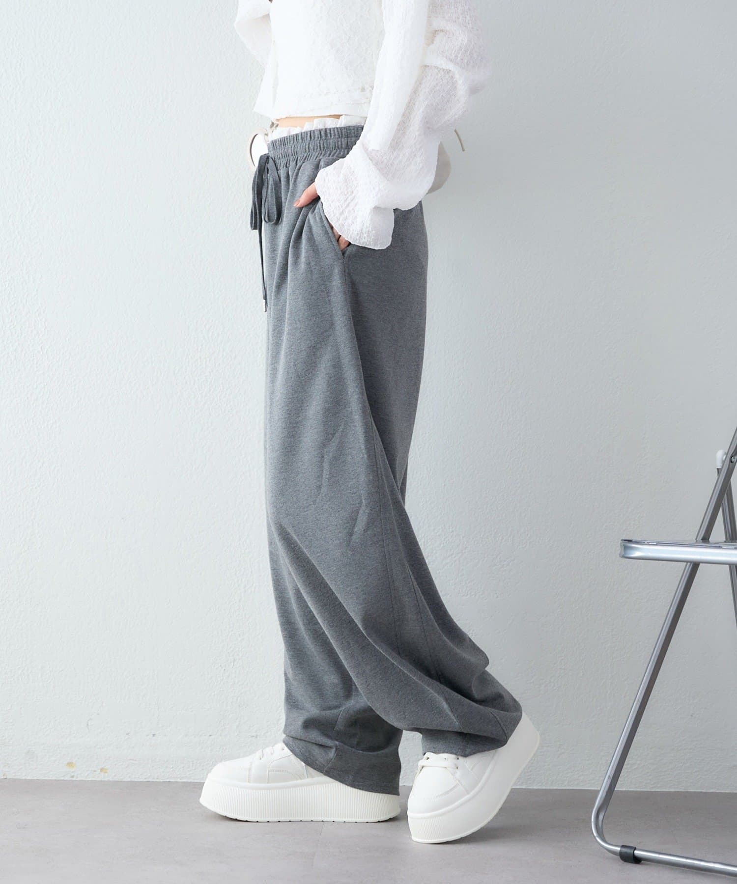 スウェット素材なので、ラクな穿き心地ながらもこなれた印象に仕上がります。