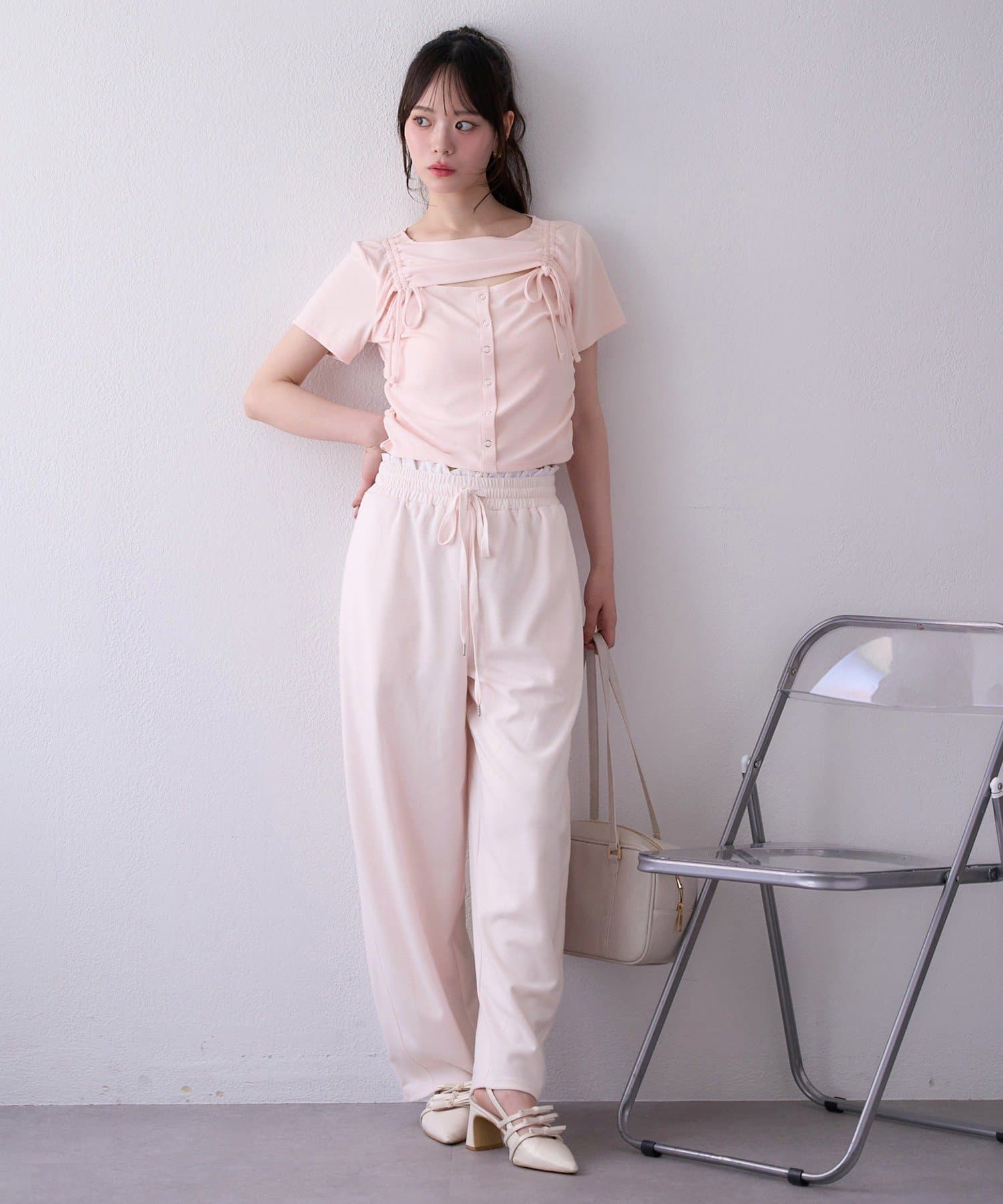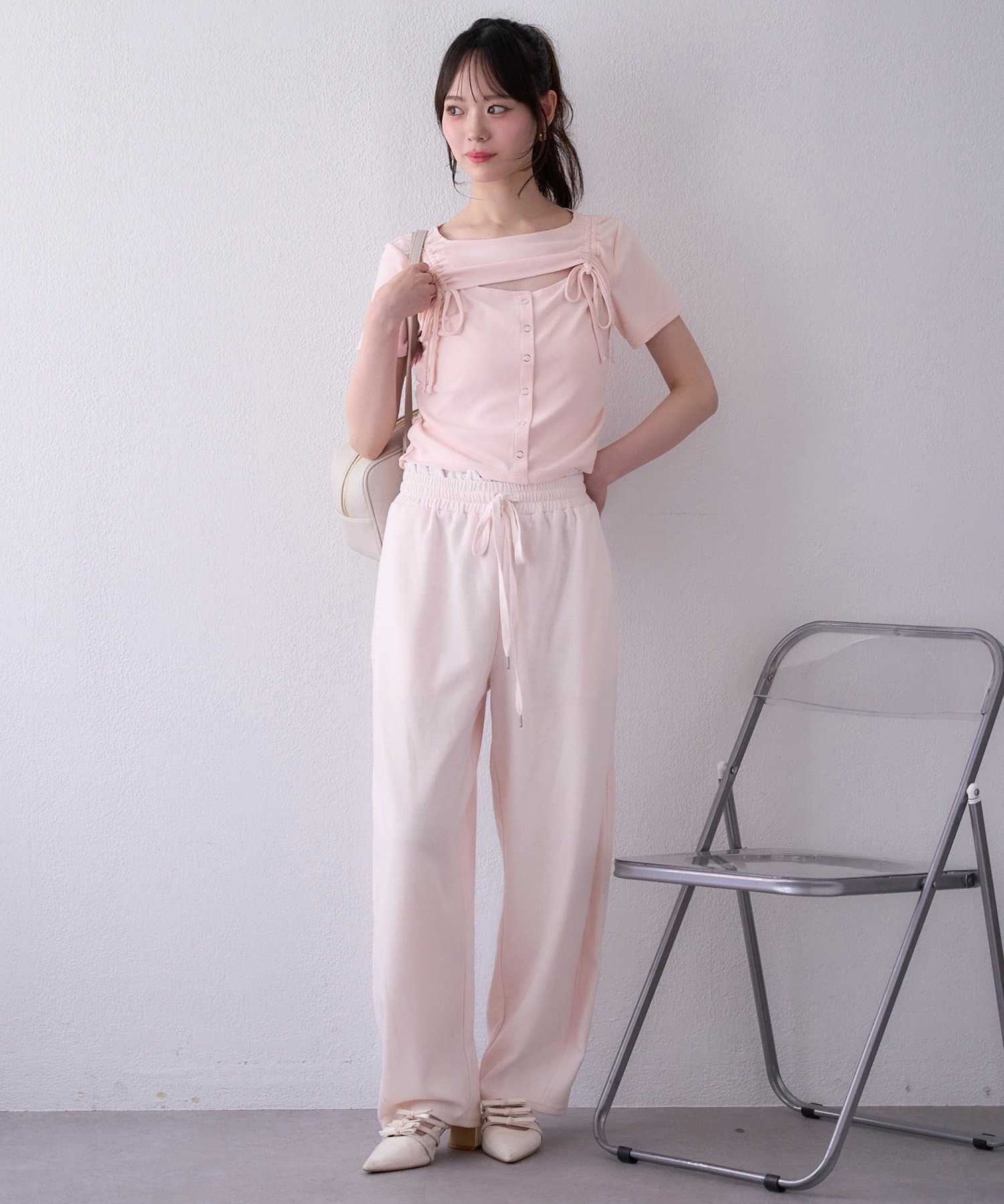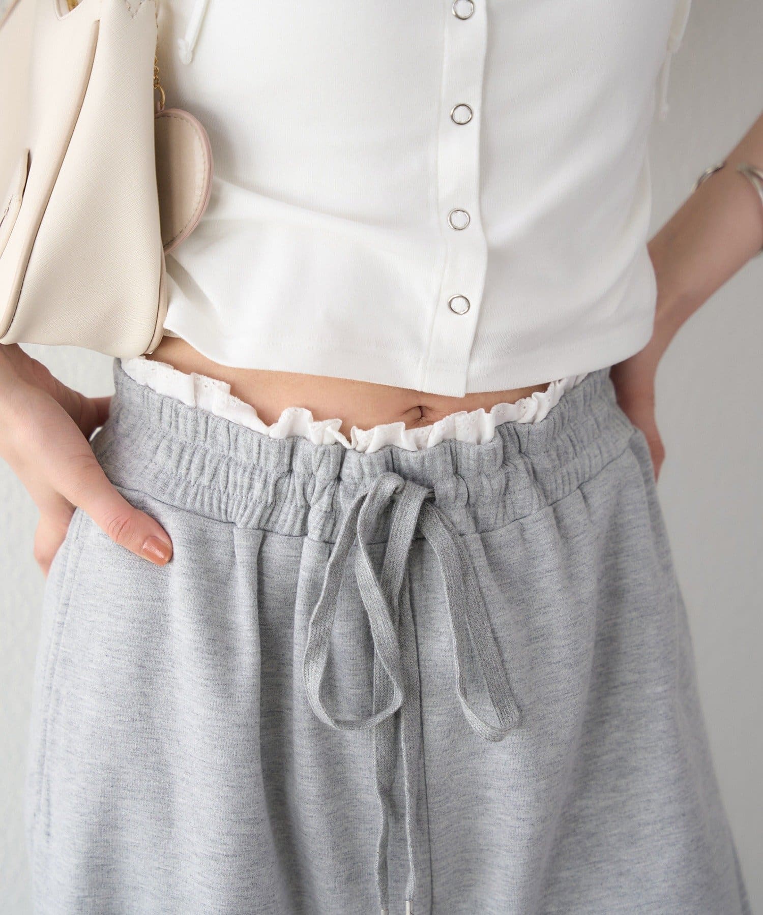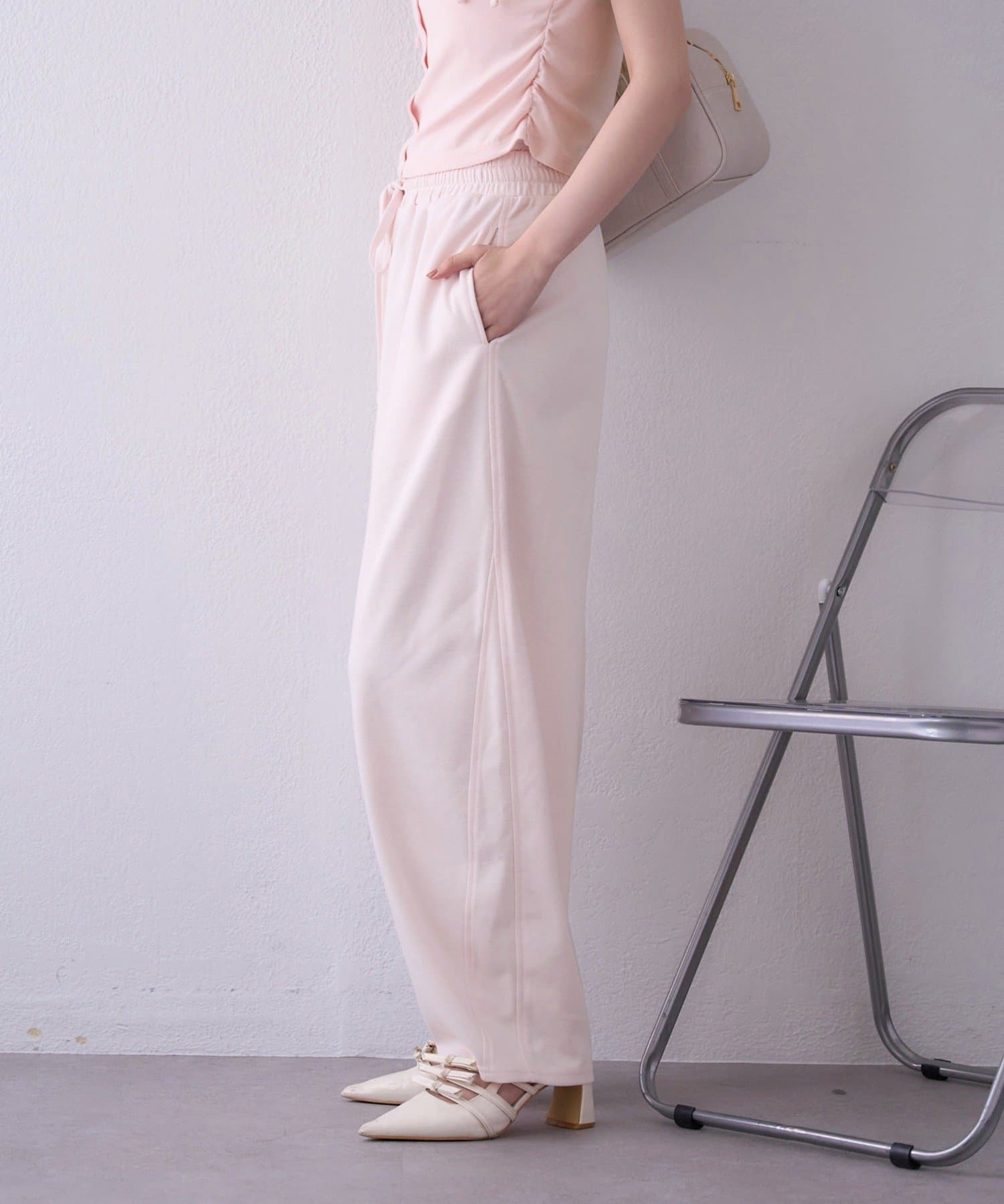 スウェット素材なので、ラクな穿き心地ながらもこなれた印象に仕上がります。