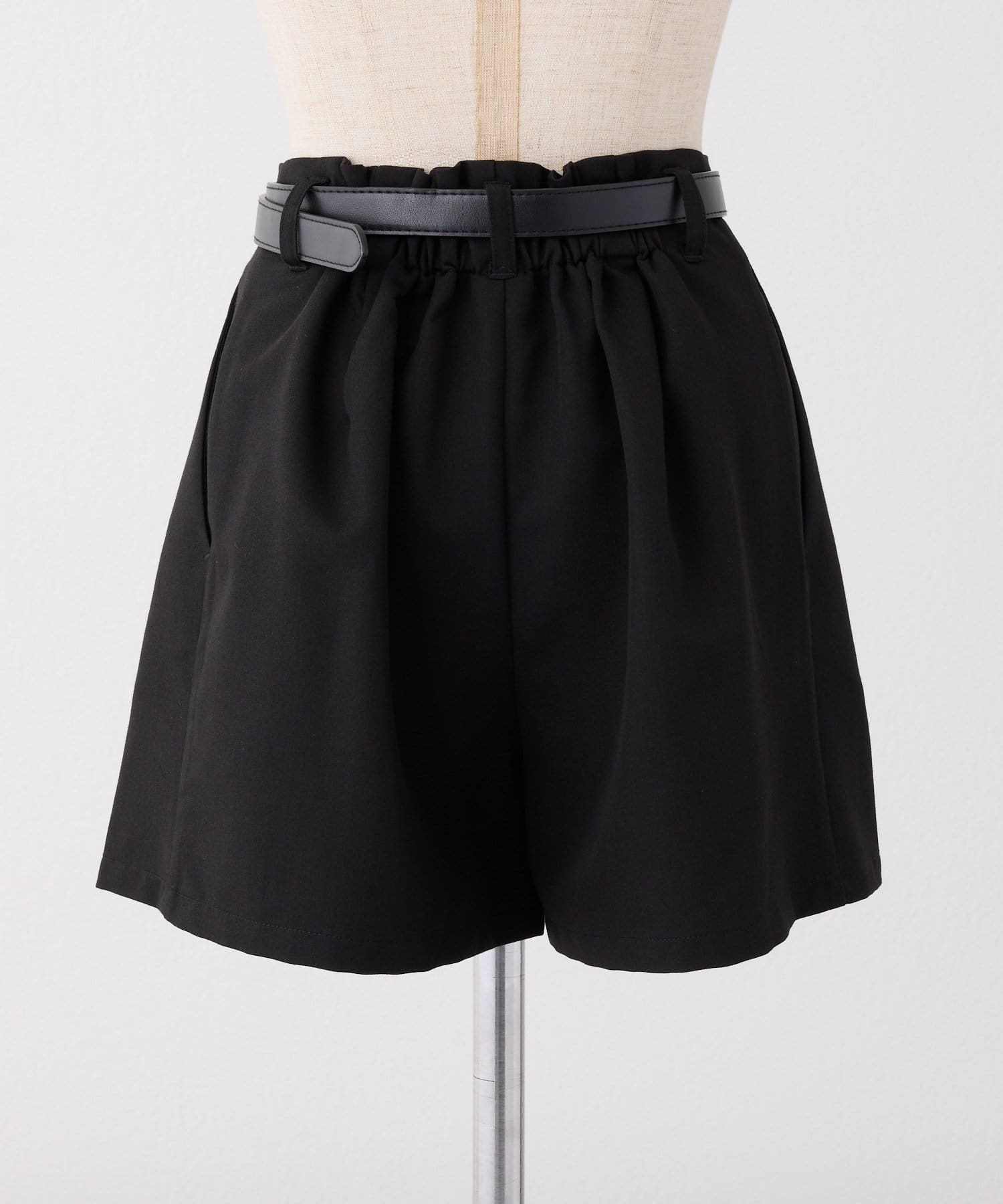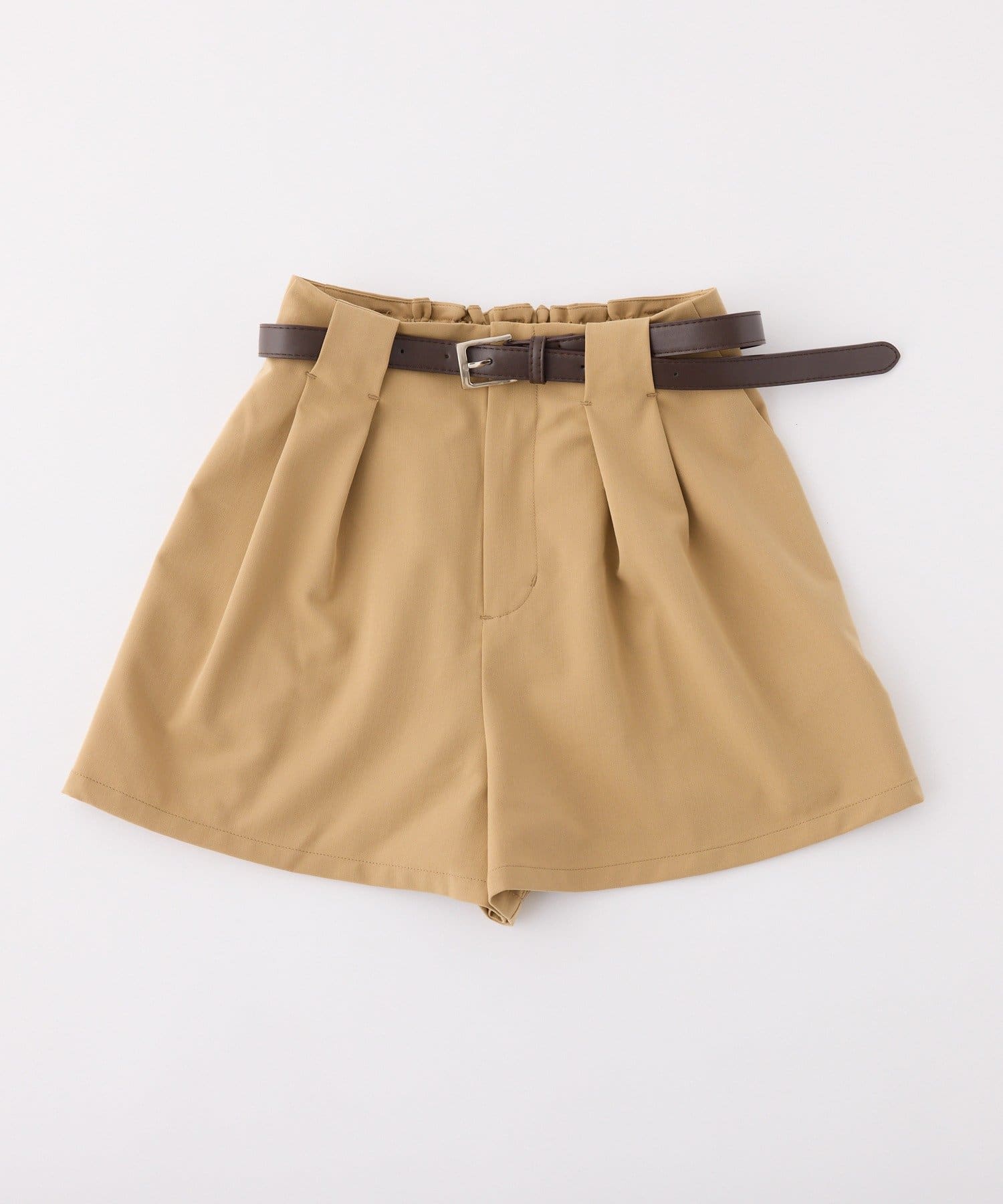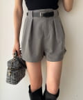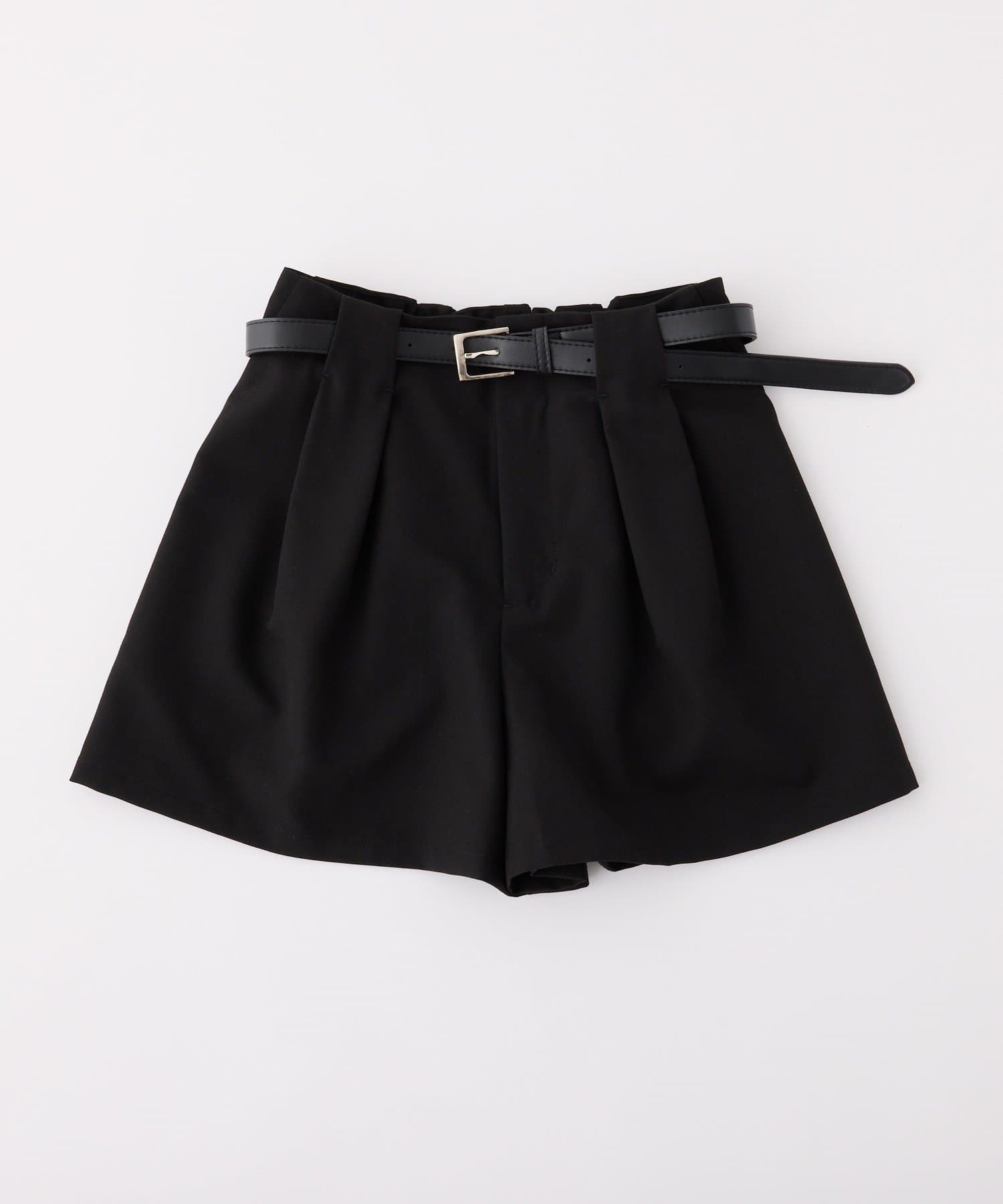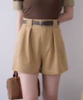 ウエストのタックデザインがポイントになった、バルト付きのショートパンツ。