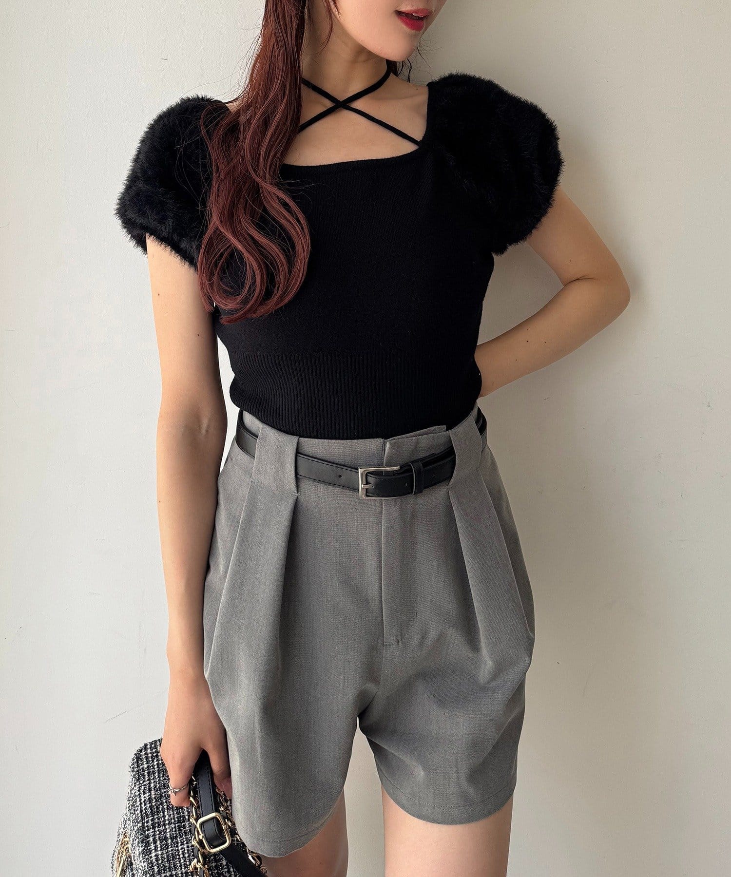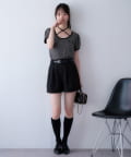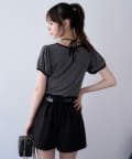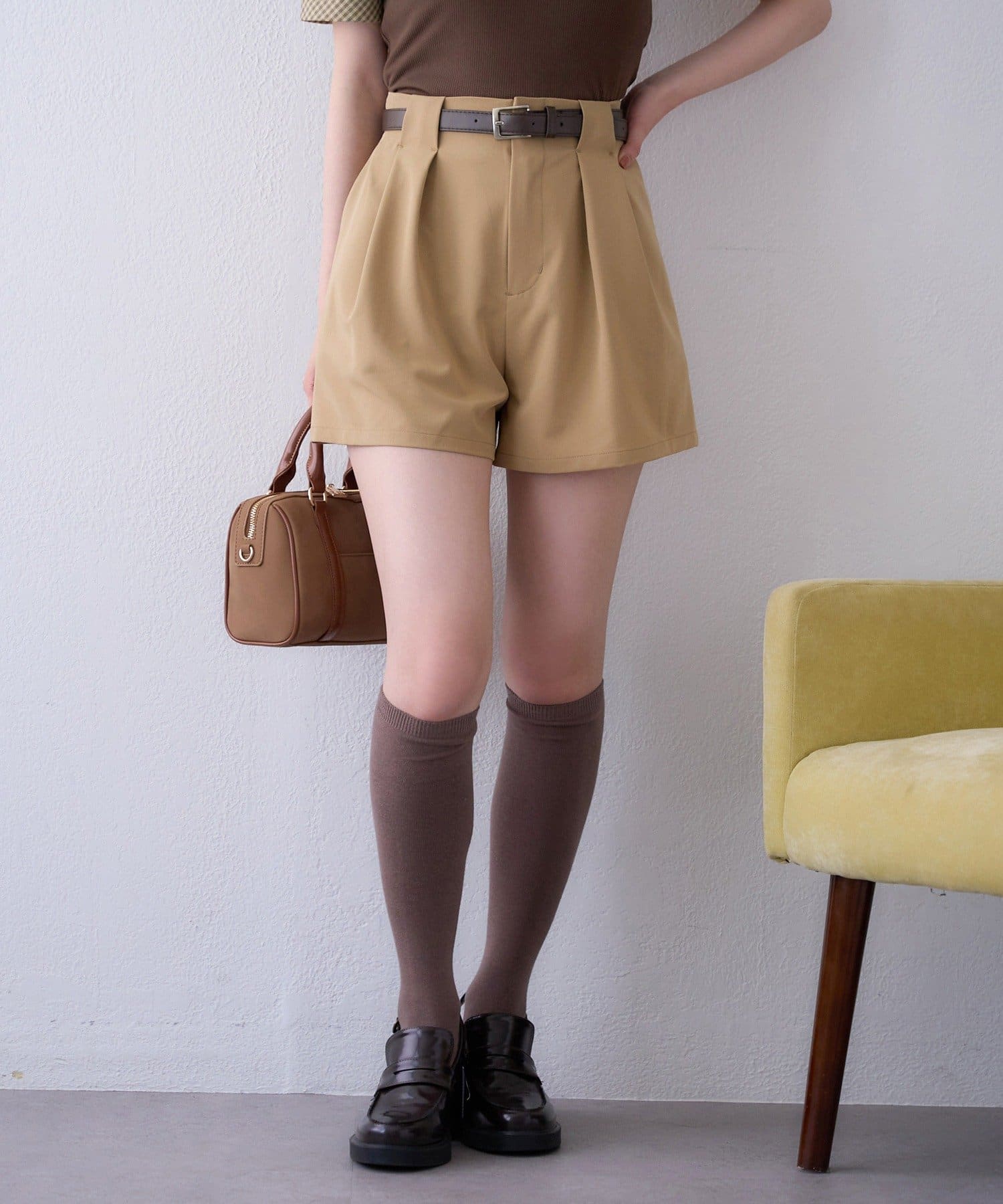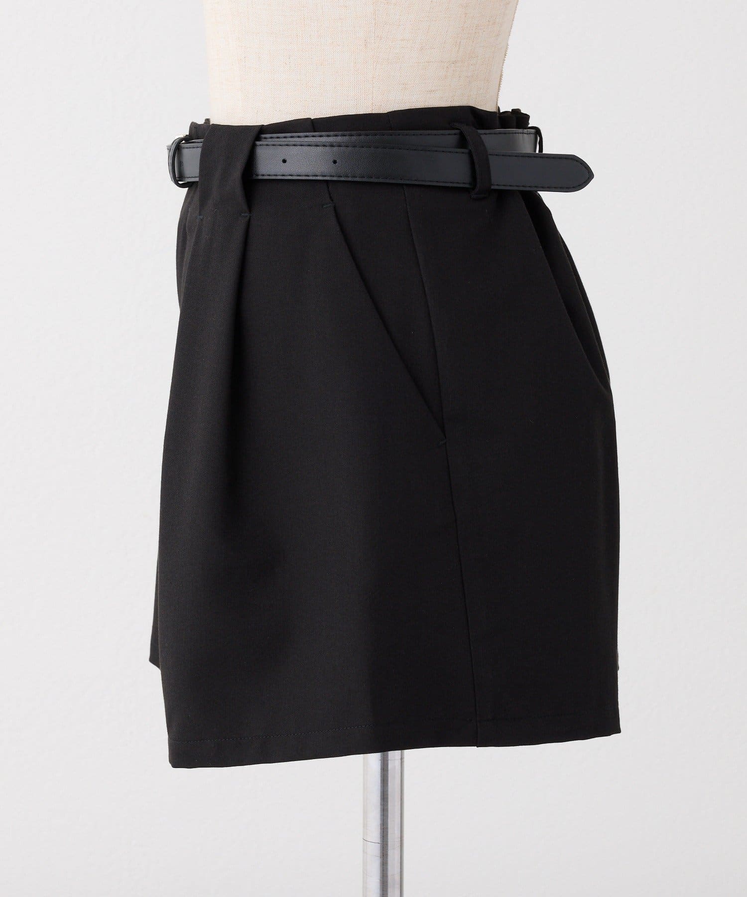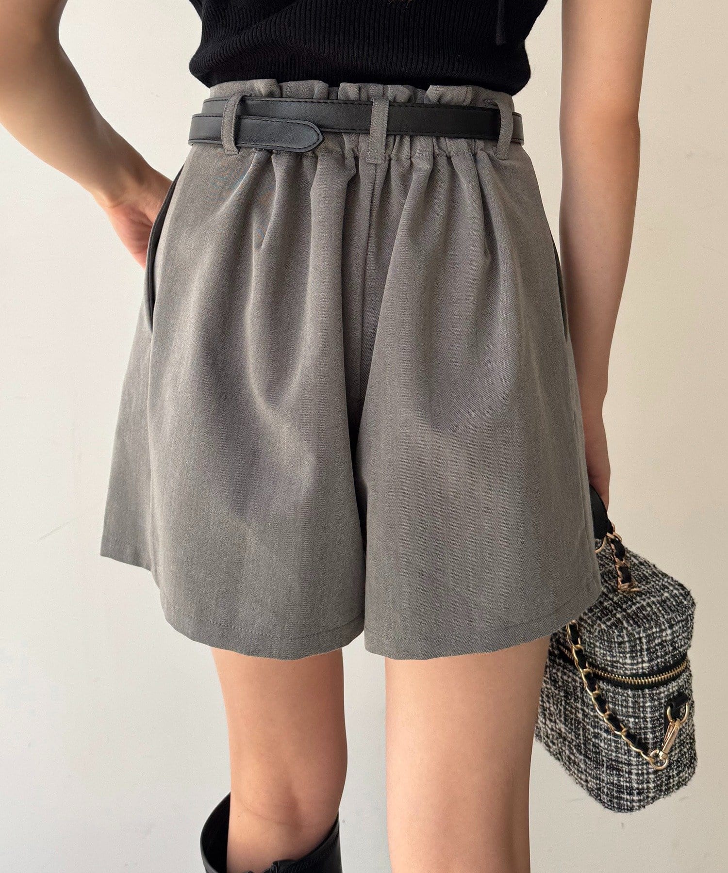 ウエストのタックデザインがポイントになった、バルト付きのショートパンツ。