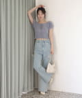 コンパクトなトップスを合わせて、バランスの取れたスタイルに。