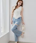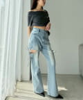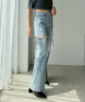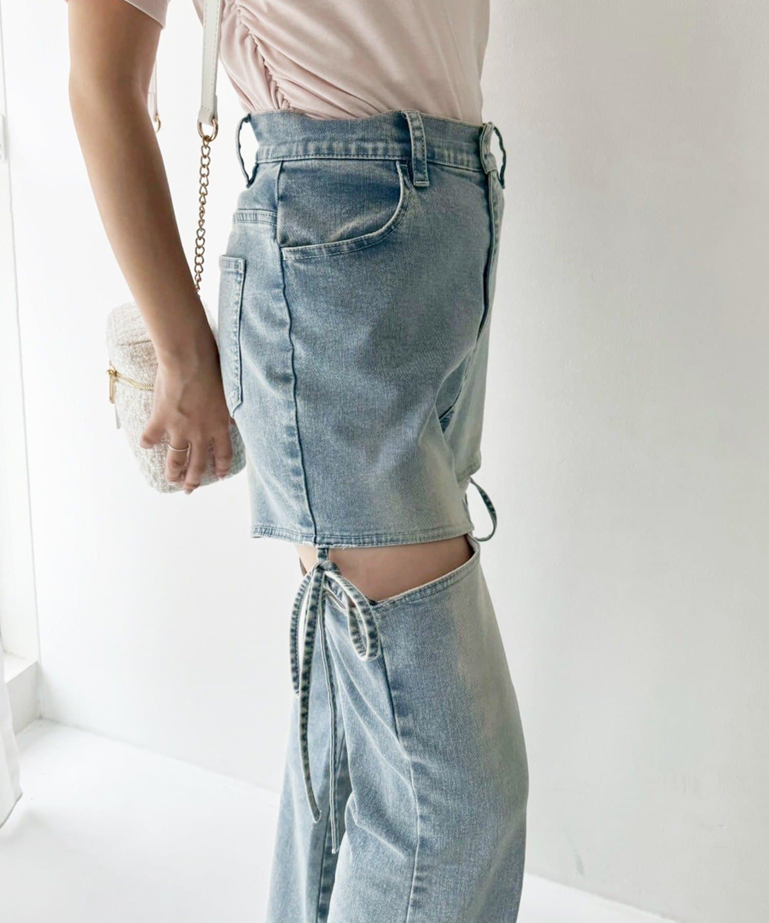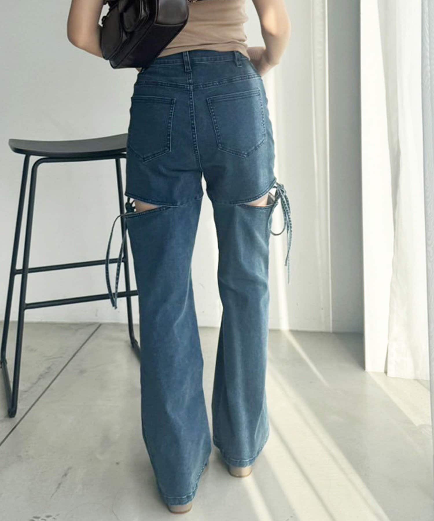 サイドあき美脚ストレッチデニム
