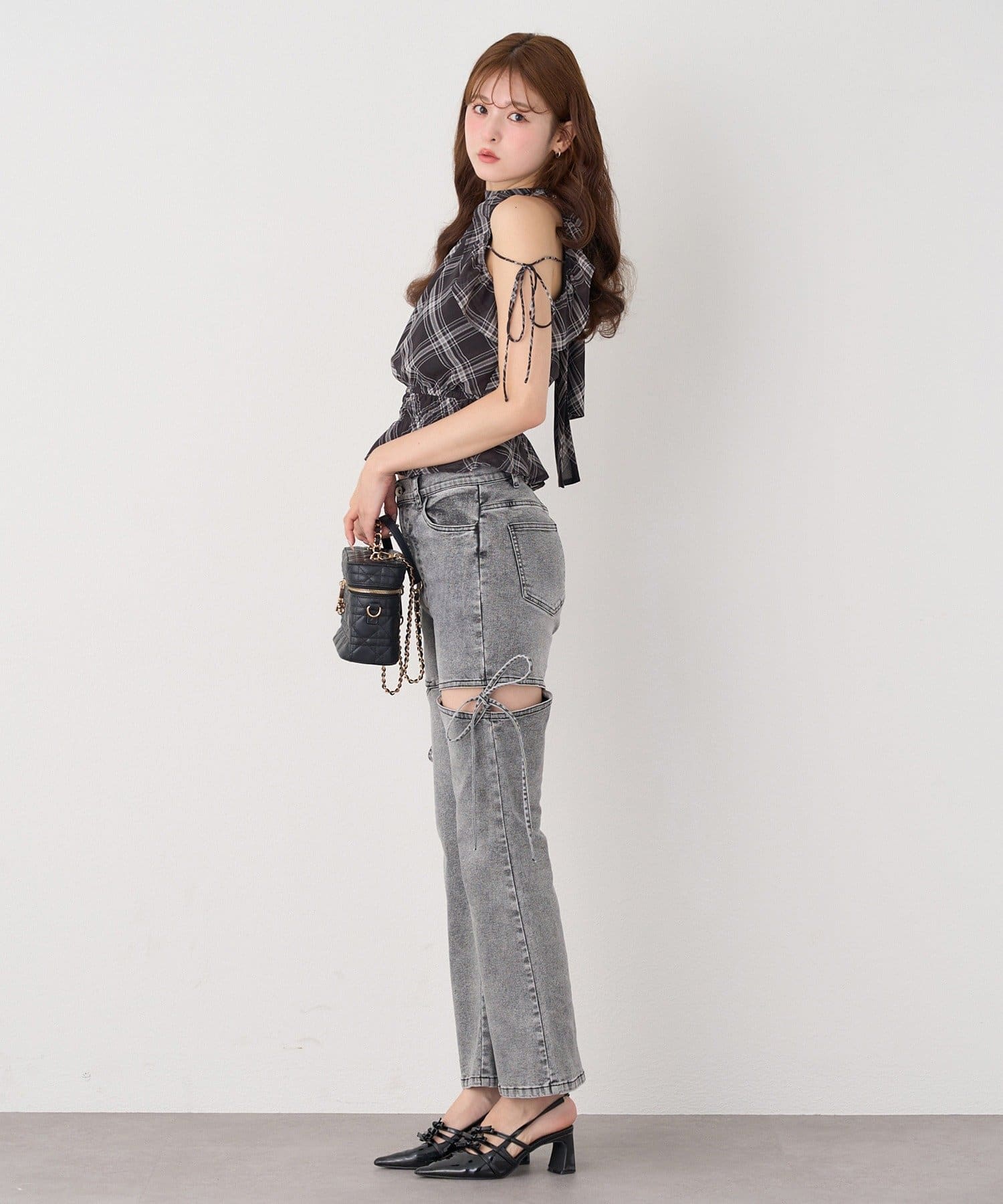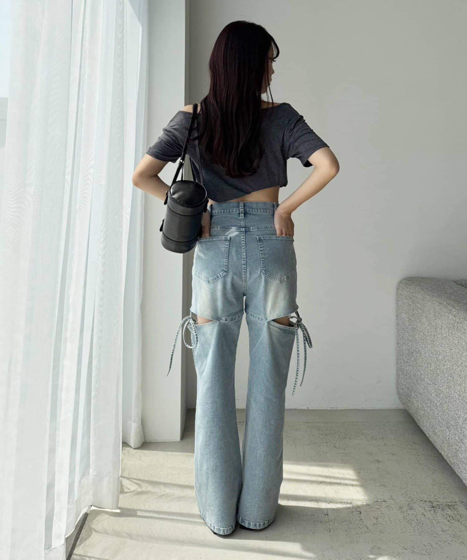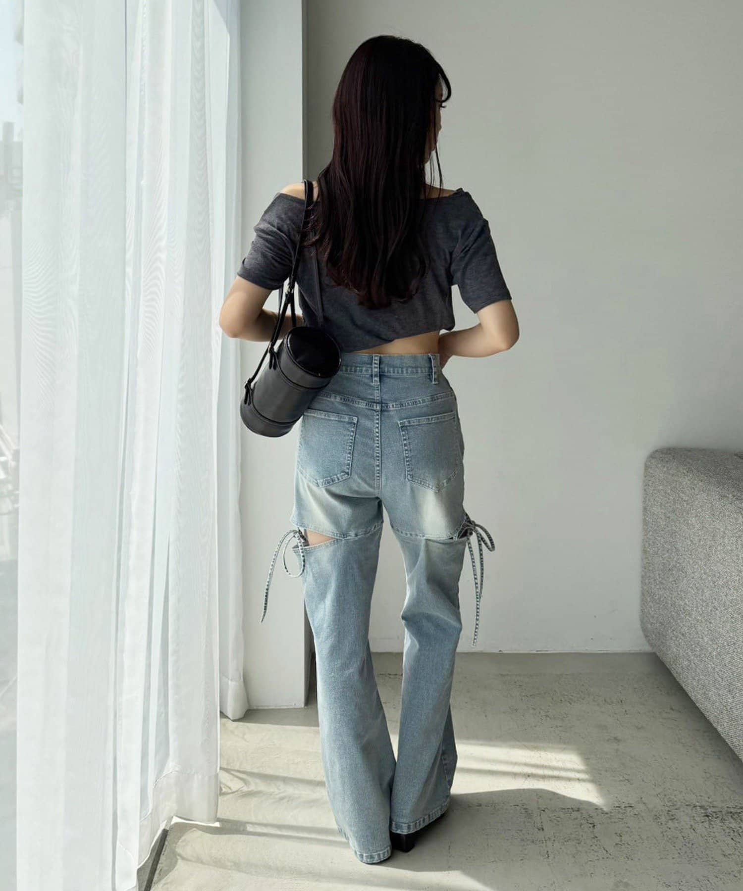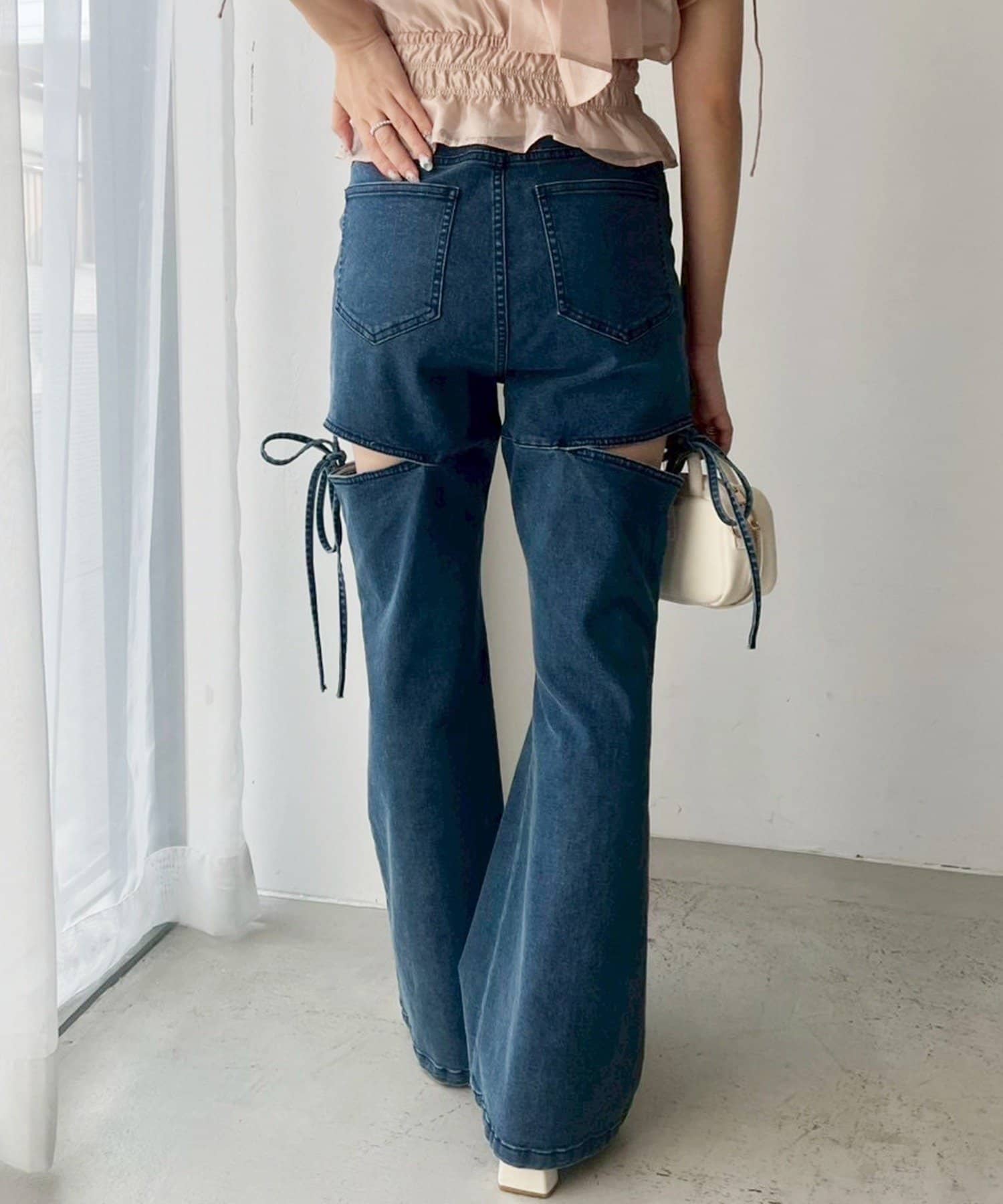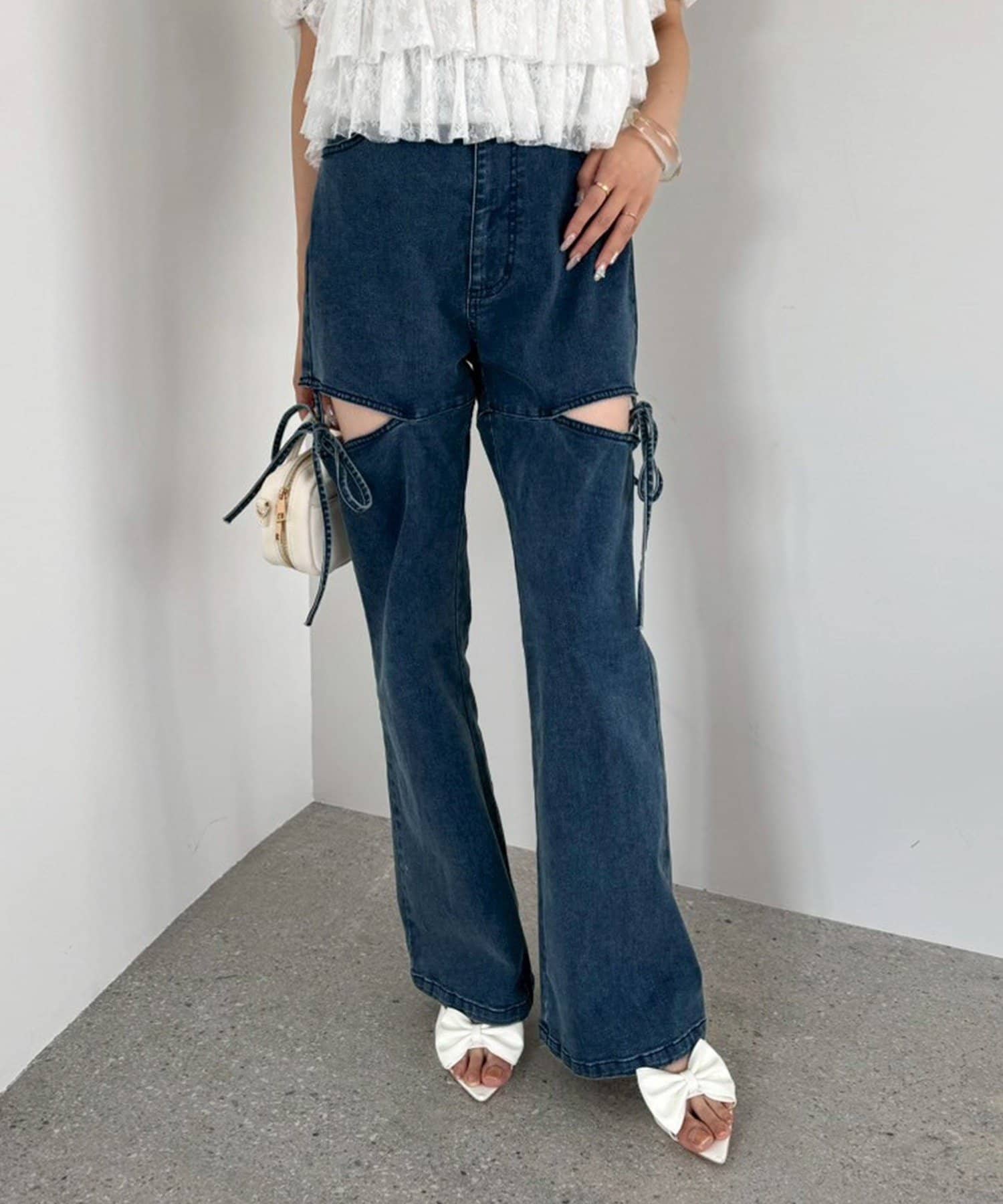 サイドオープンデザインで抜け感をプラスしつつ、リボンディテールでガーリーなアクセントをON。