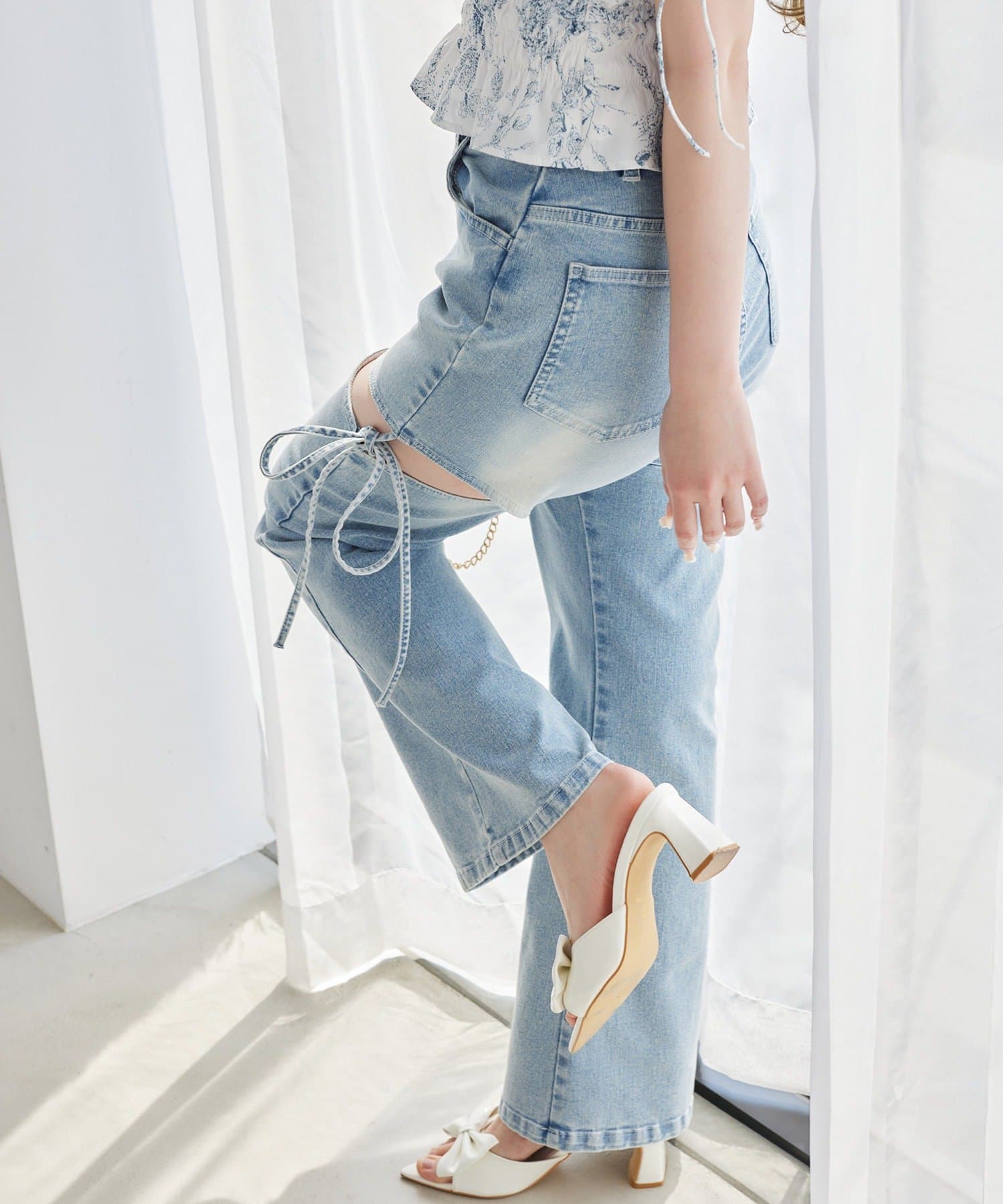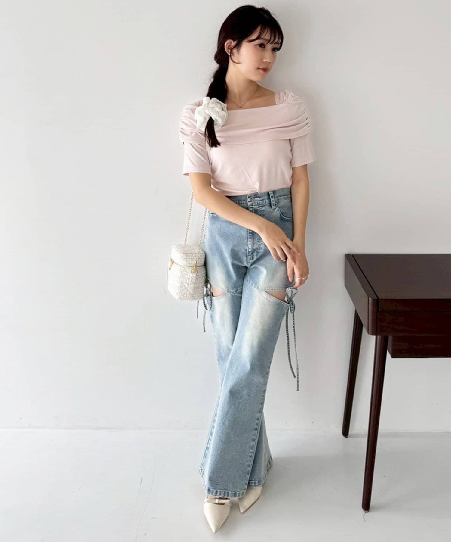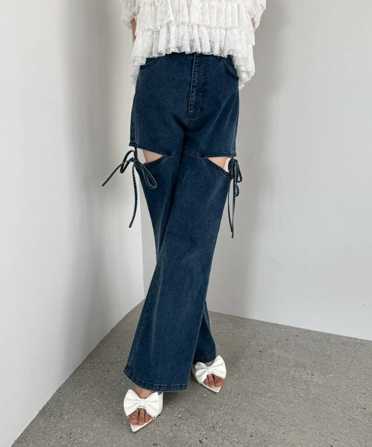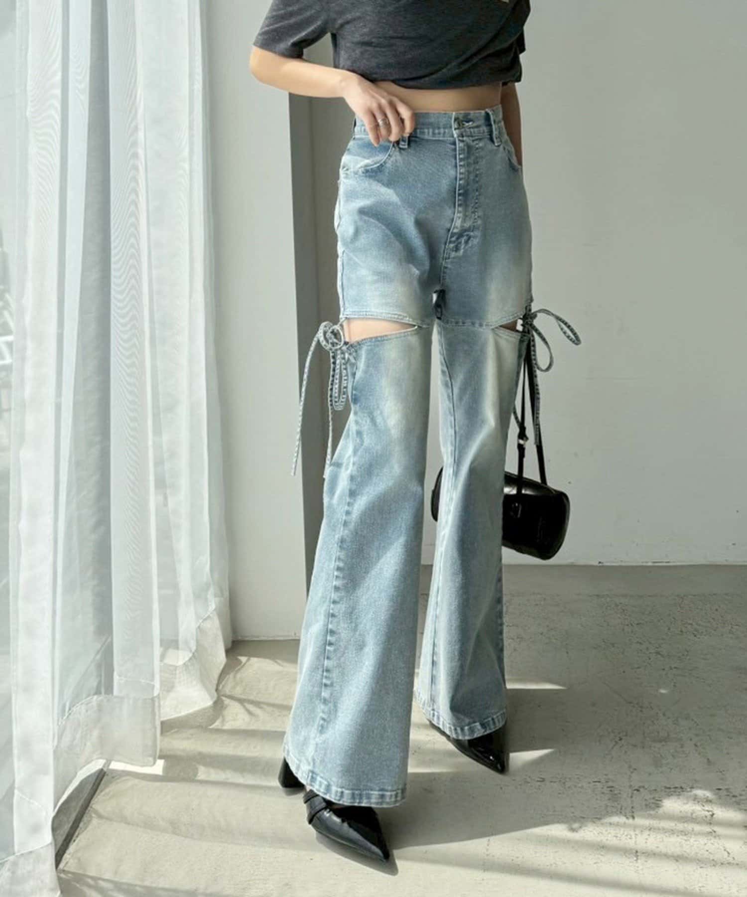 サイドオープンデザインで抜け感をプラスしつつ、リボンディテールでガーリーなアクセントをON。