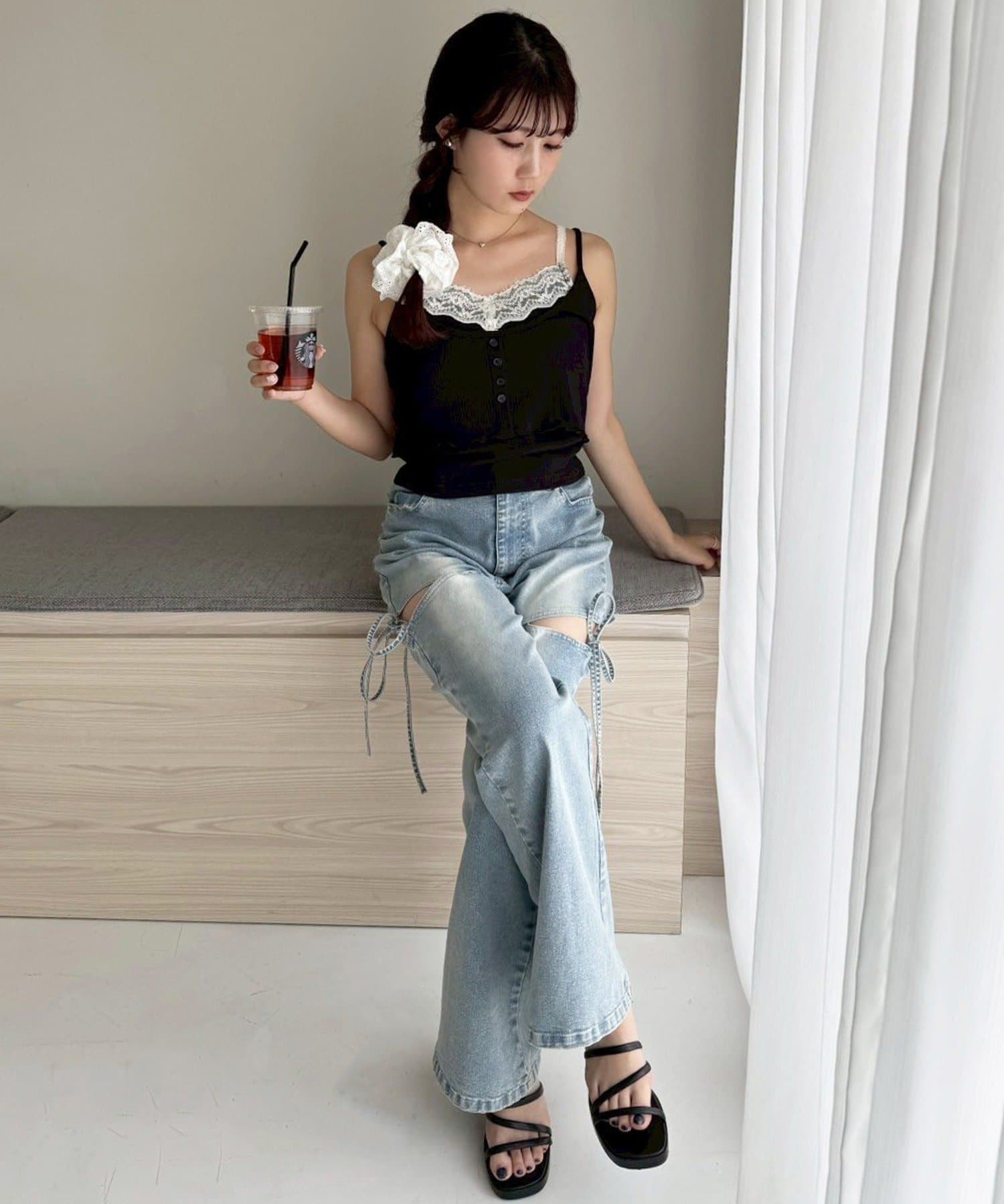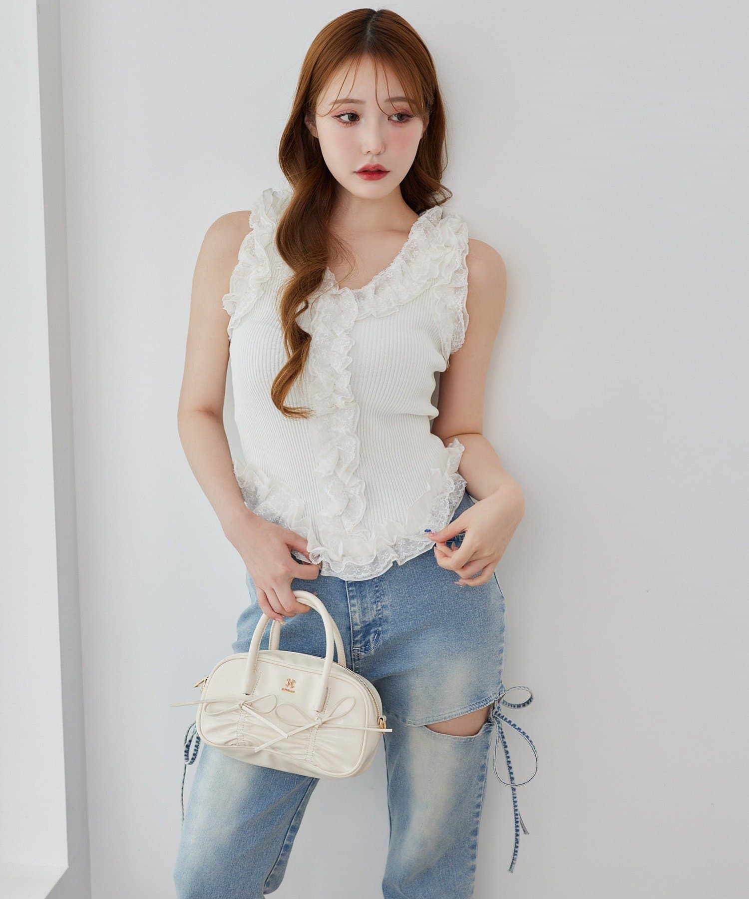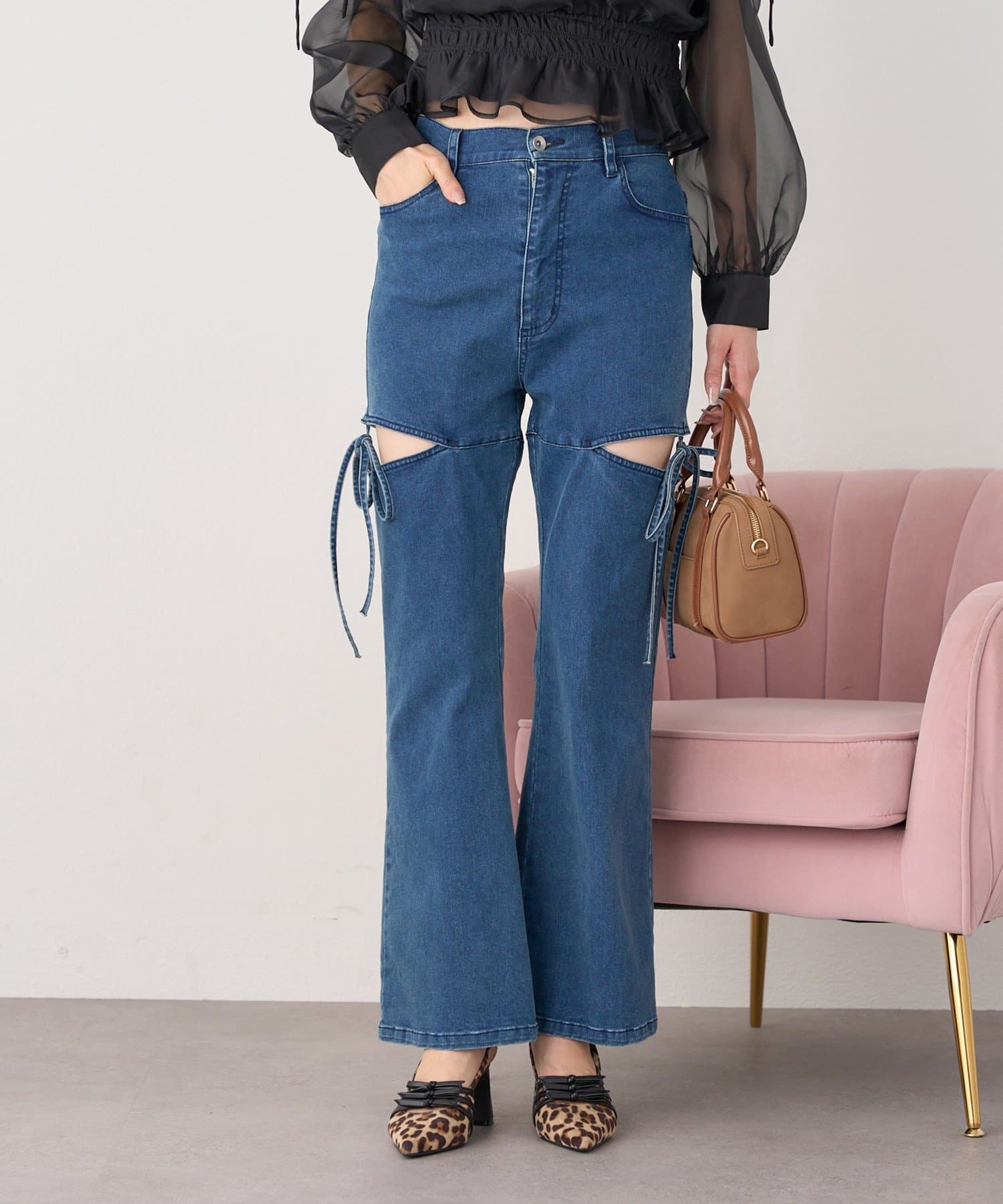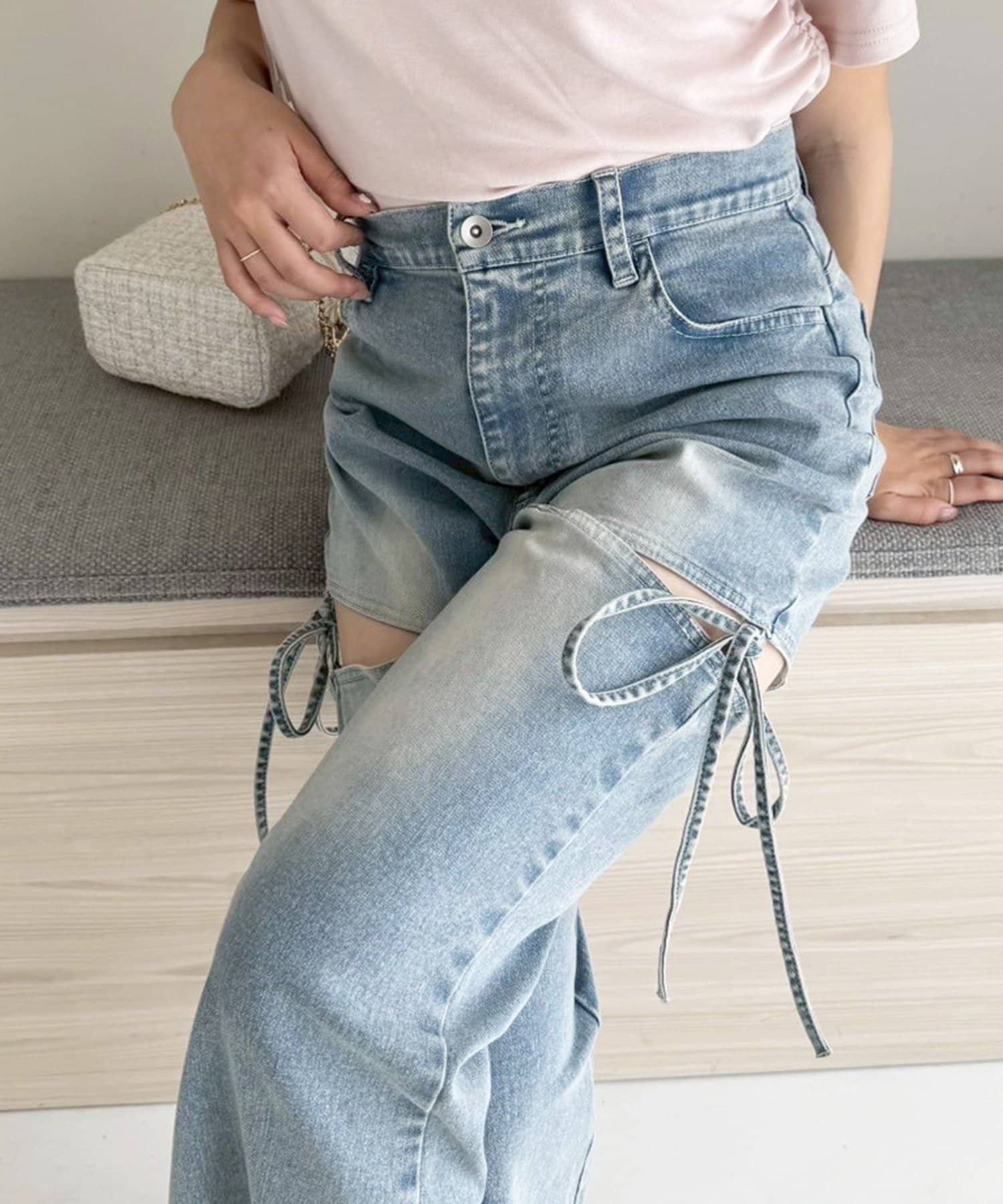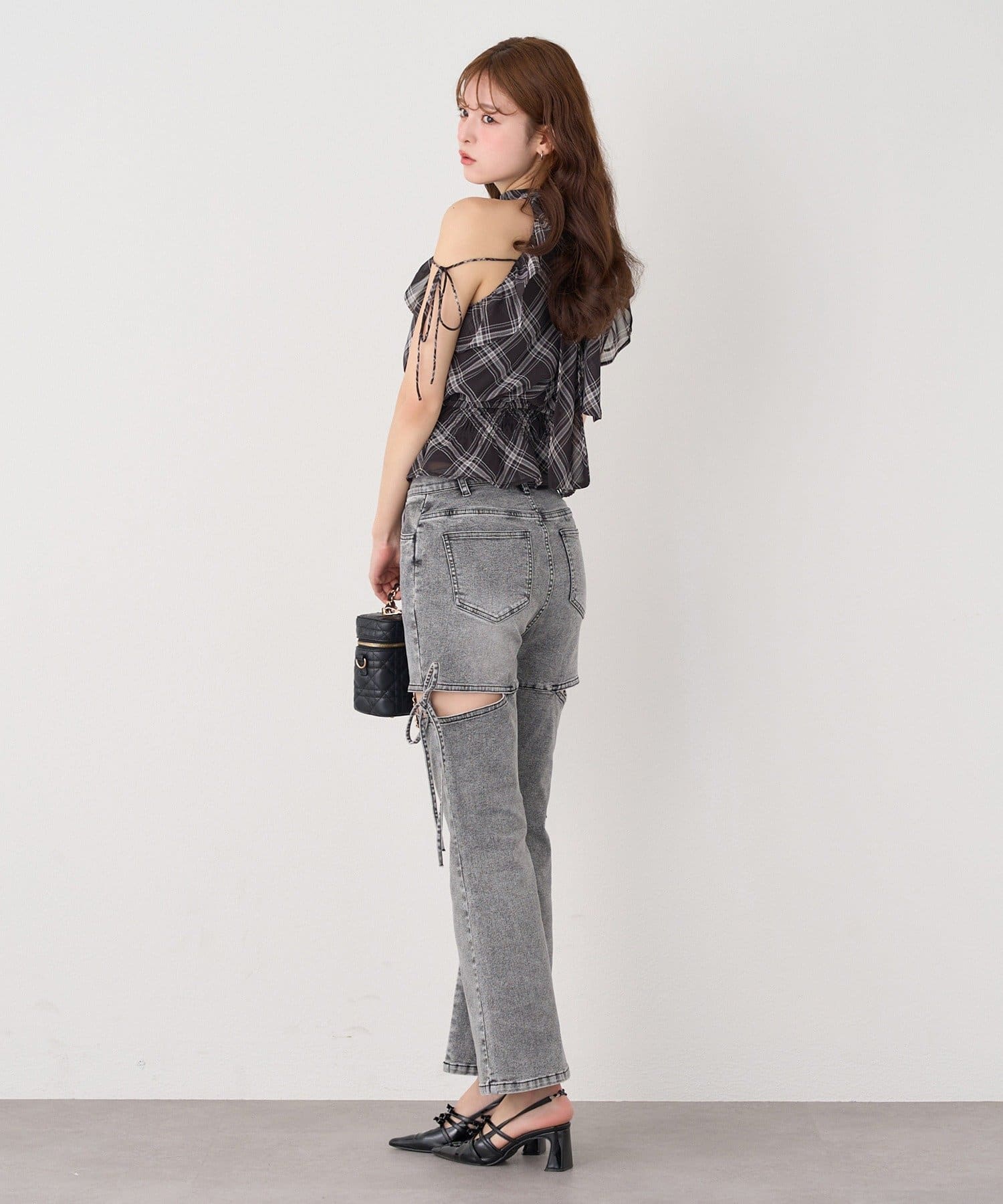 サイドオープンデザインで抜け感をプラスしつつ、リボンディテールでガーリーなアクセントをON。