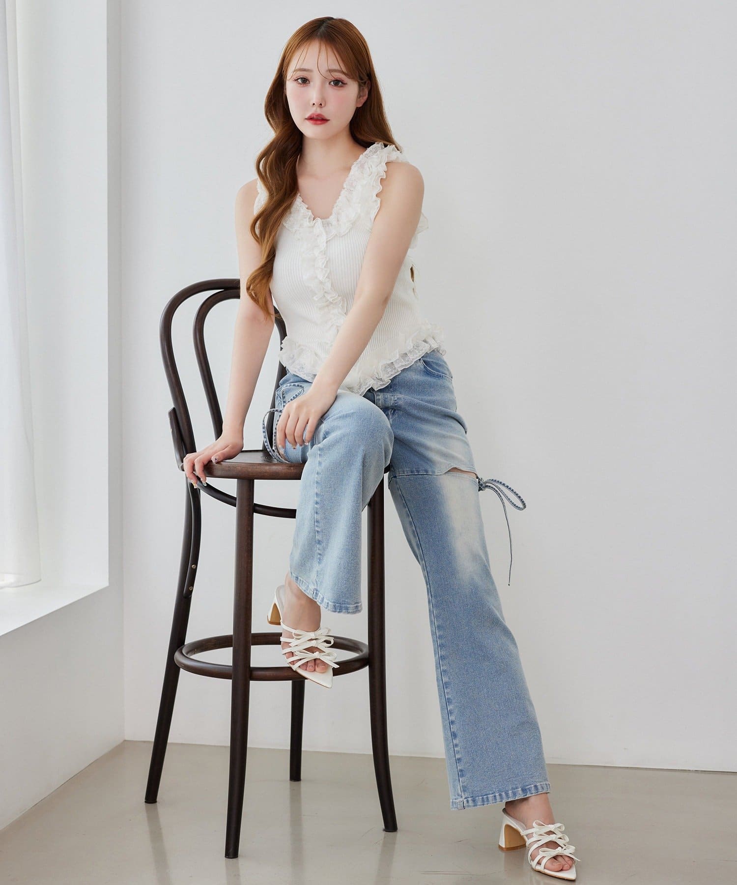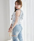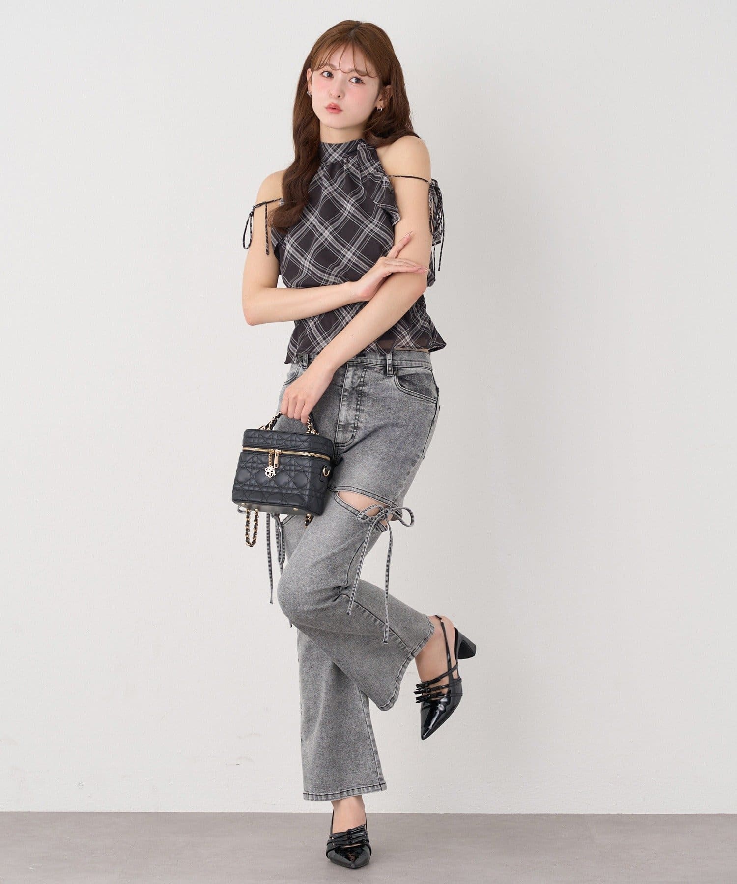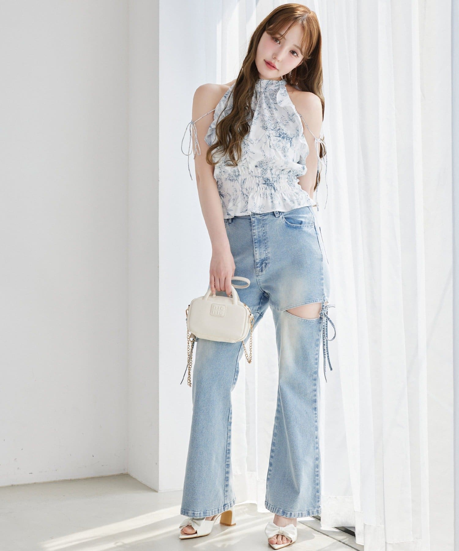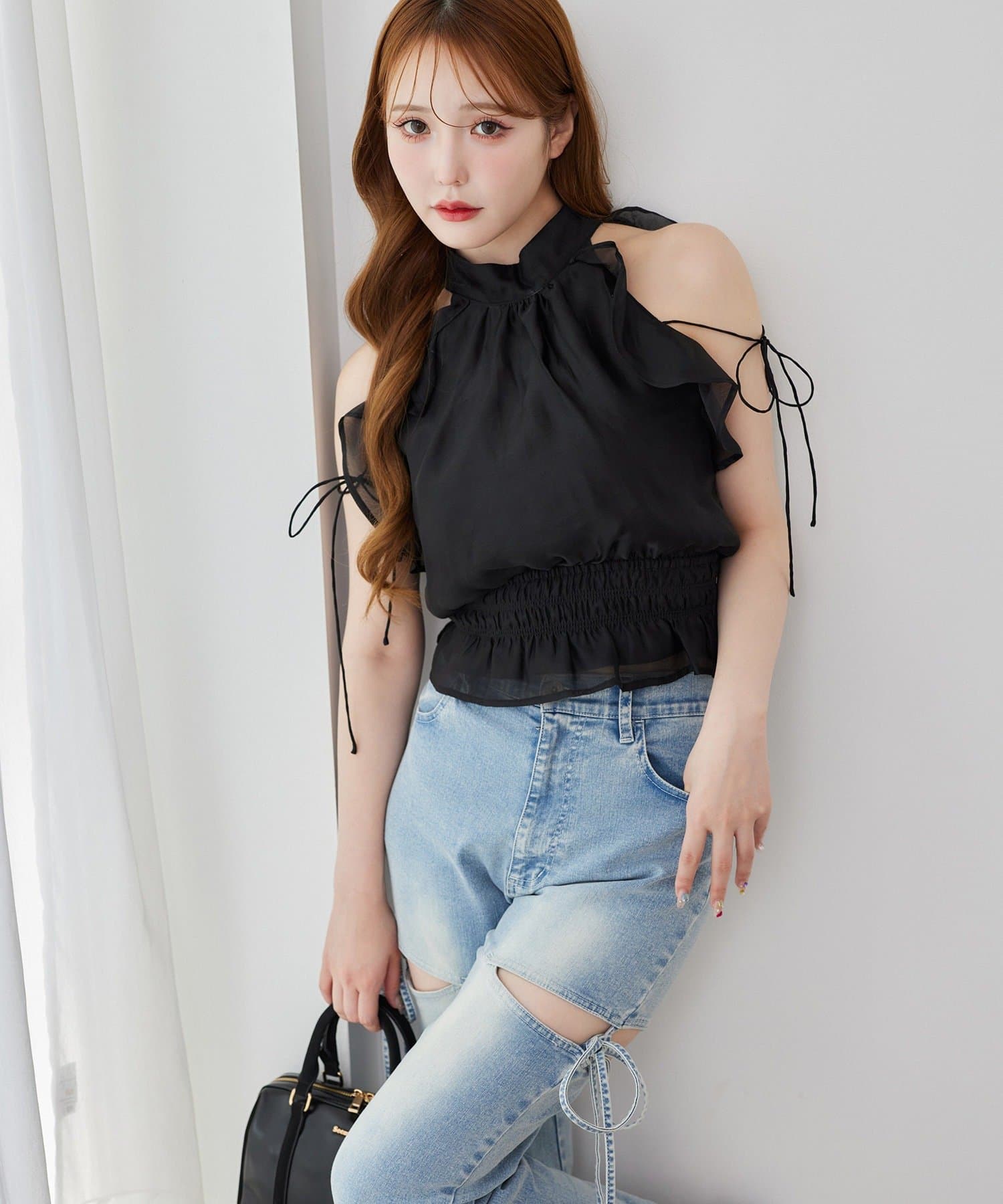 サイドオープンデザインで抜け感をプラスしつつ、リボンディテールでガーリーなアクセントをON。