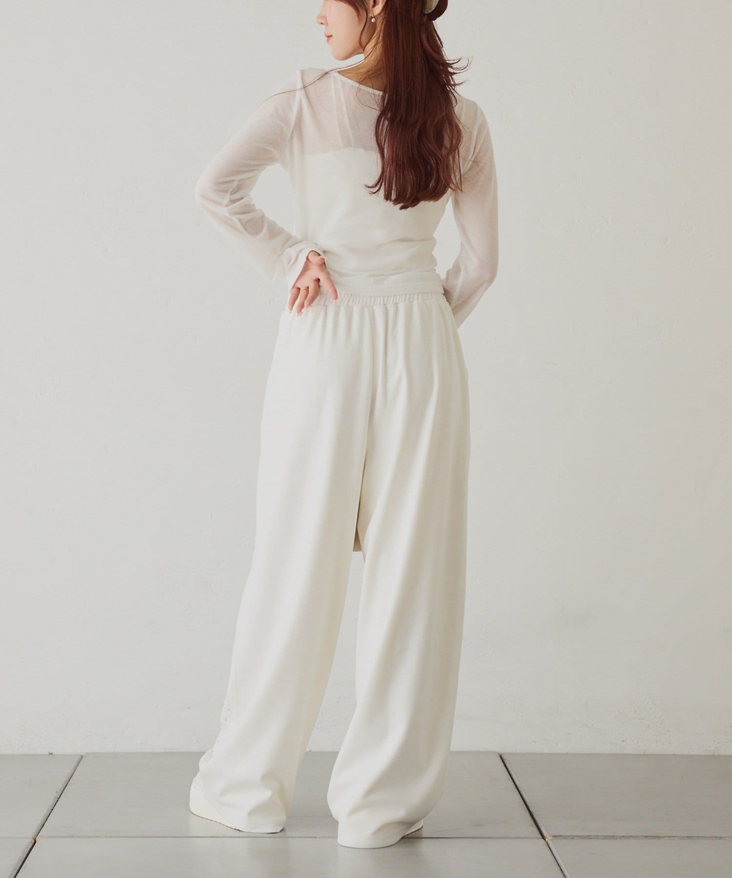 ゆったりとしたワイドシルエットで、リラックス感がありながらも