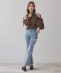 • one after another NICE CLAUP(ワンアフターアナザー ナイスクラップ) サイドカットレースフレアデニム