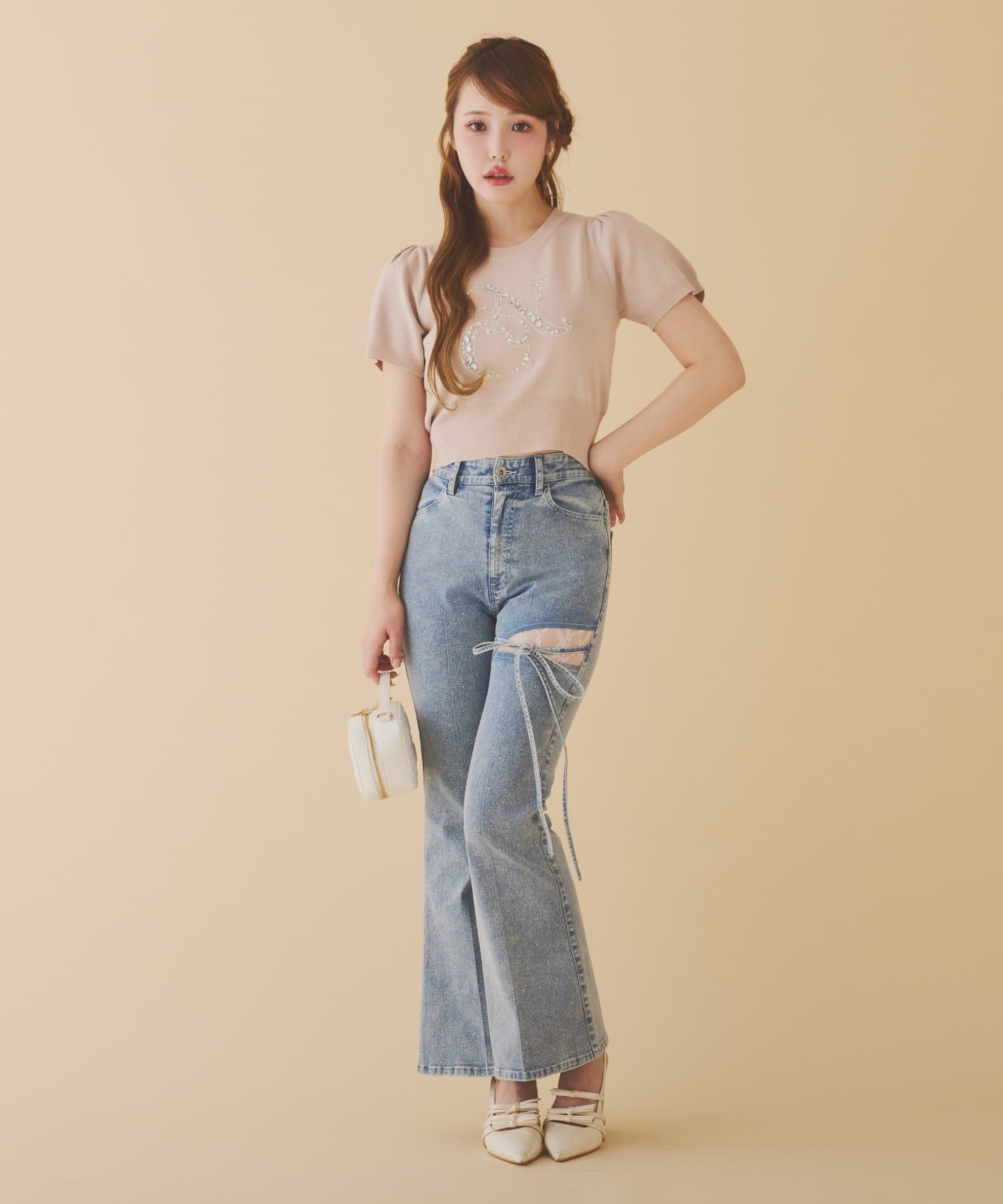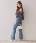 デニムなので着回し力はもちろん、レースとリボンでカジュアル過ぎないコーデになりました!細見えシルエット、かつ加工が施されてるのでスキニー苦手な私でも安心でした!