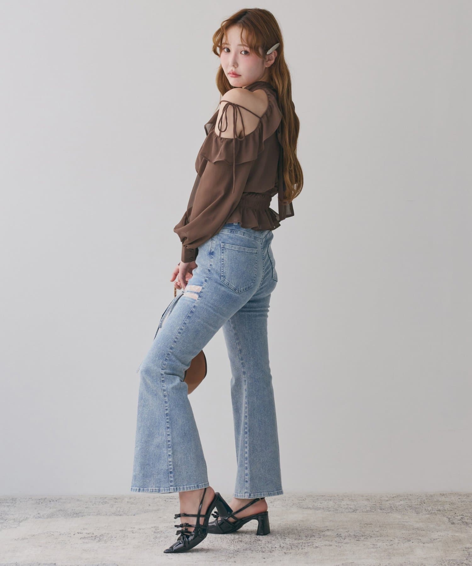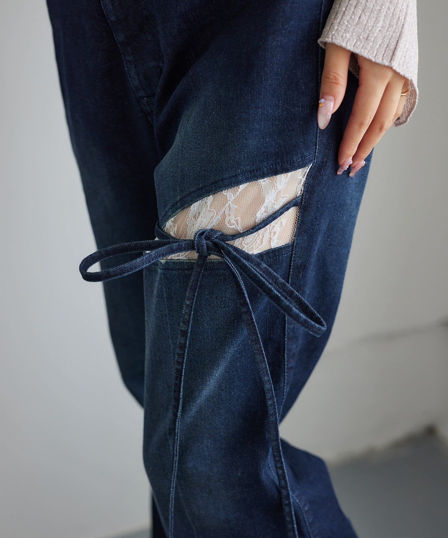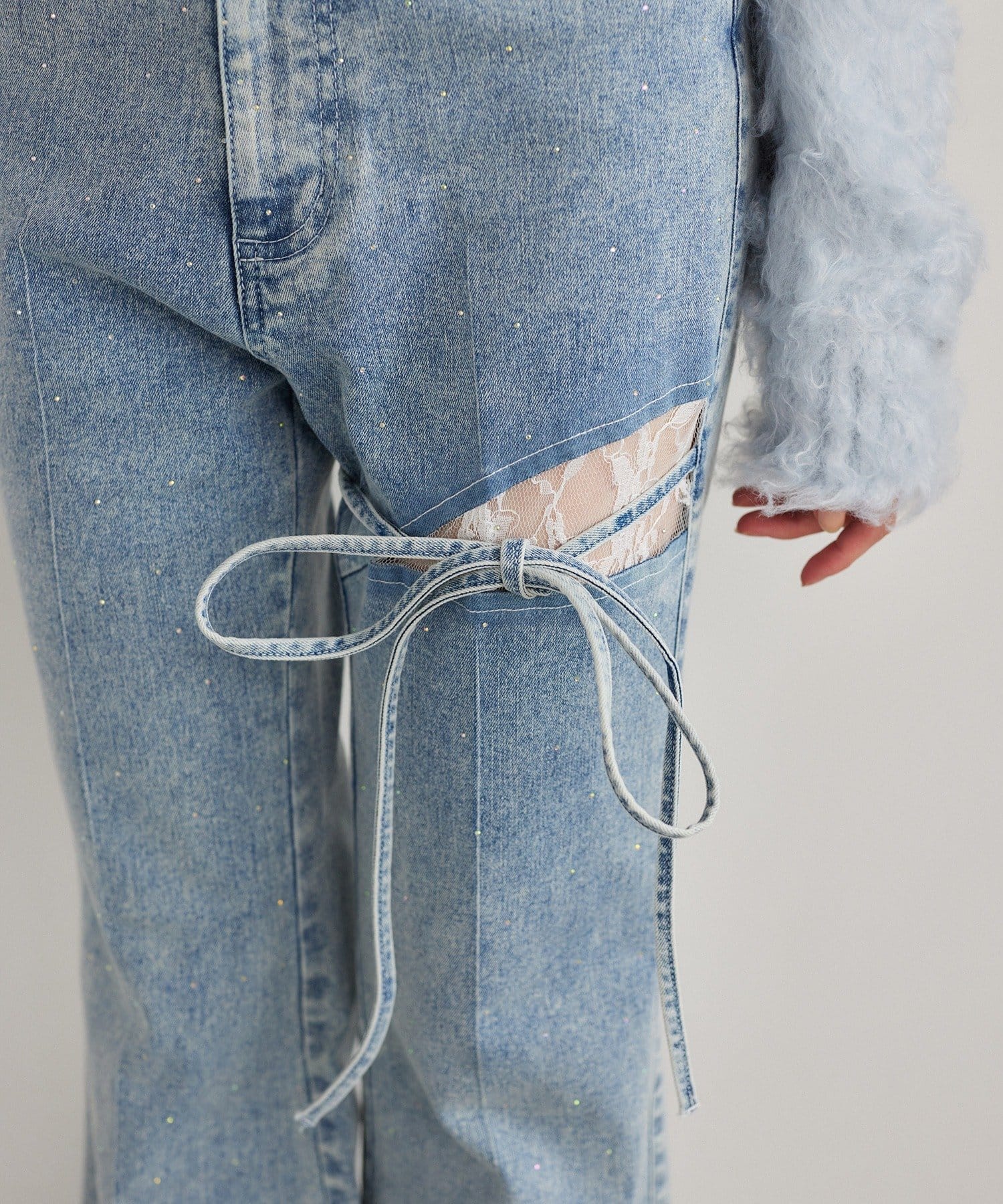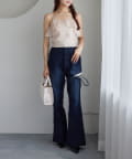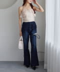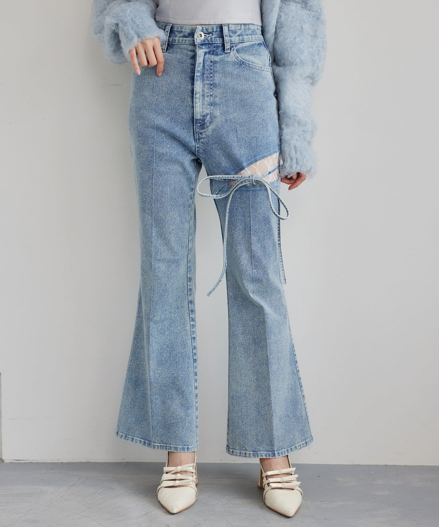 サイドカットレースフレアデニム