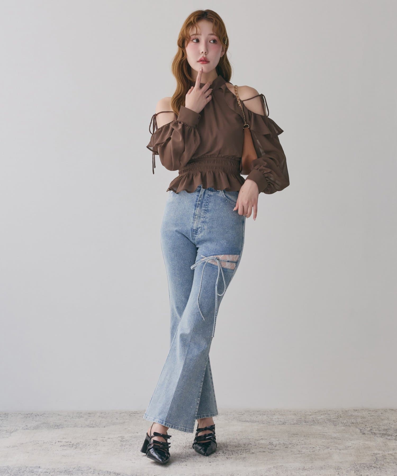 サイドオープンデザインで抜け感をプラスしつつ、レースとリボンディテールでガーリーなアクセントをON。