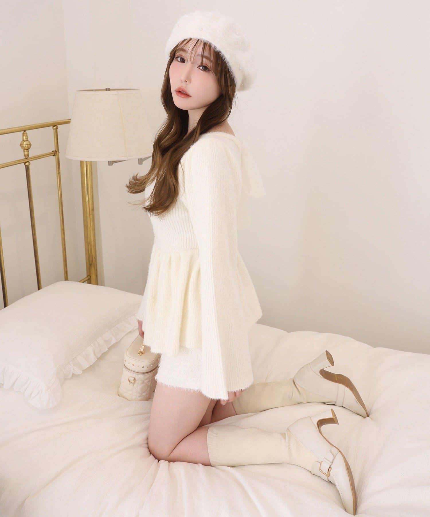 タックインしたブラウスと合わせて、大人ガーリーなスタイルに。