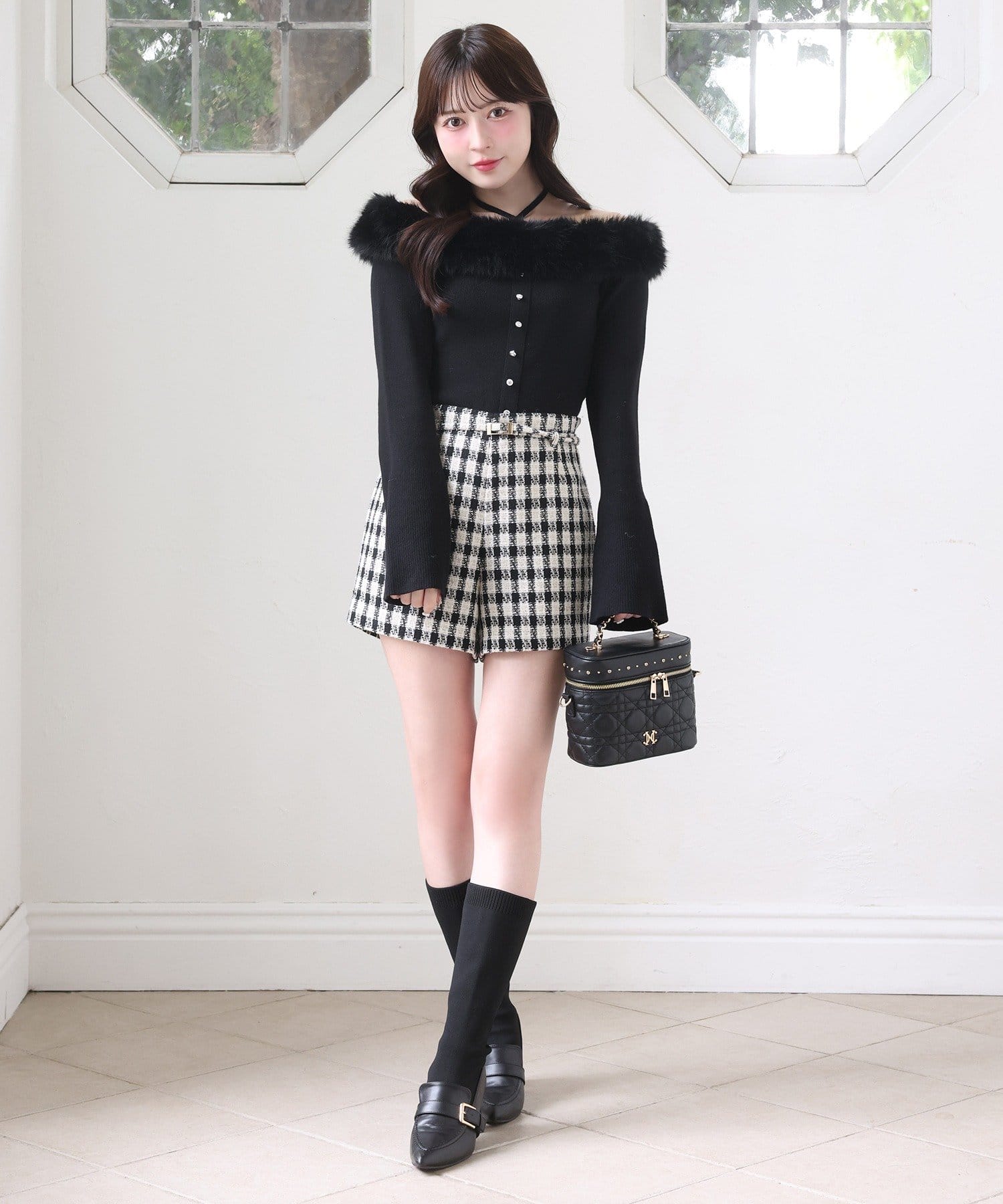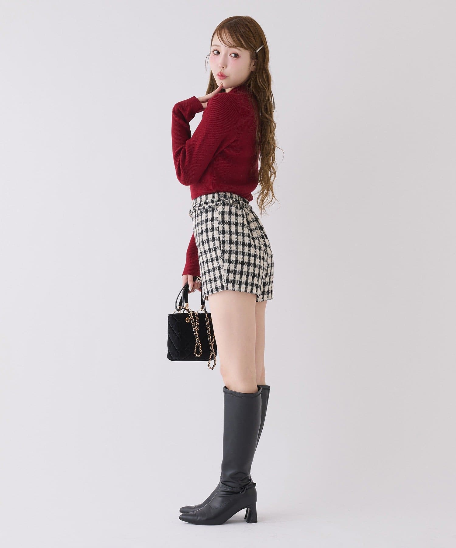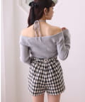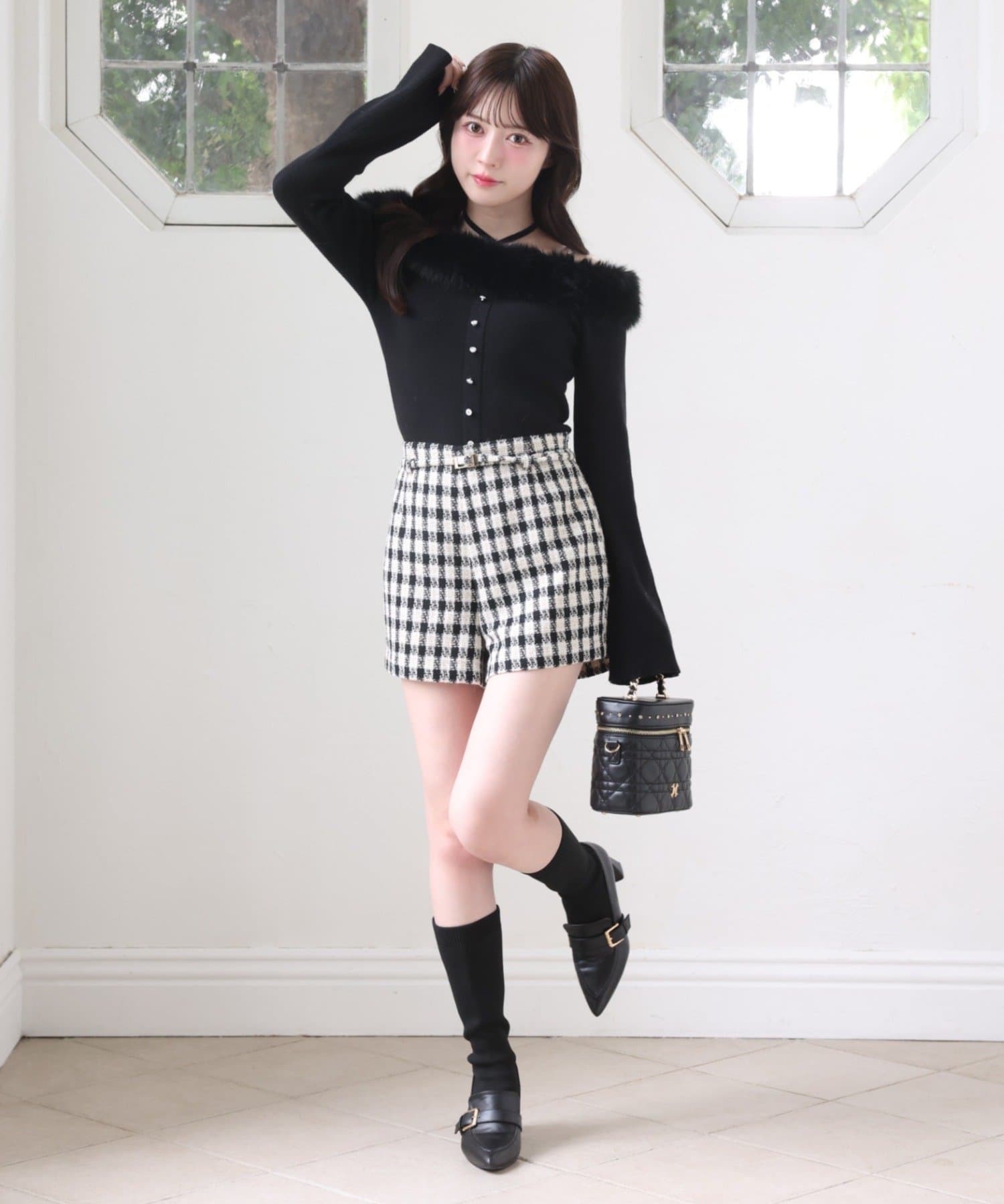 ショート丈ニットやカーデと合わせて、トレンド感あるバランスコーデに。
