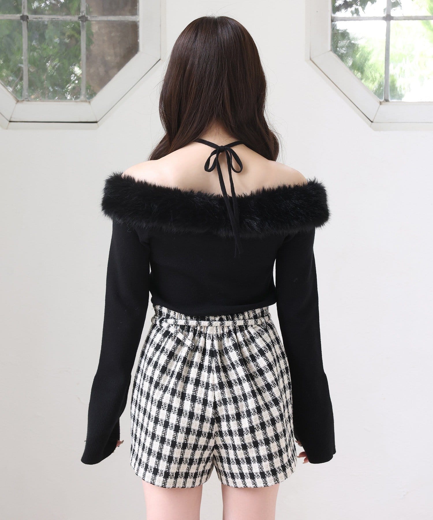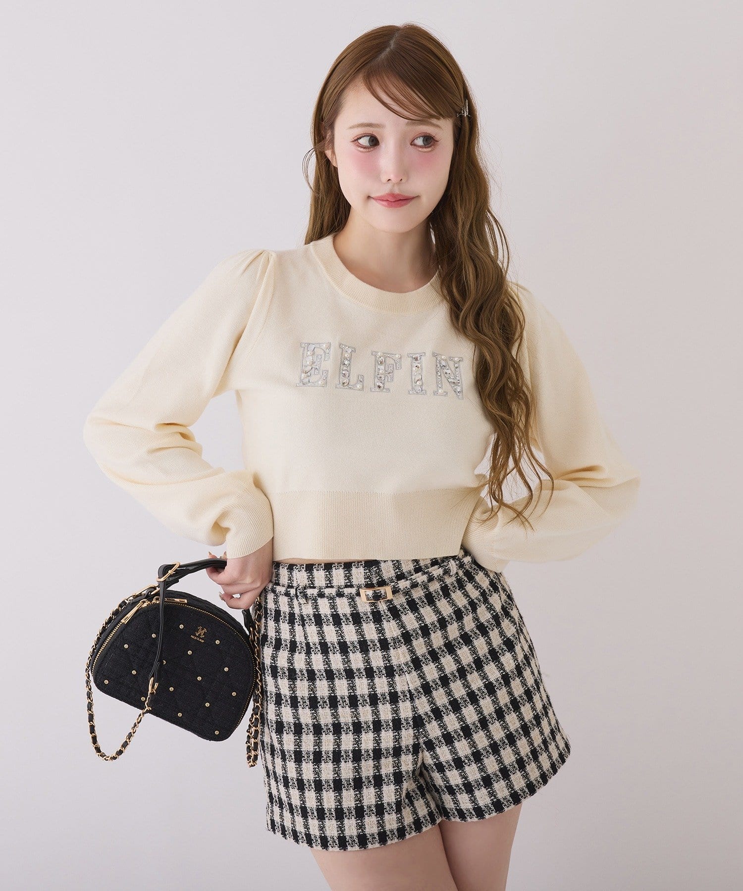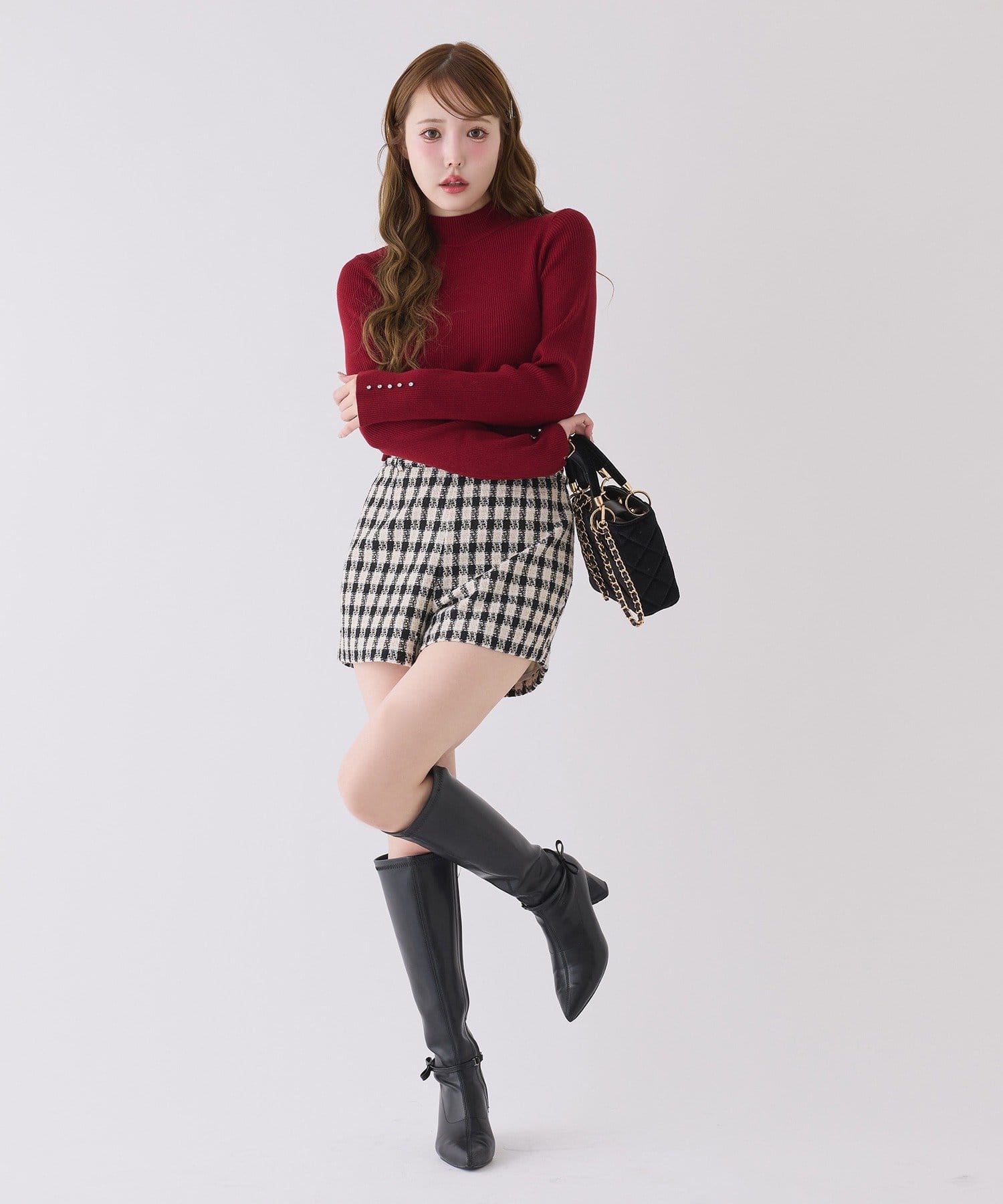 ショート丈ニットやカーデと合わせて、トレンド感あるバランスコーデに。