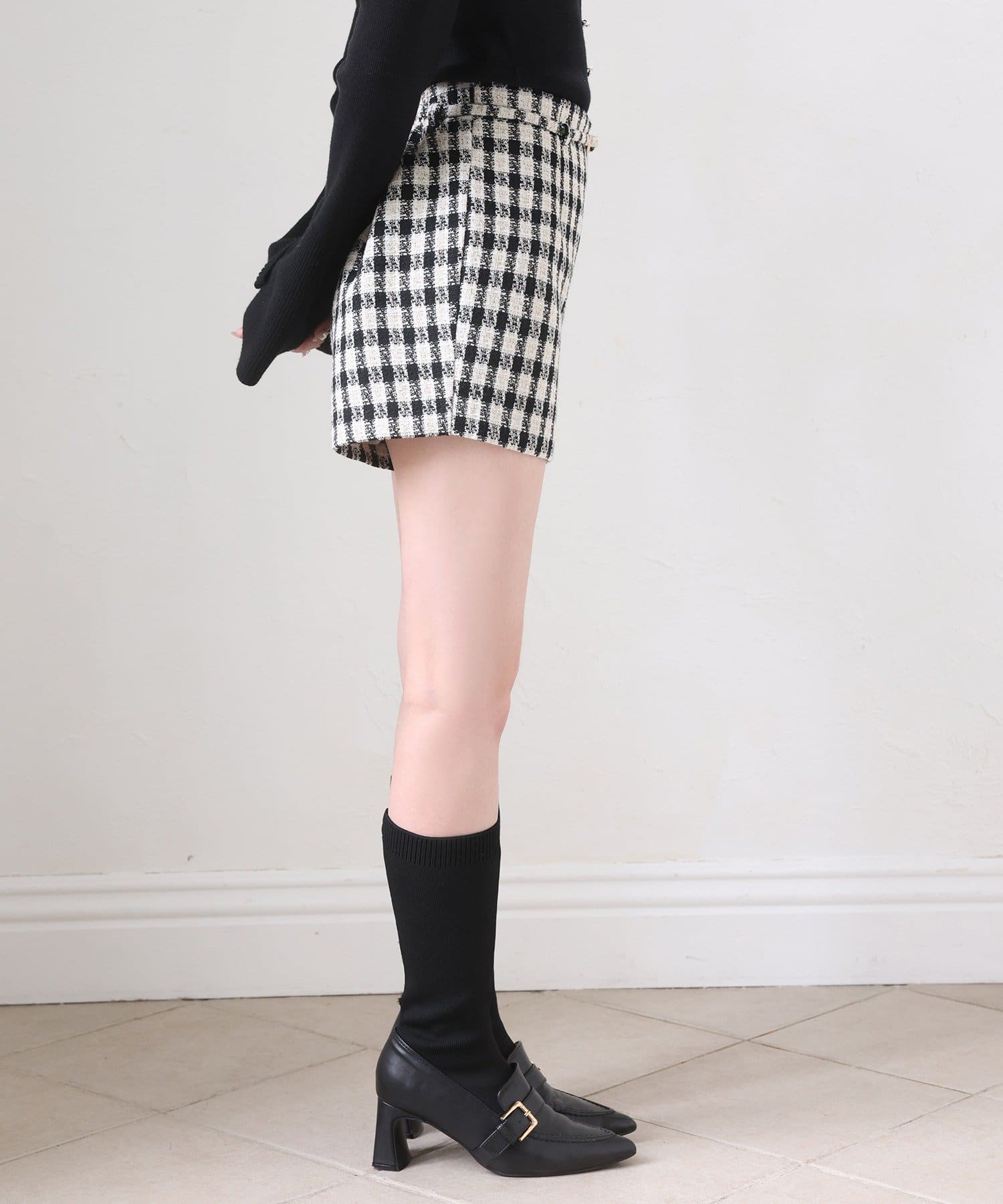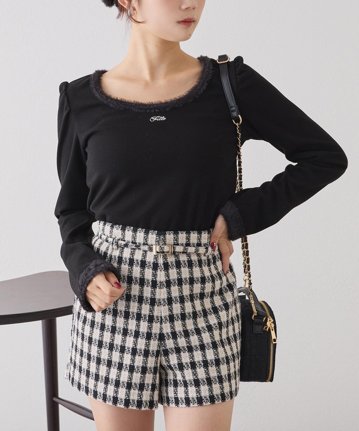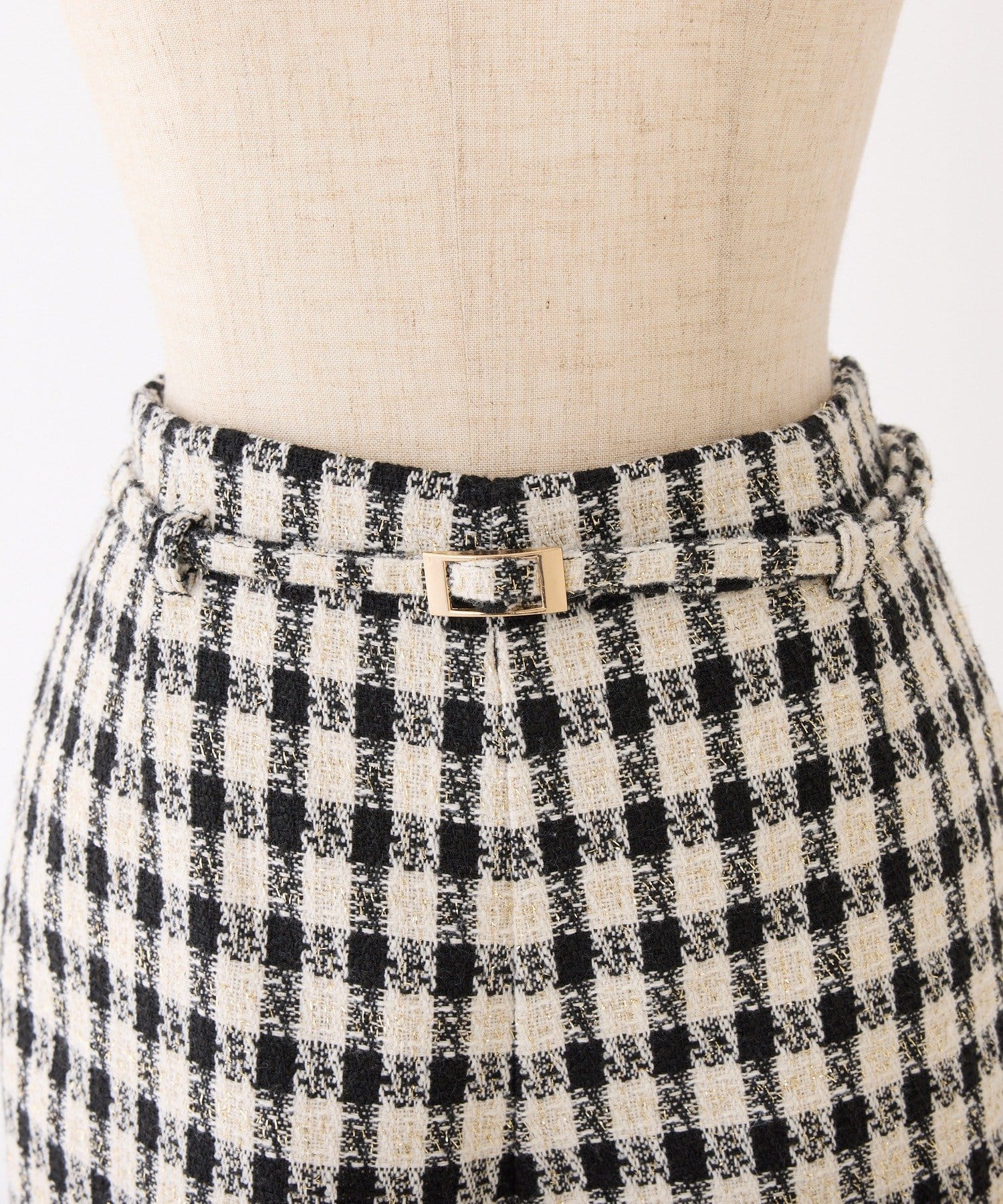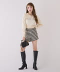 タックインしたブラウスと合わせて、大人ガーリーなスタイルに。