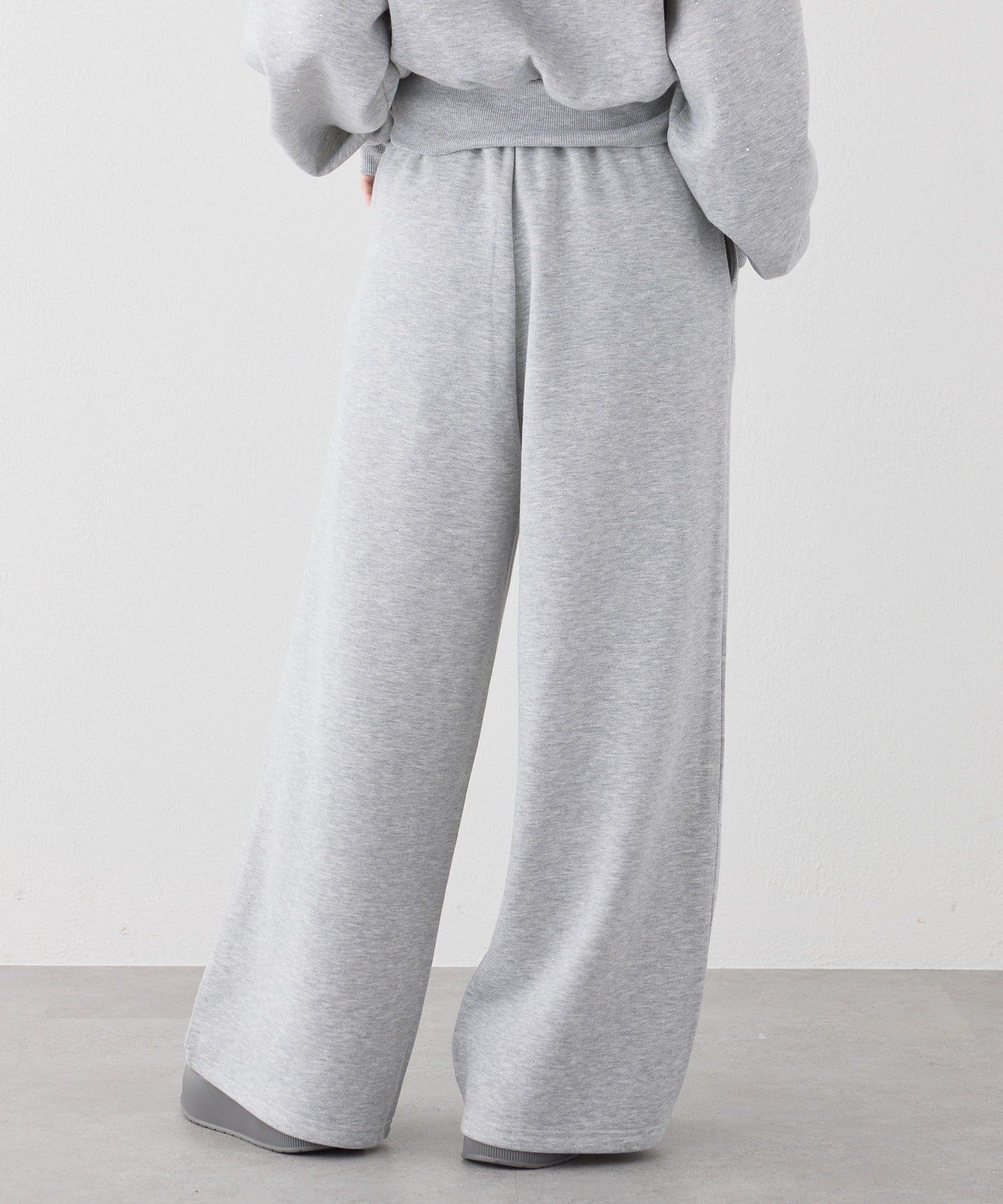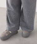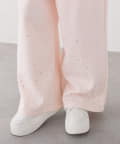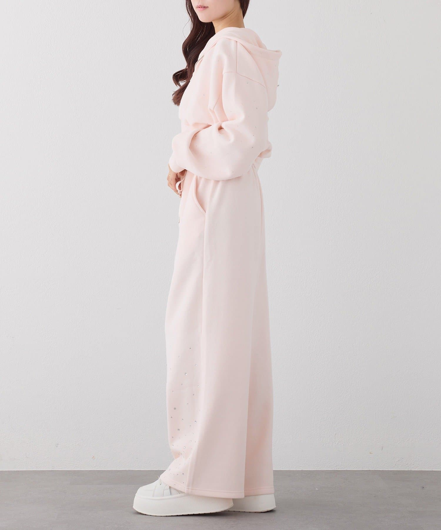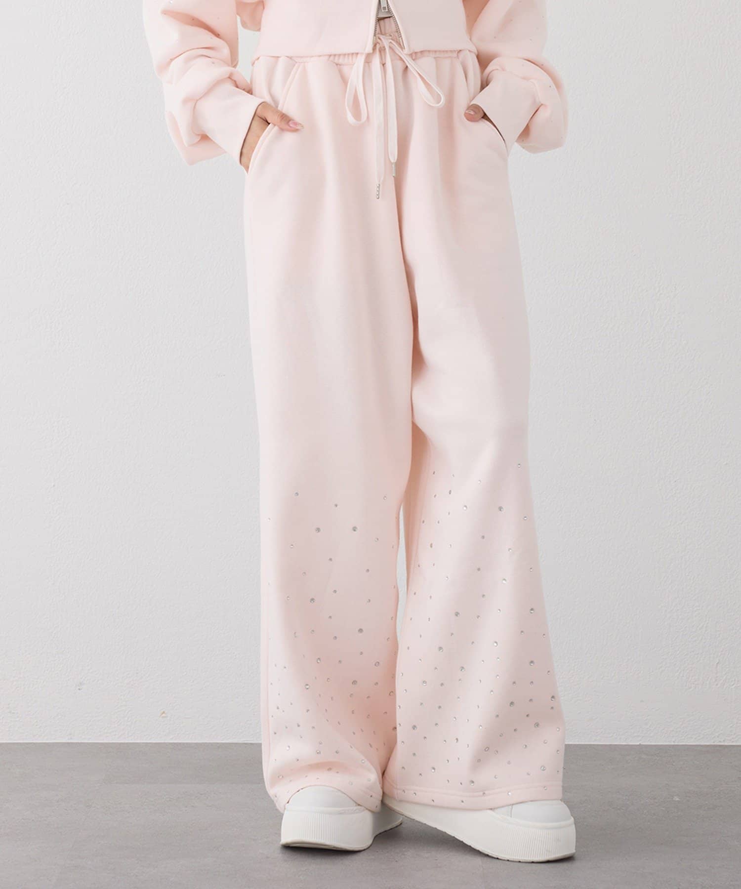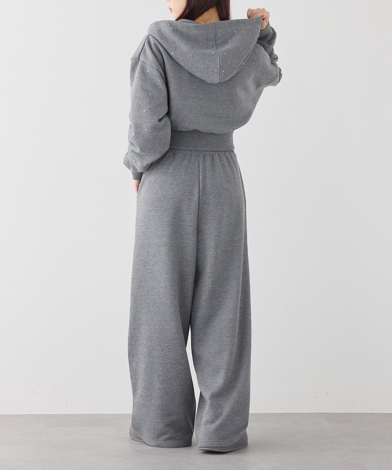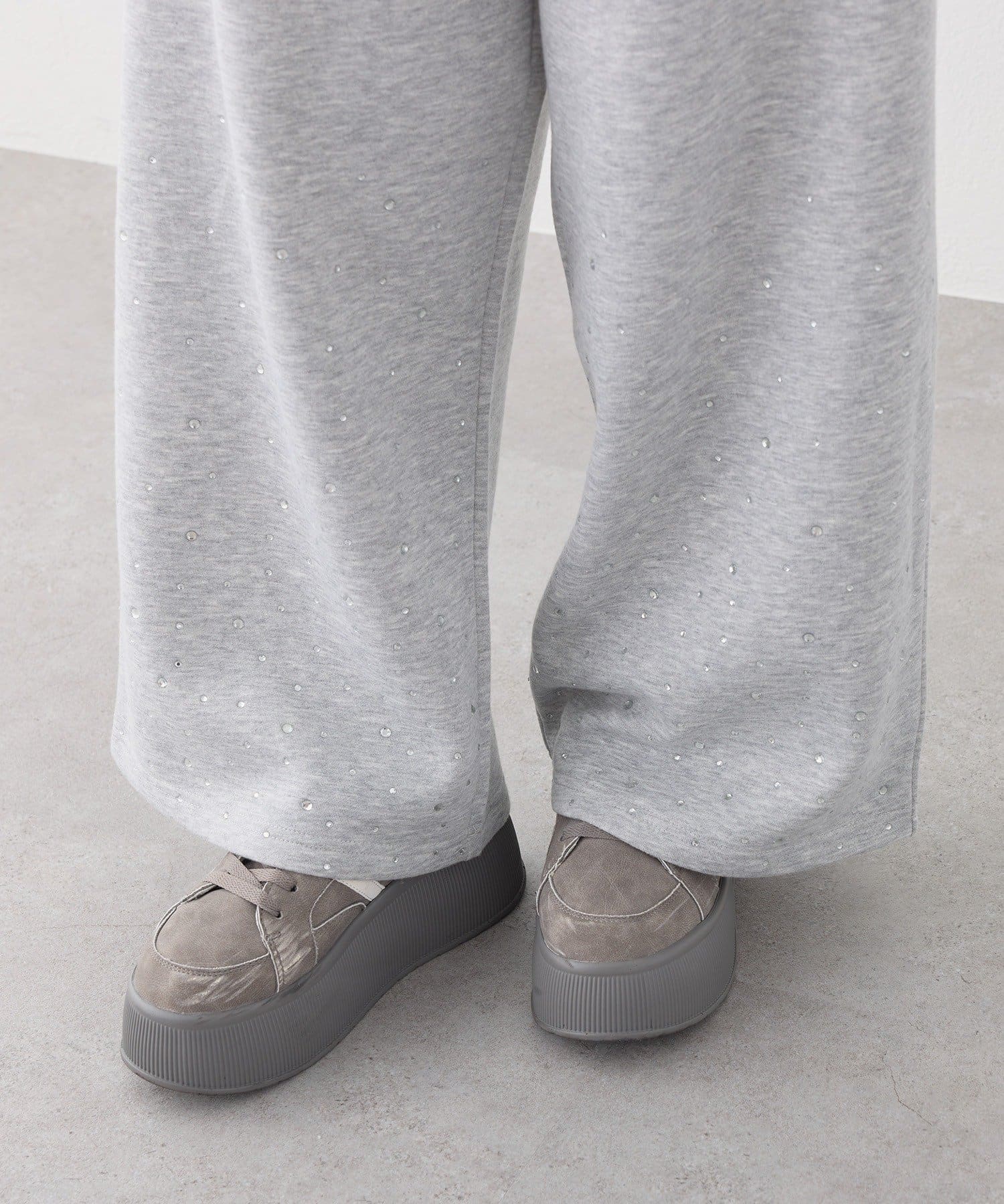 裾にビジューをあしらった、大人フェミニンなスウェットワイドパンツ。