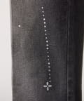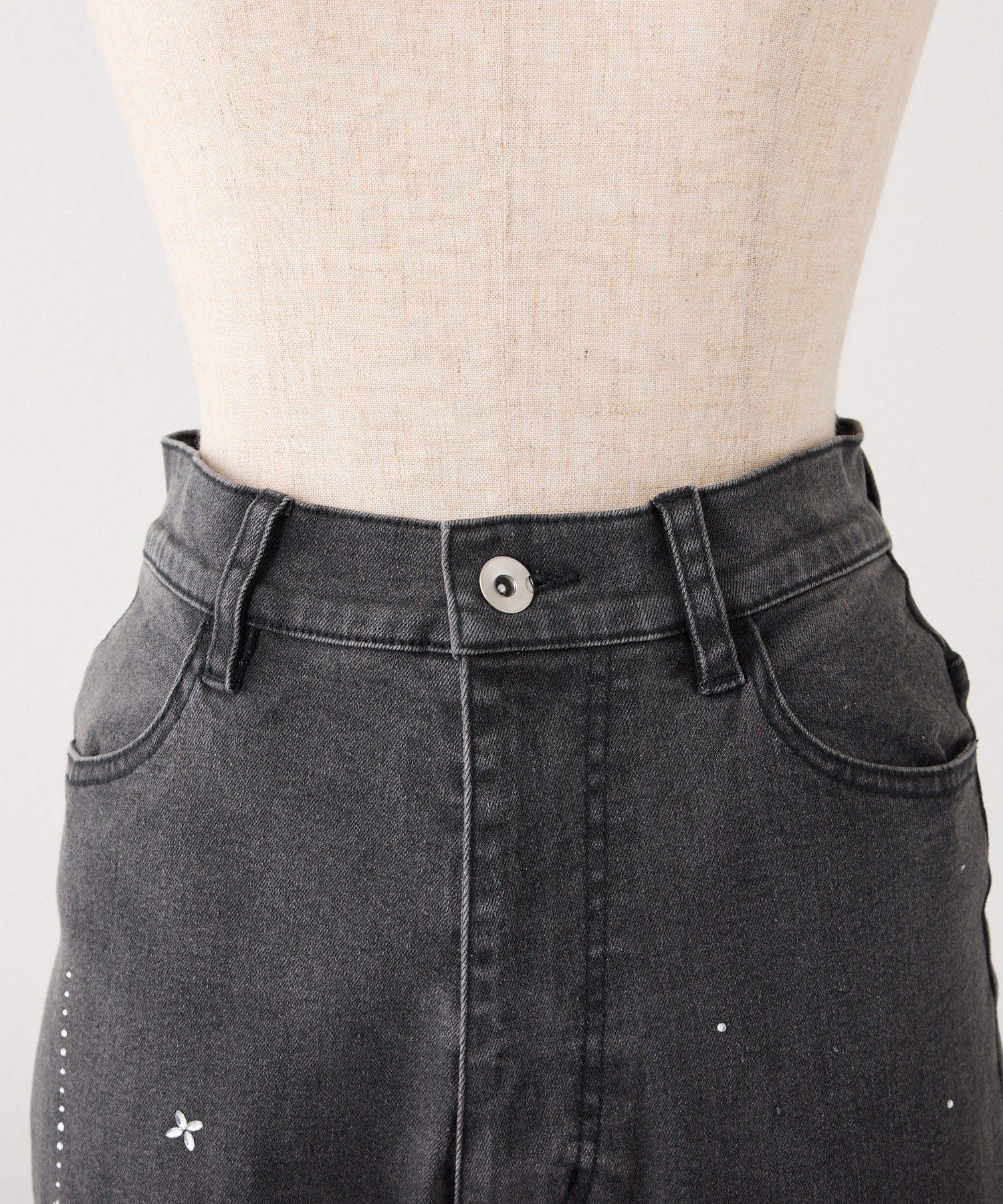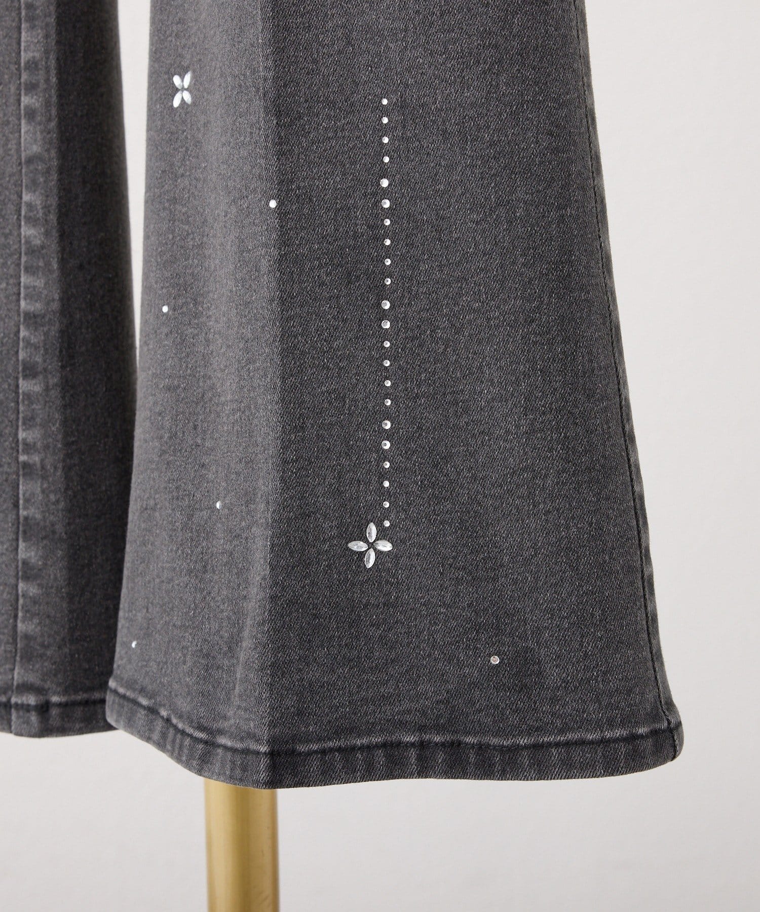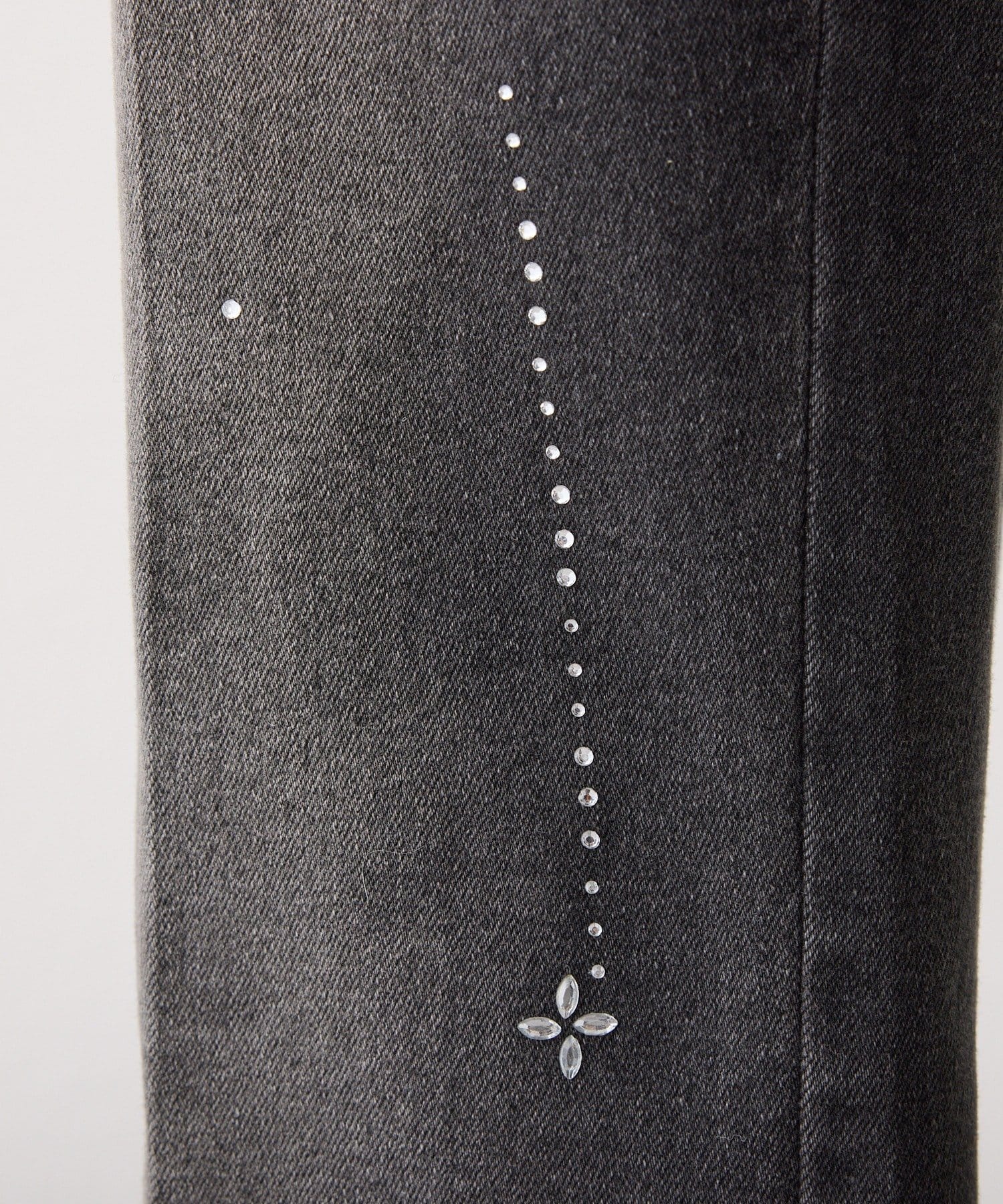 美シルエットで美脚効果抜群のデニムパンツにキラキラビジューがついた主役級デニム