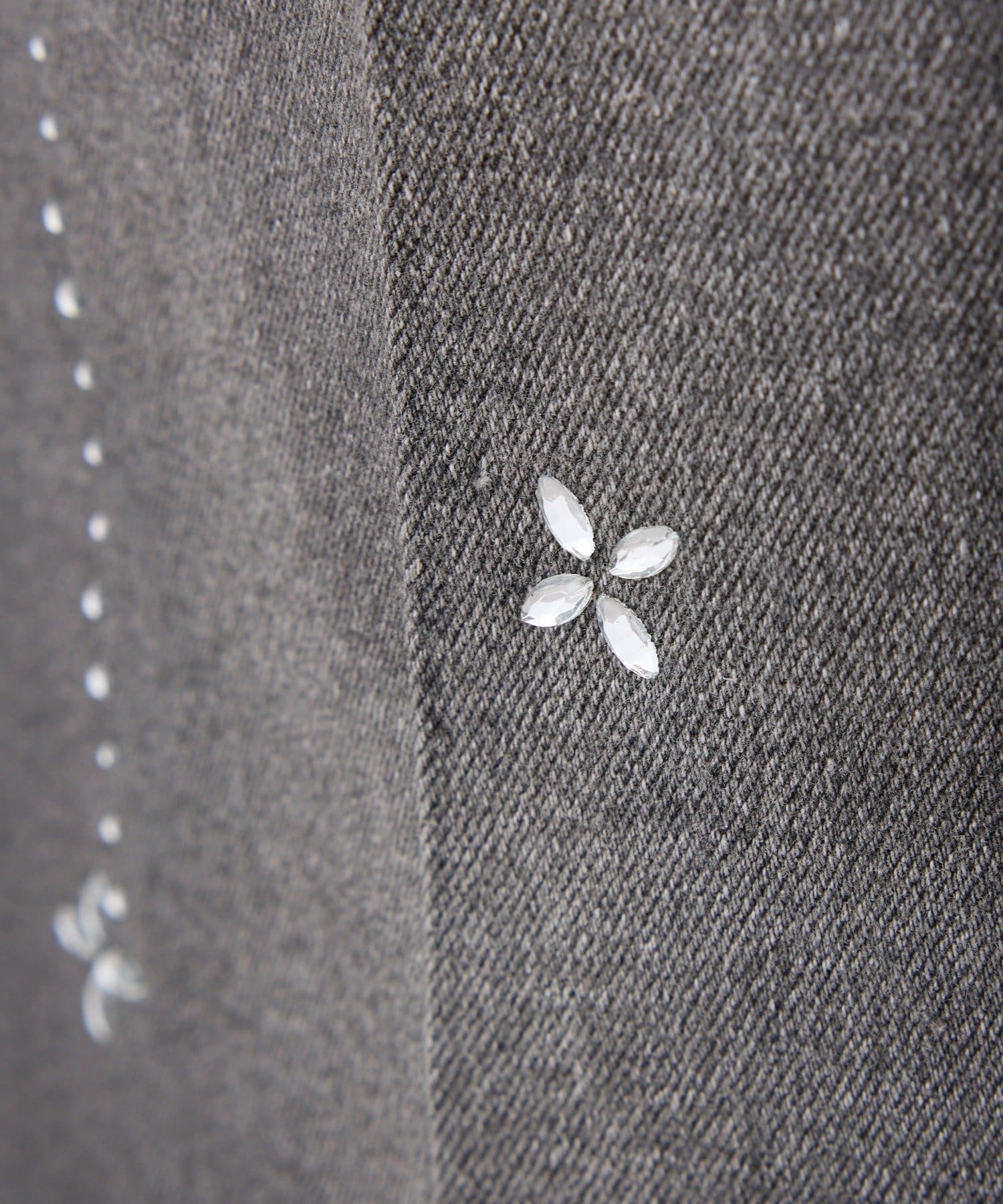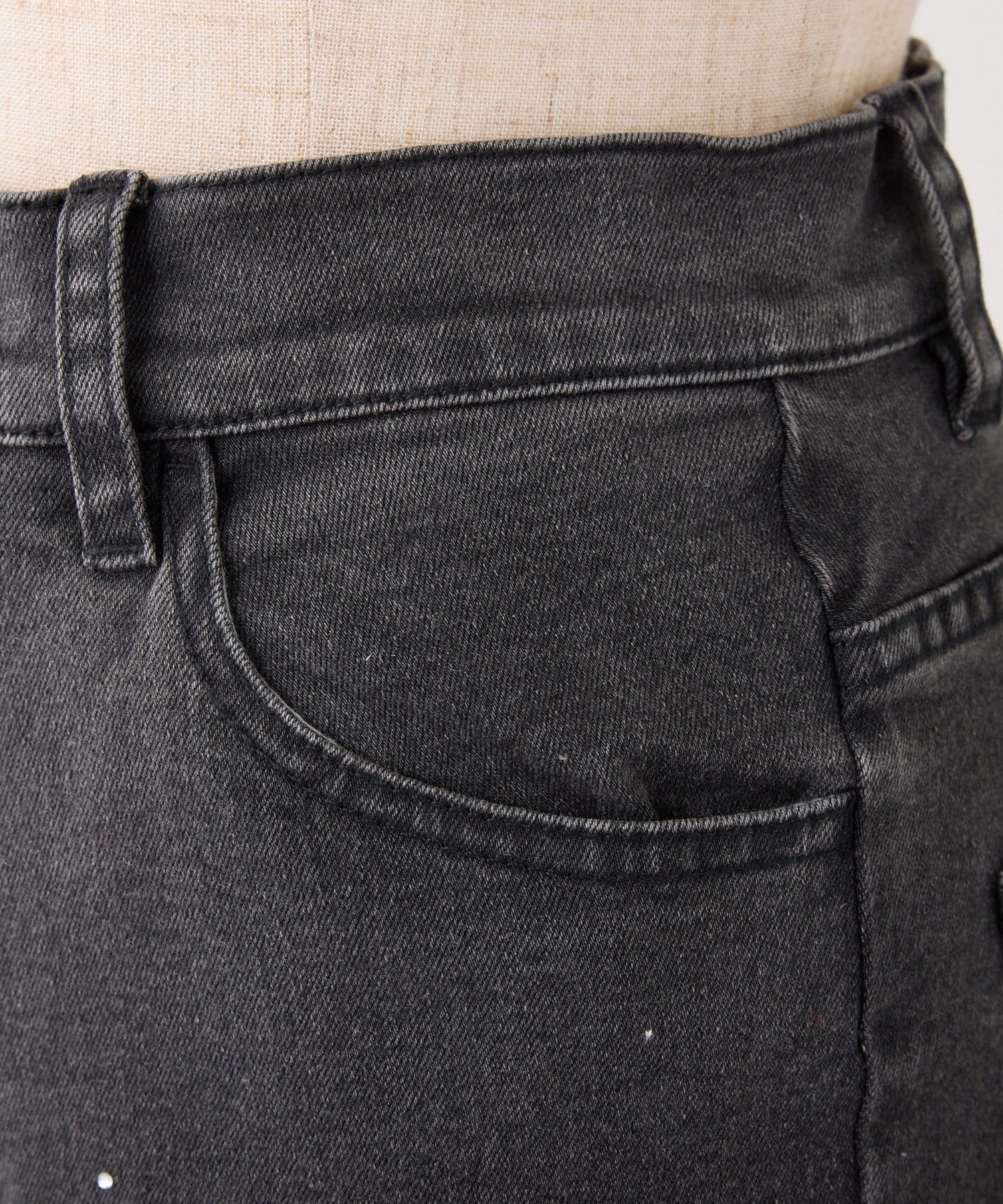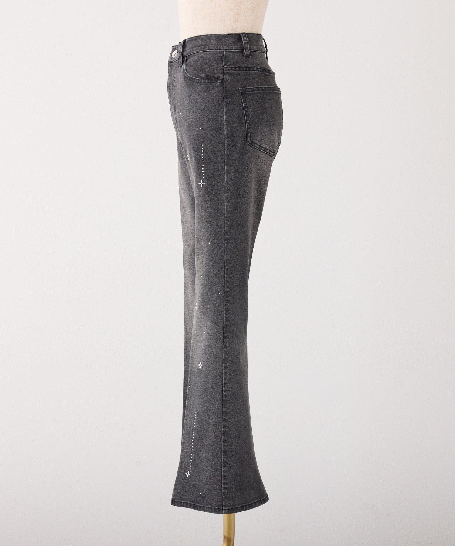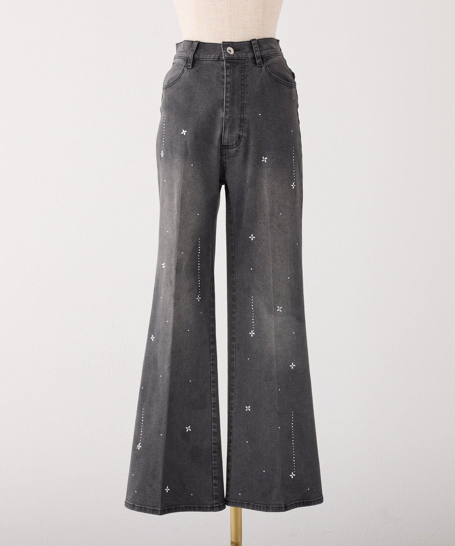 美シルエットで美脚効果抜群のデニムパンツにキラキラビジューがついた主役級デニム