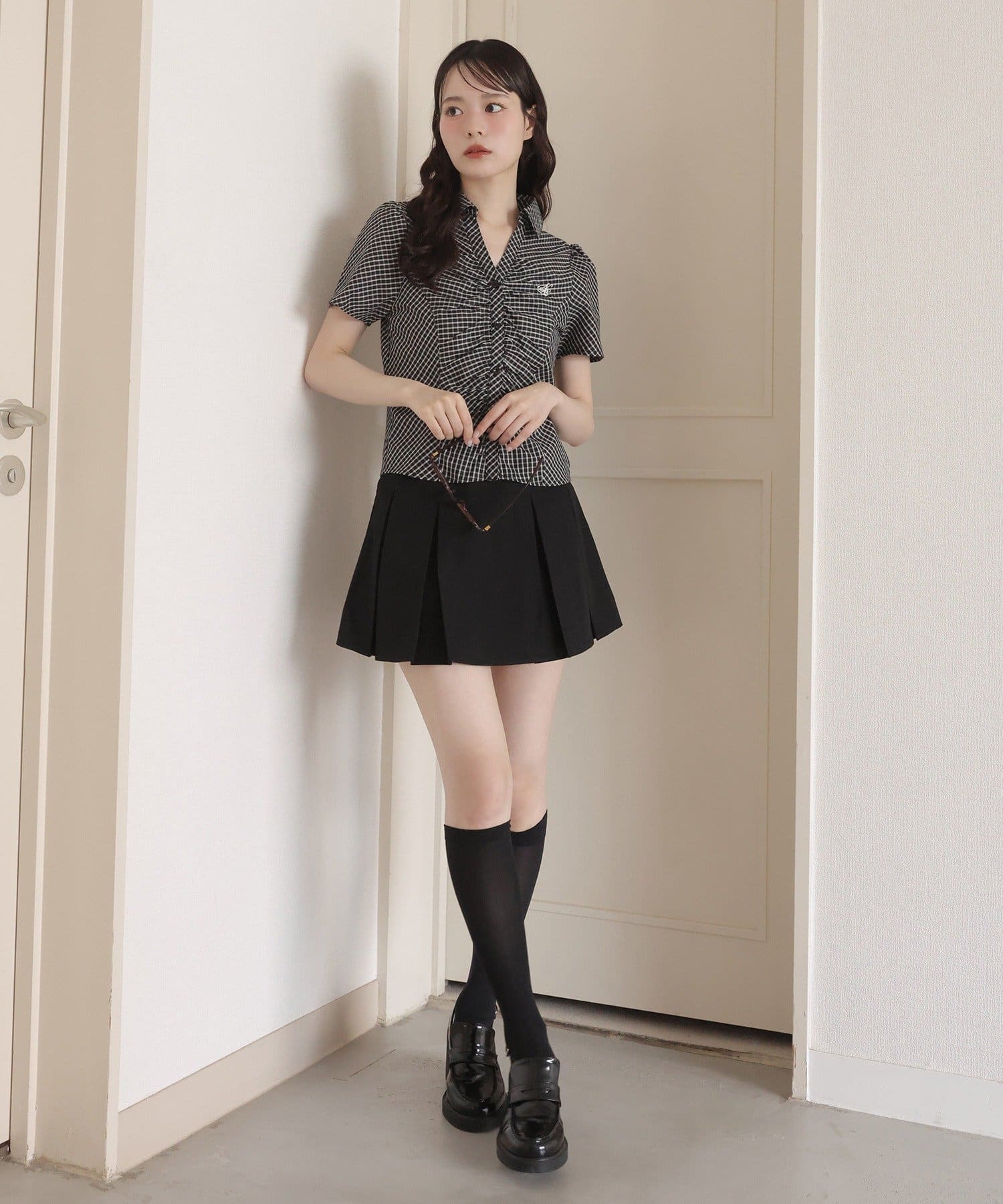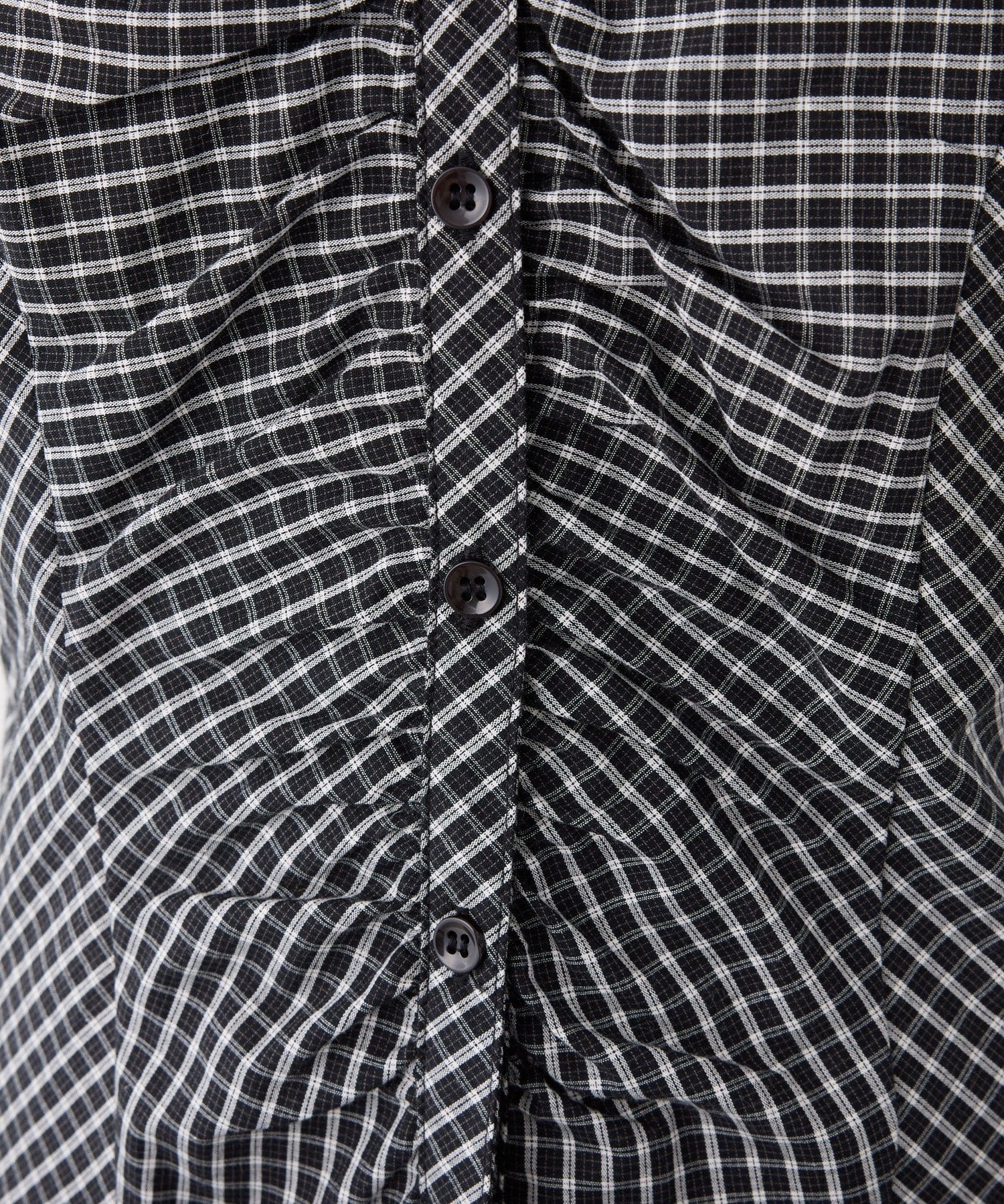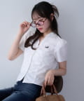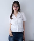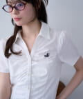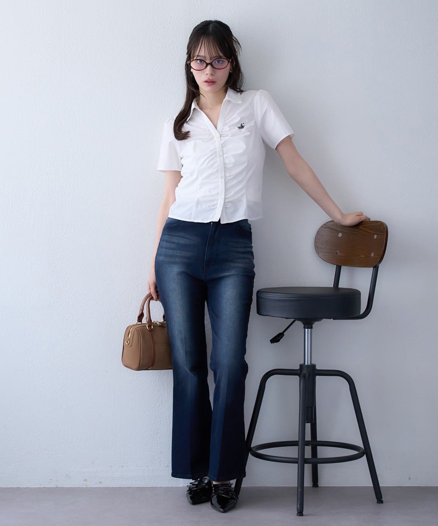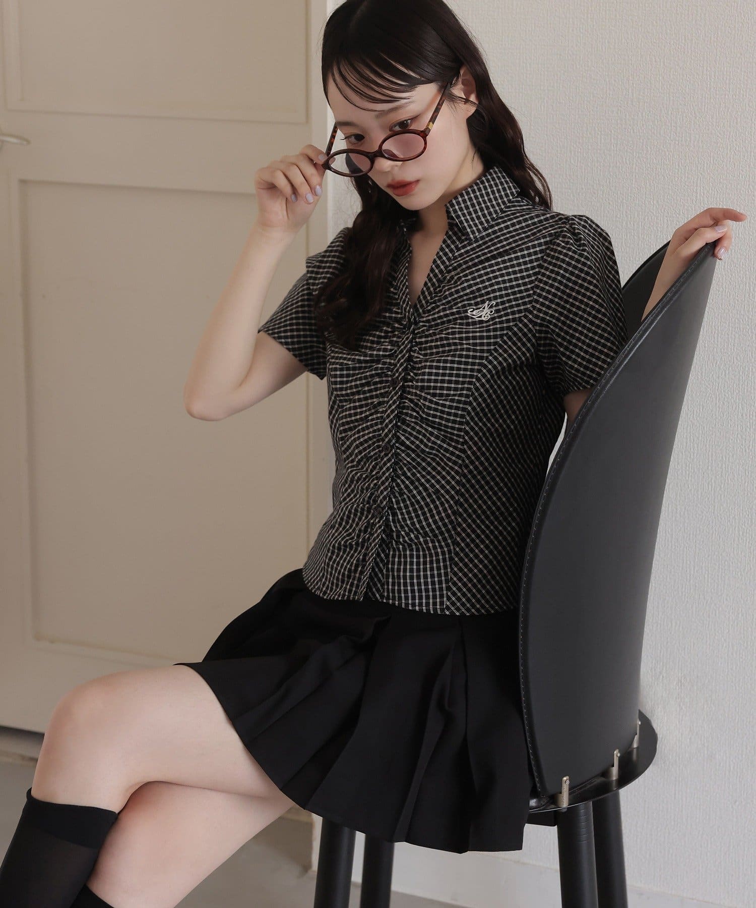 フロントのボタン部分にギャザーを寄せたデザインがポイントの半袖シャツ。