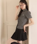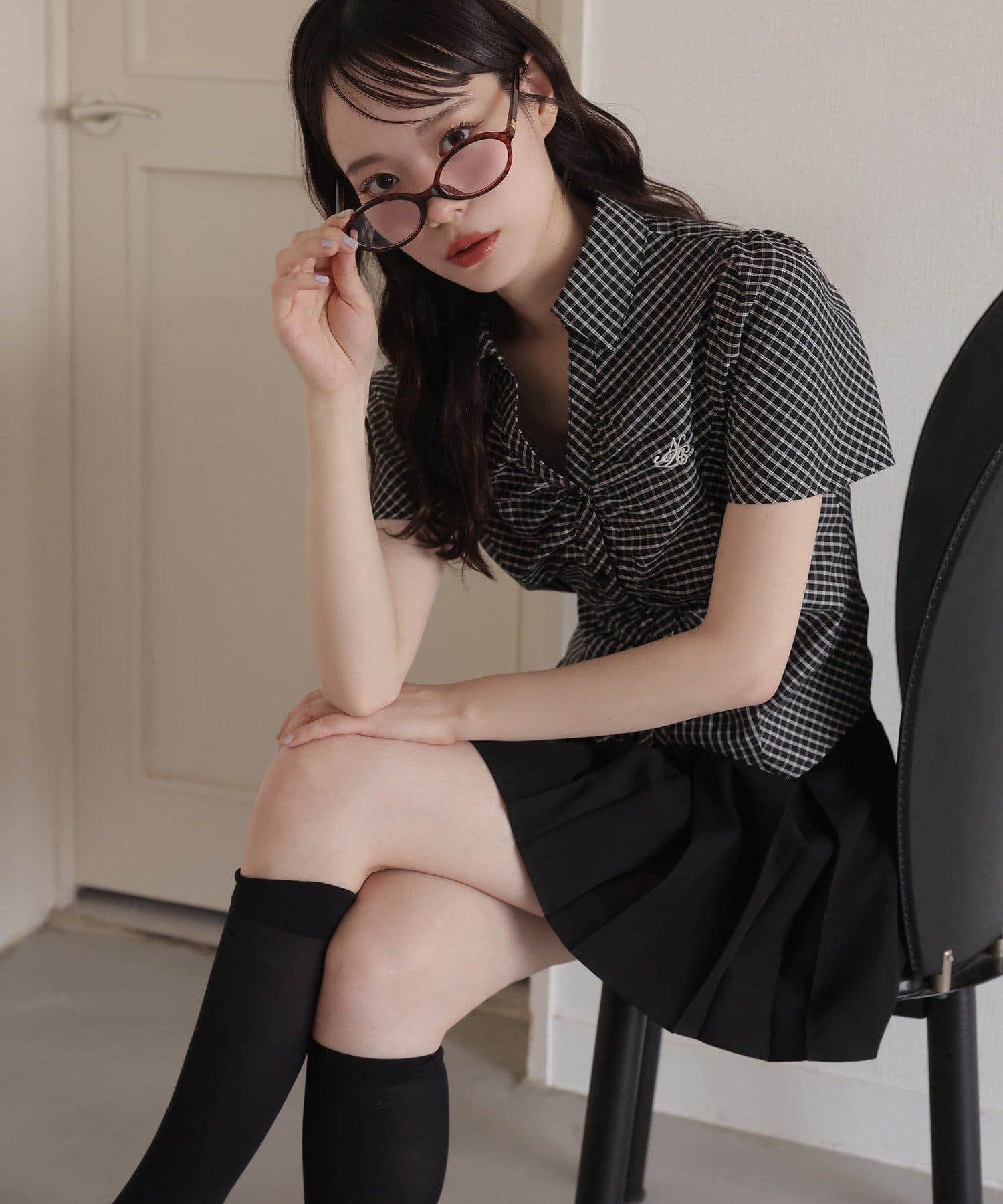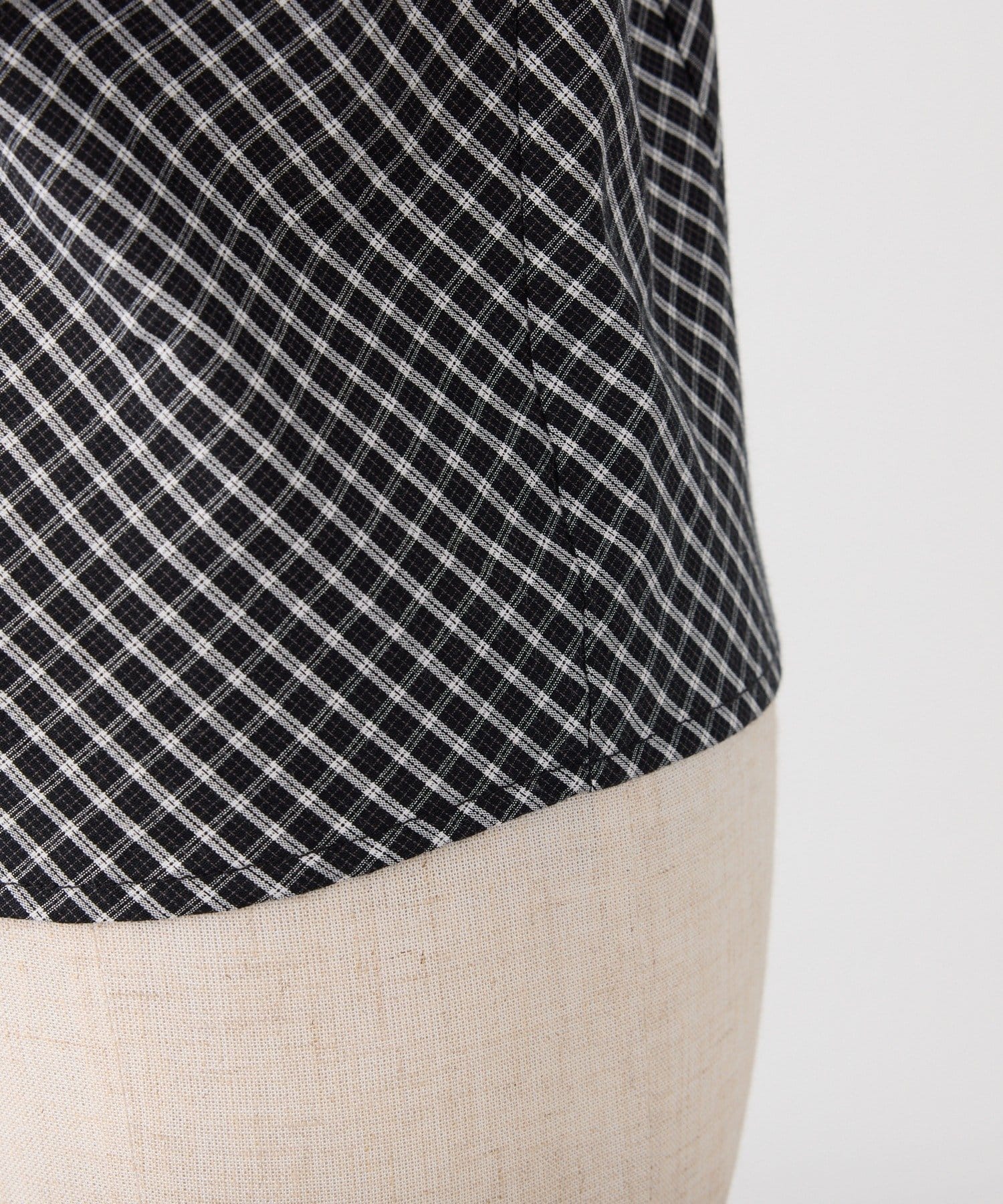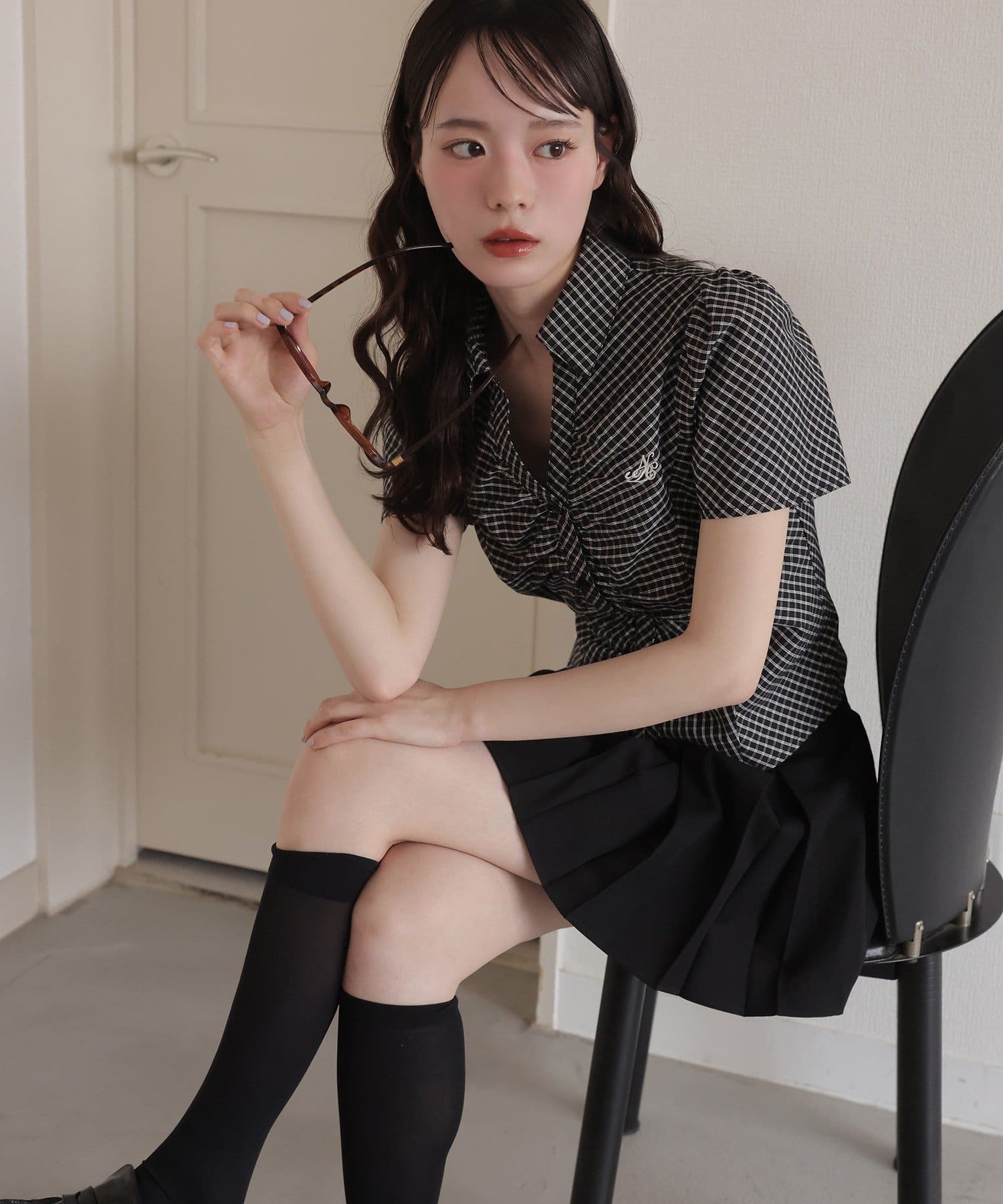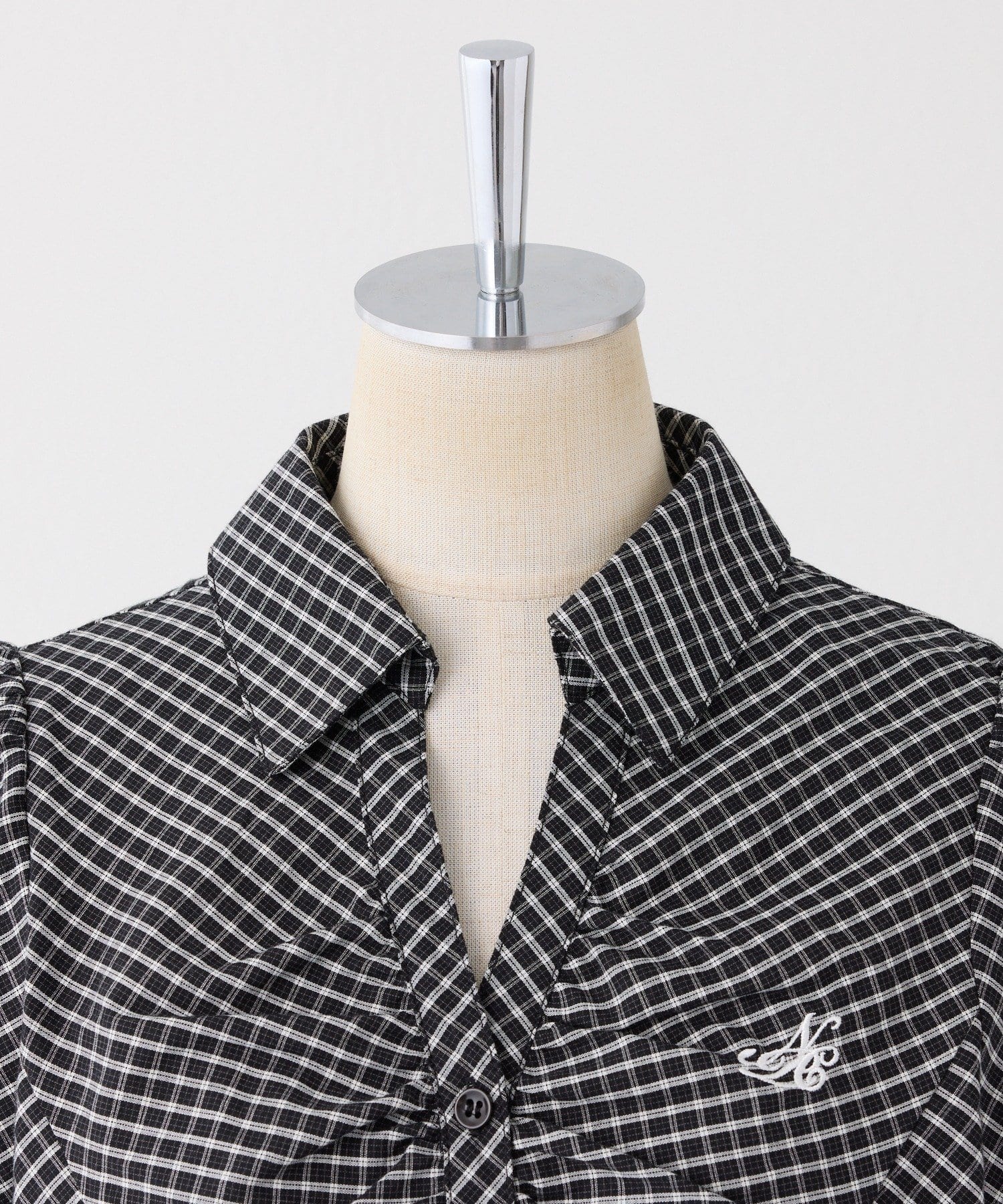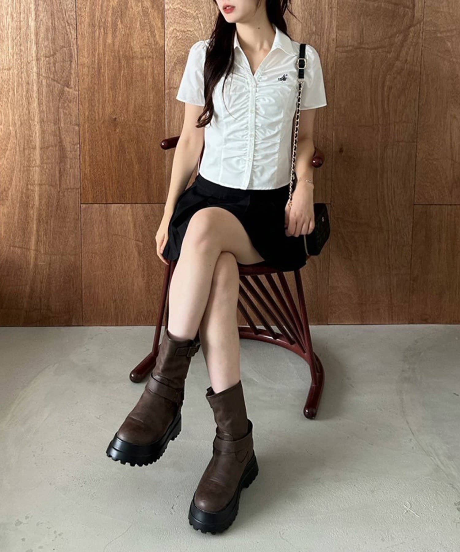 フロントのボタン部分にギャザーを寄せたデザインがポイントの半袖シャツ。