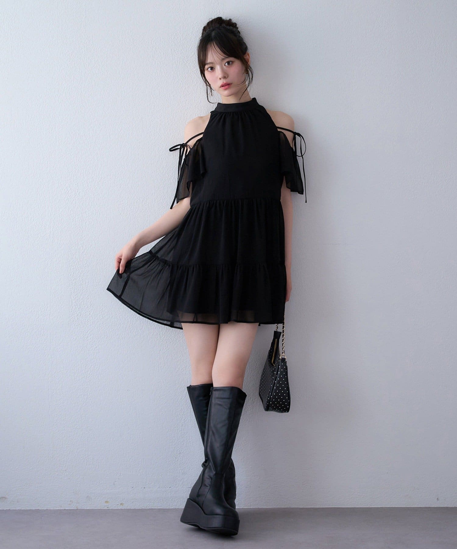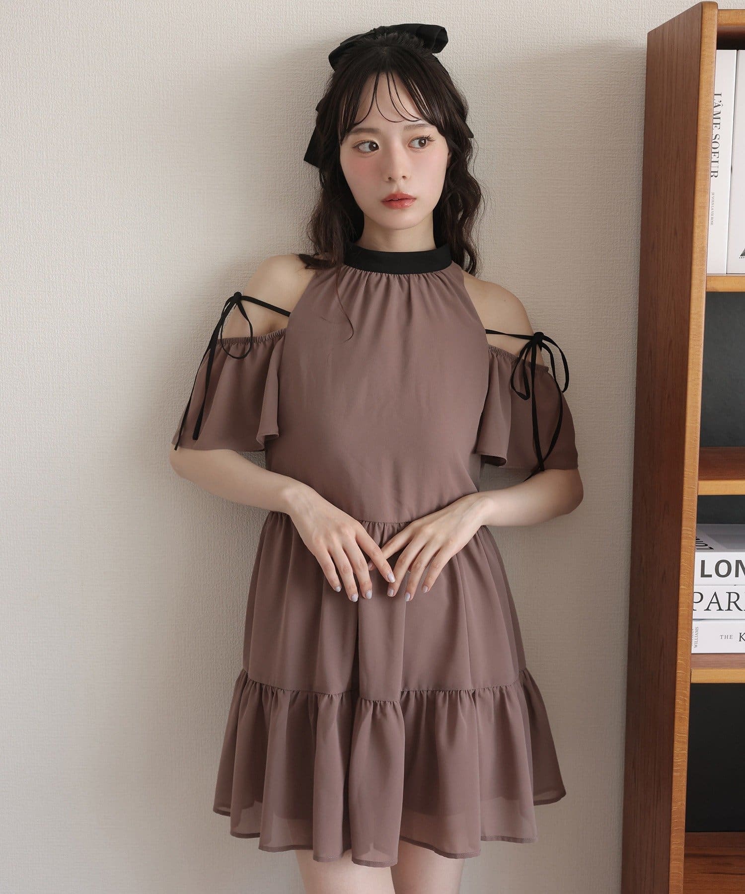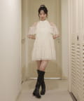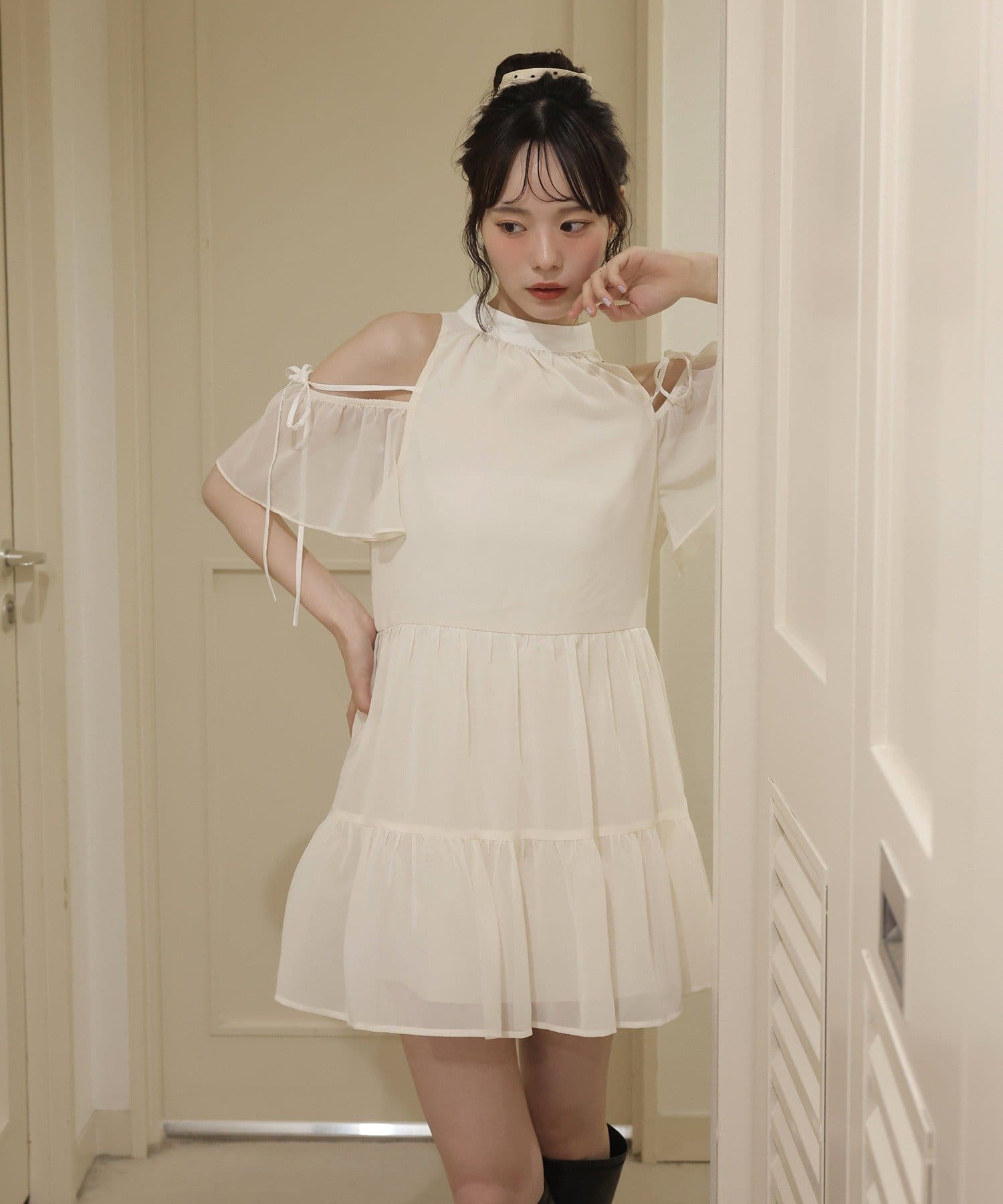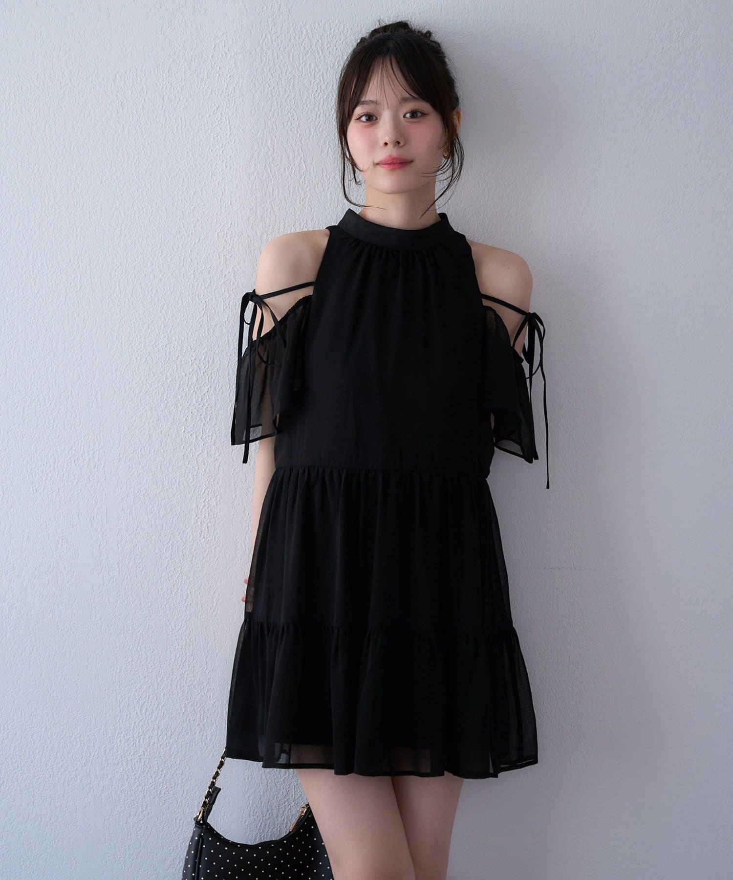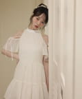 肩にはフリルを施し、フェミニンさをプラスしたデザインに仕上げました。