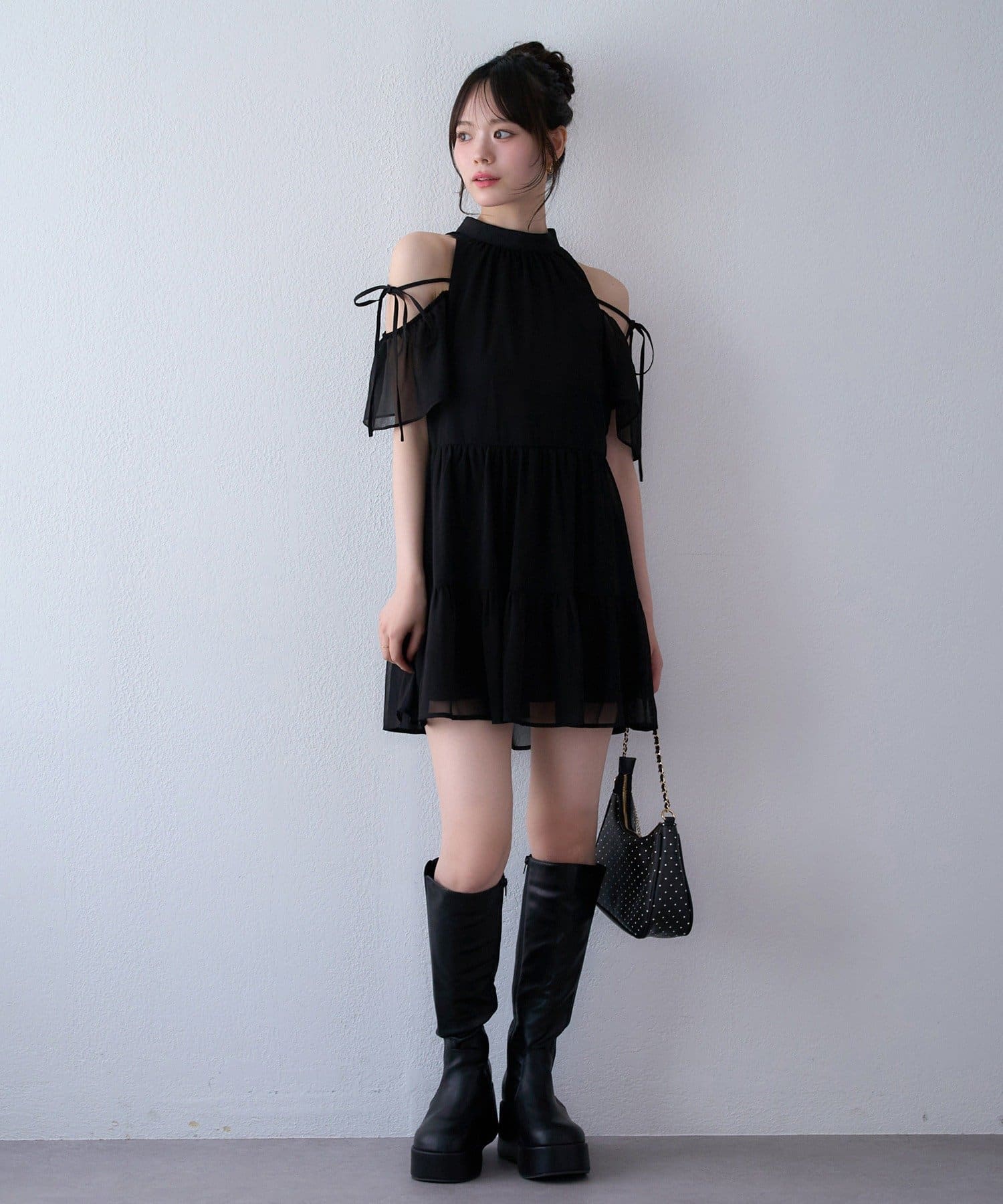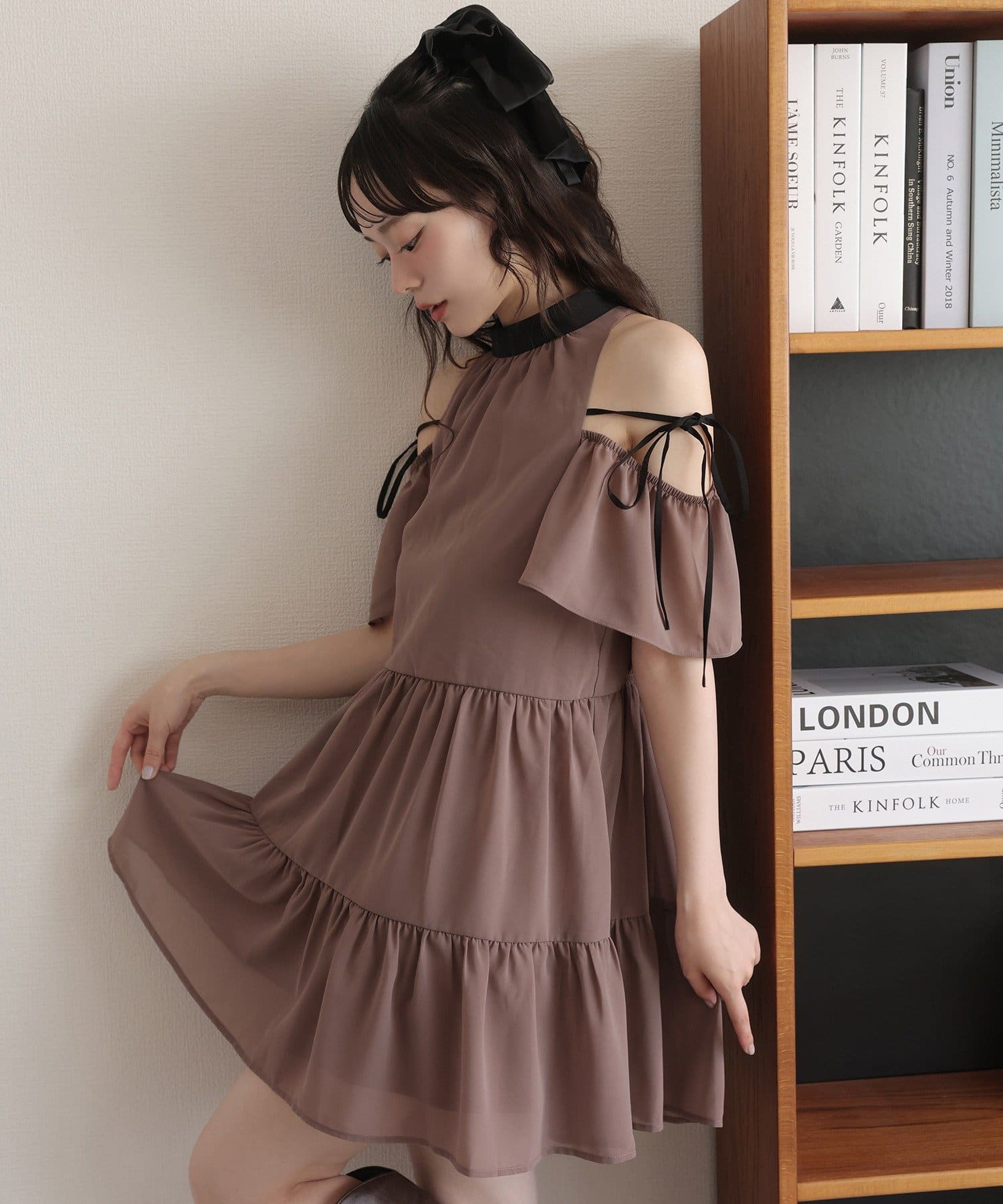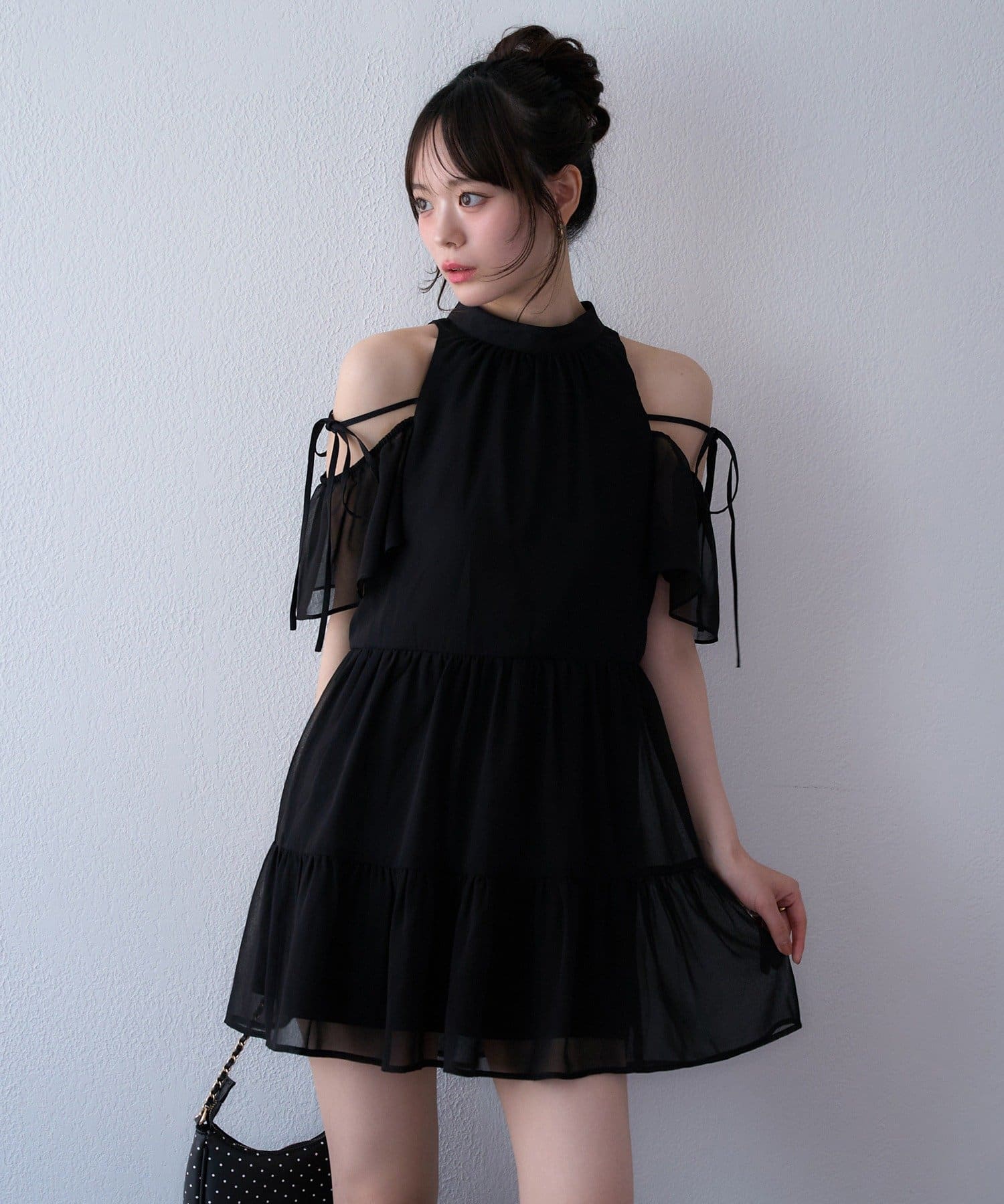 肩にはフリルを施し、フェミニンさをプラスしたデザインに仕上げました。