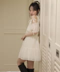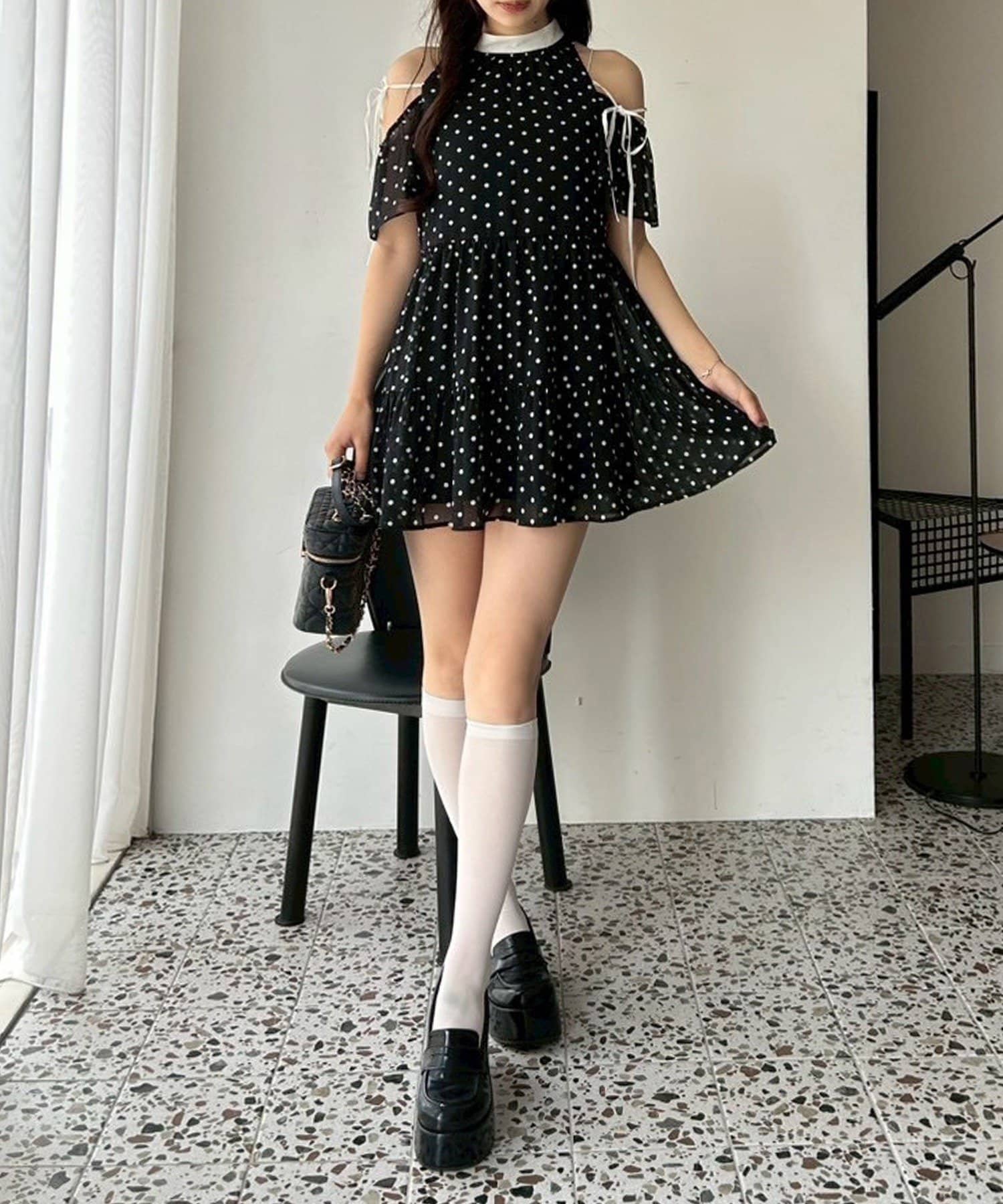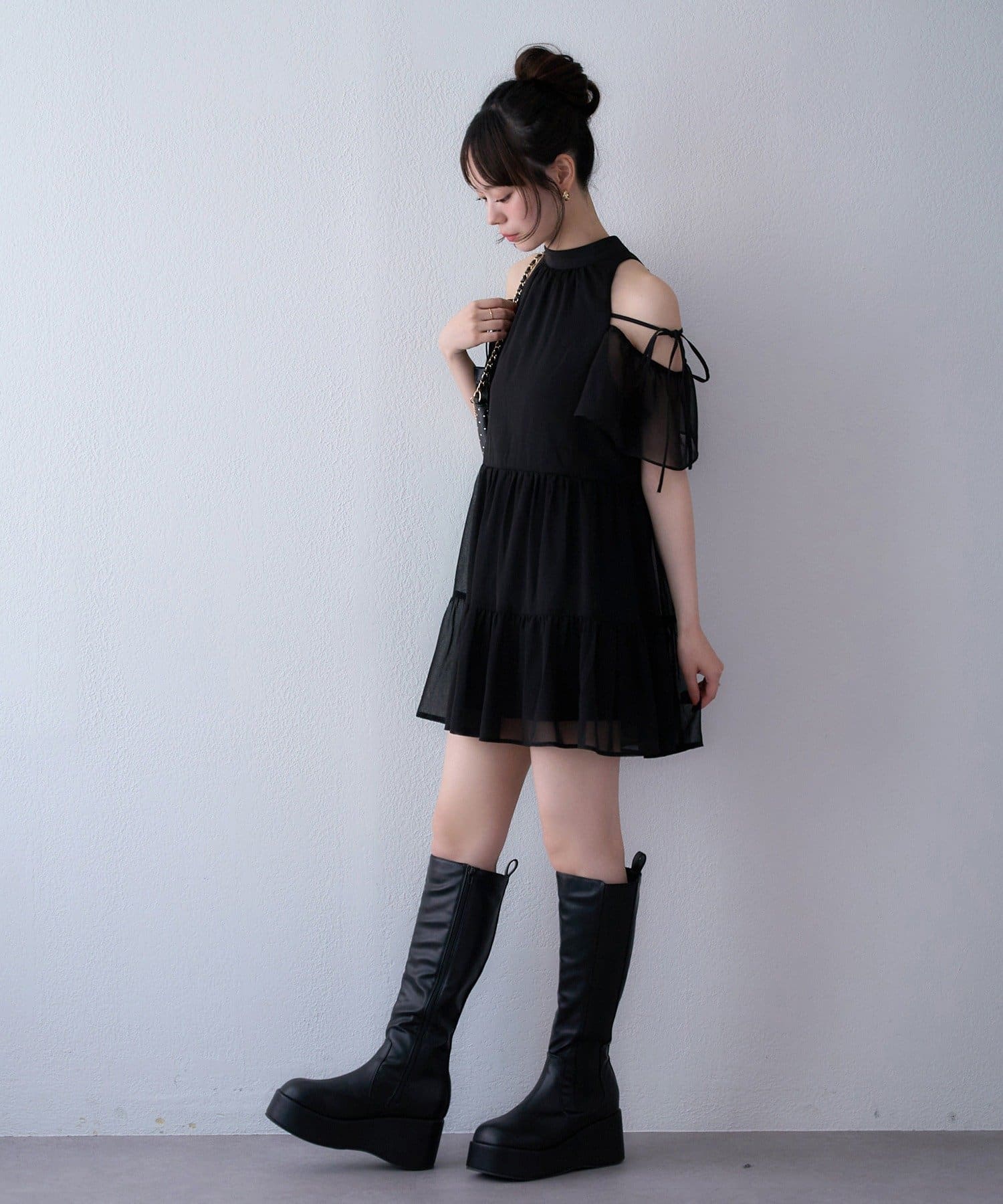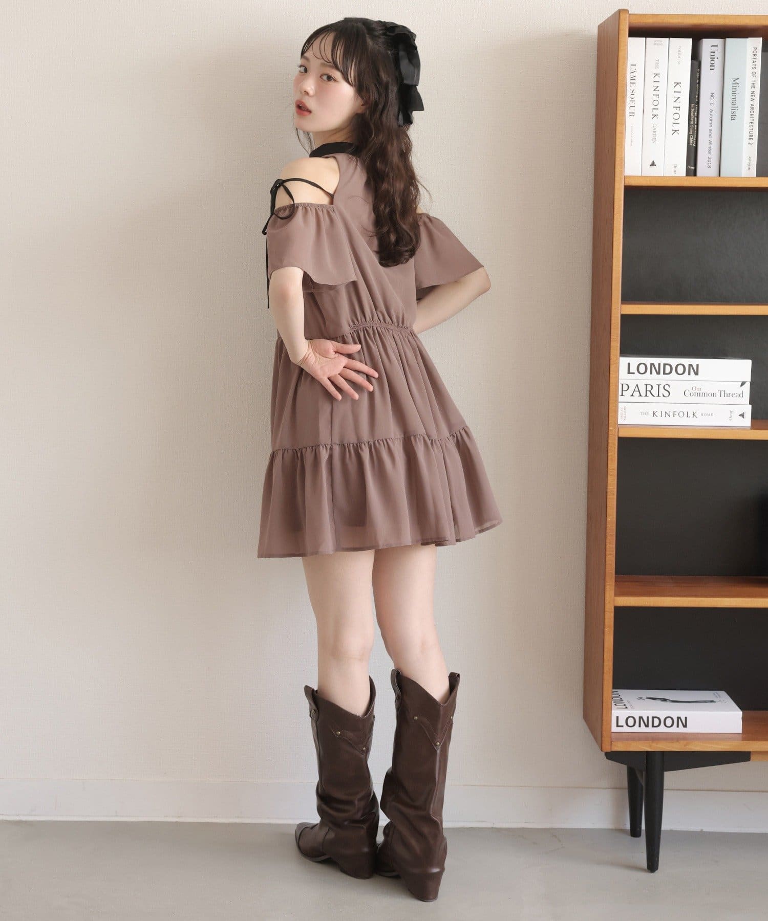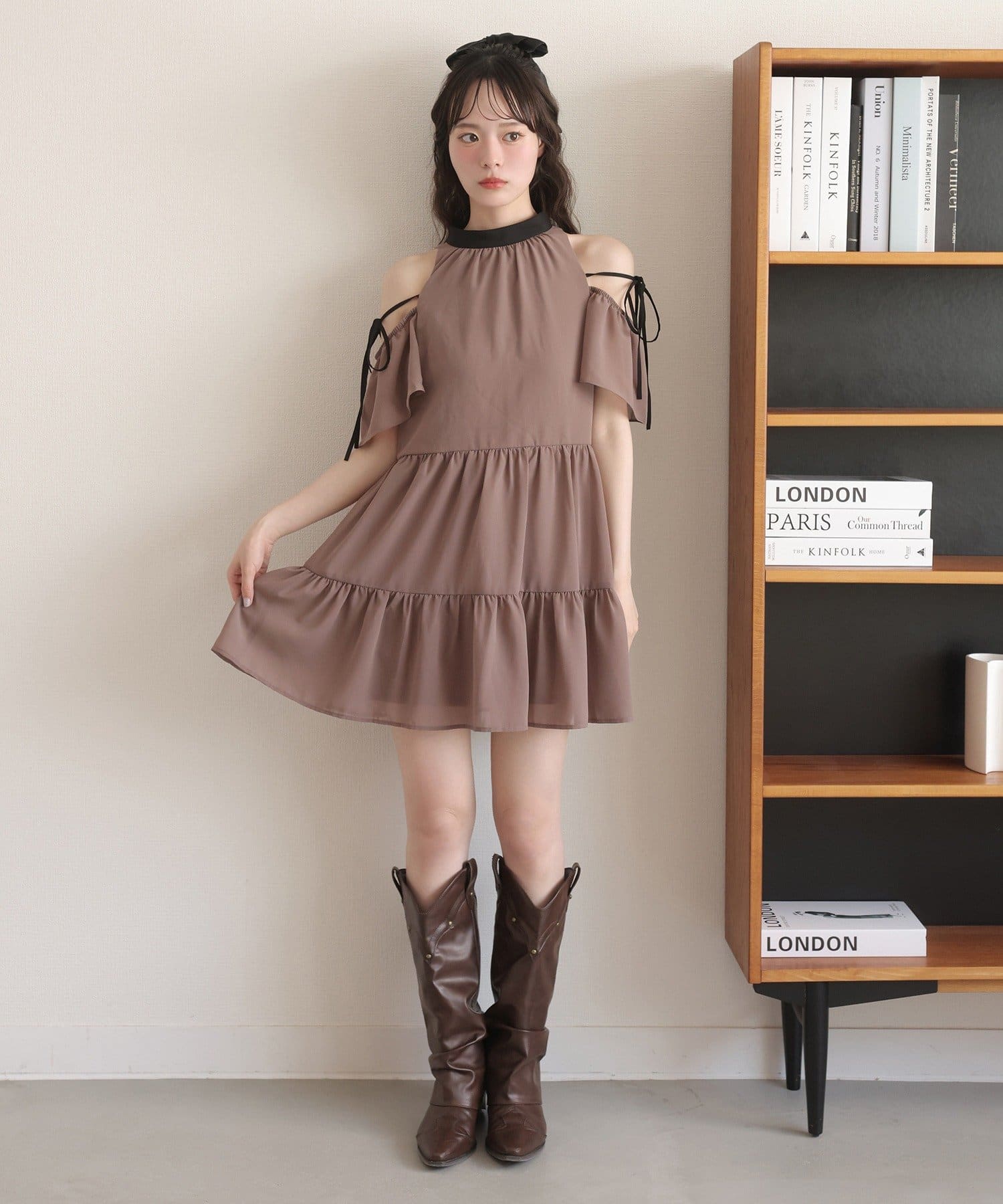 肩にはフリルを施し、フェミニンさをプラスしたデザインに仕上げました。