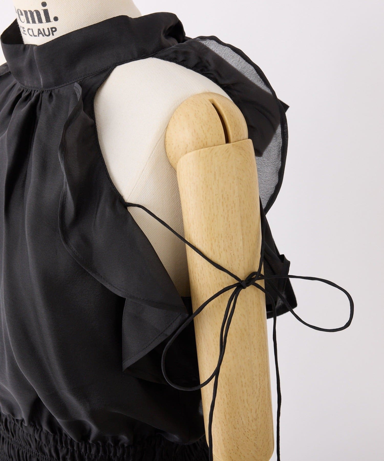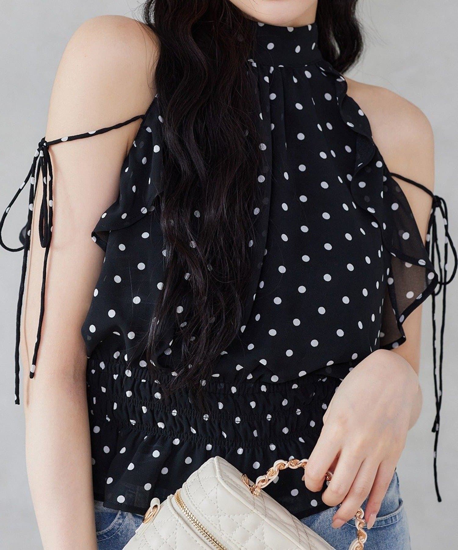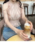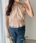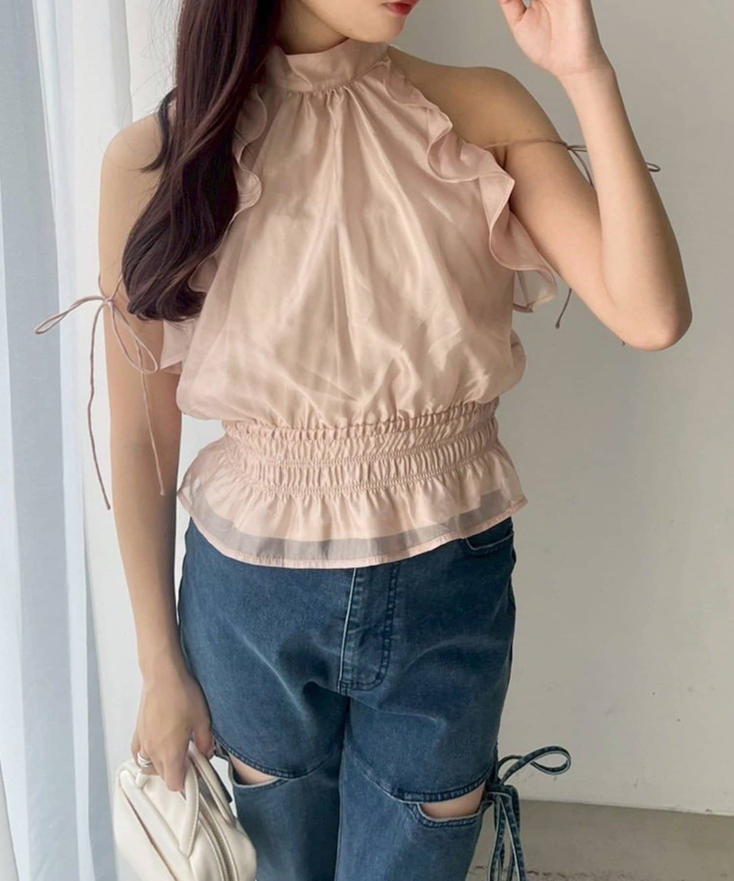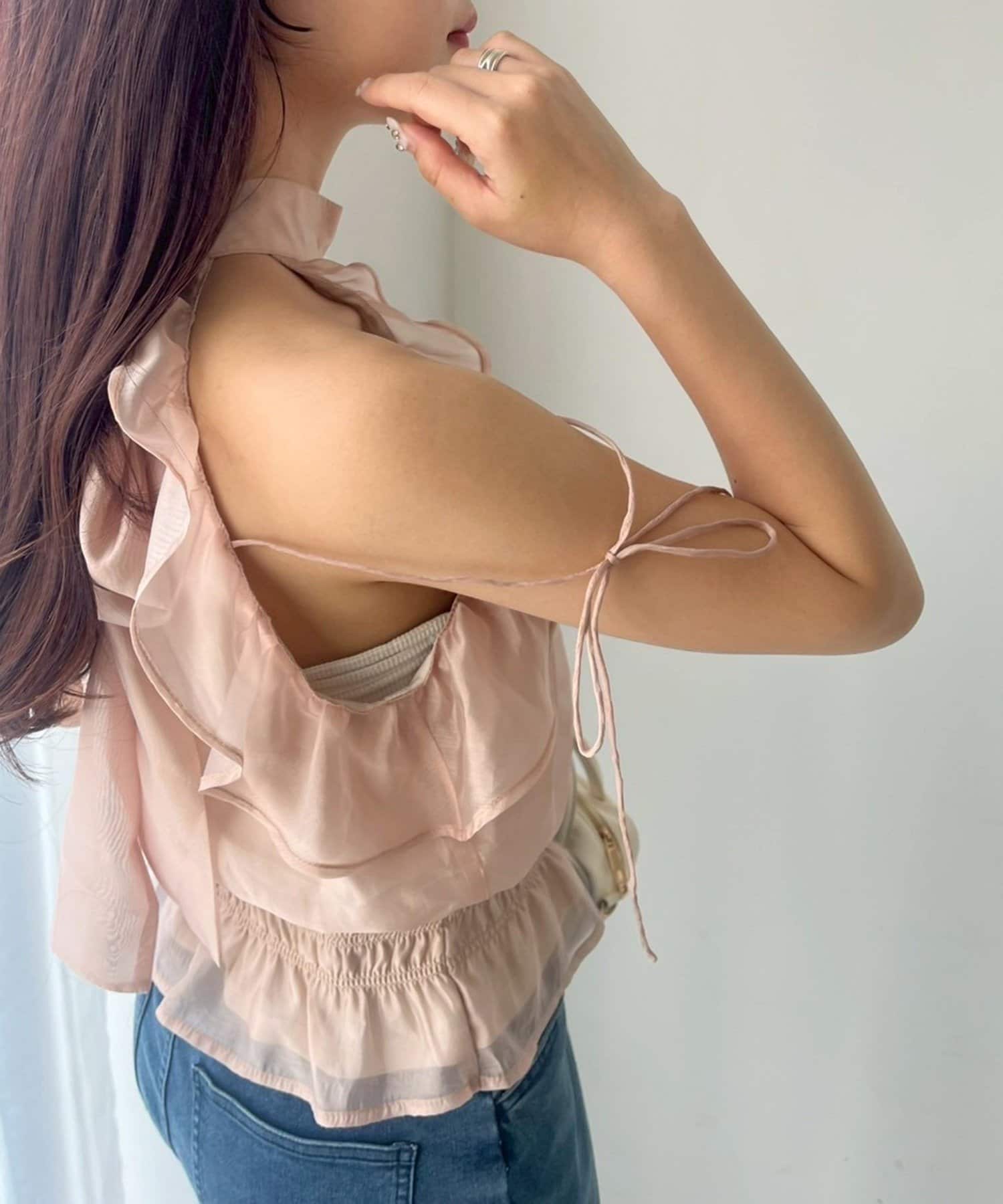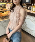 可愛らしさとフェミニンな印象を与えるノースリーブブラウス。