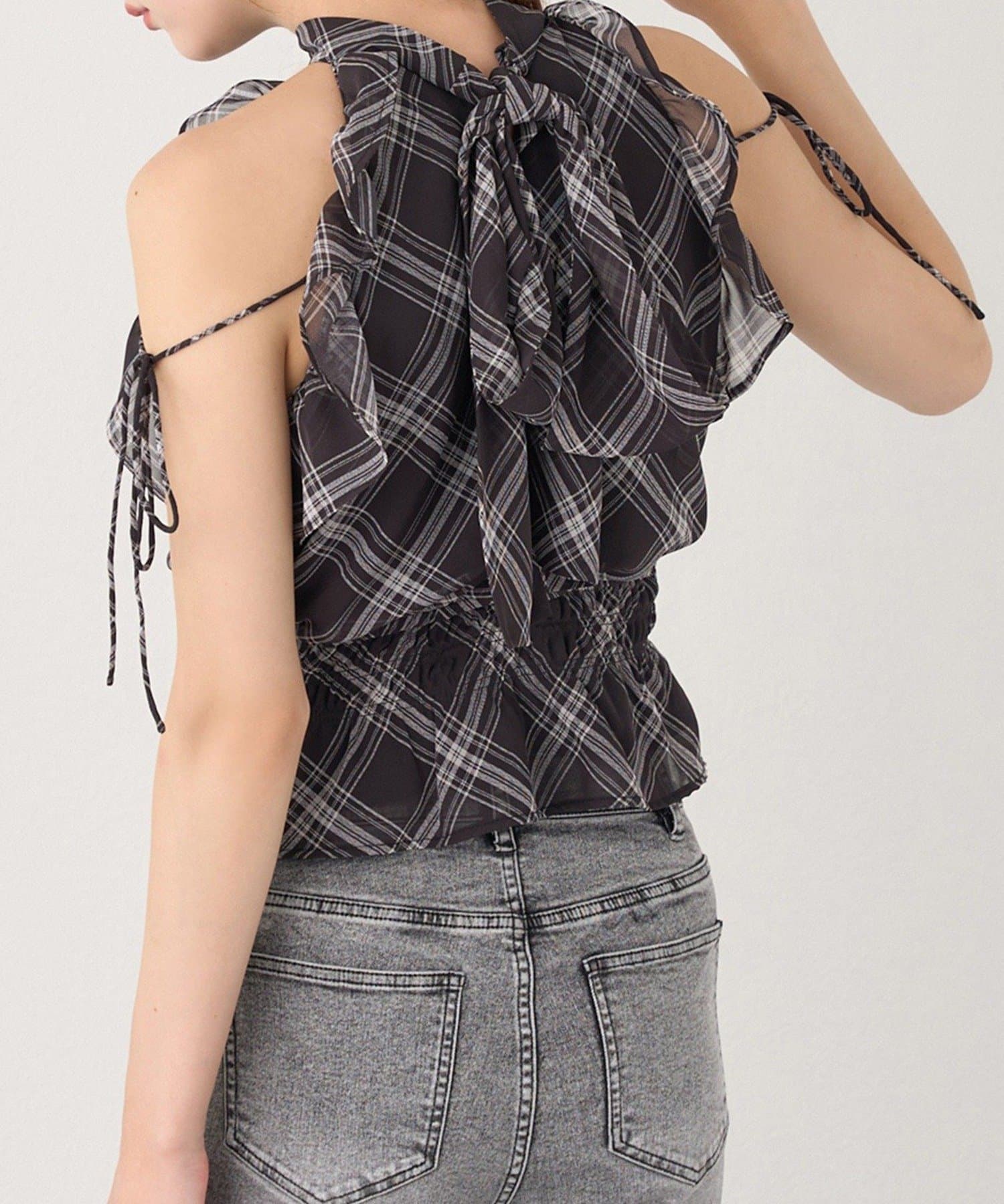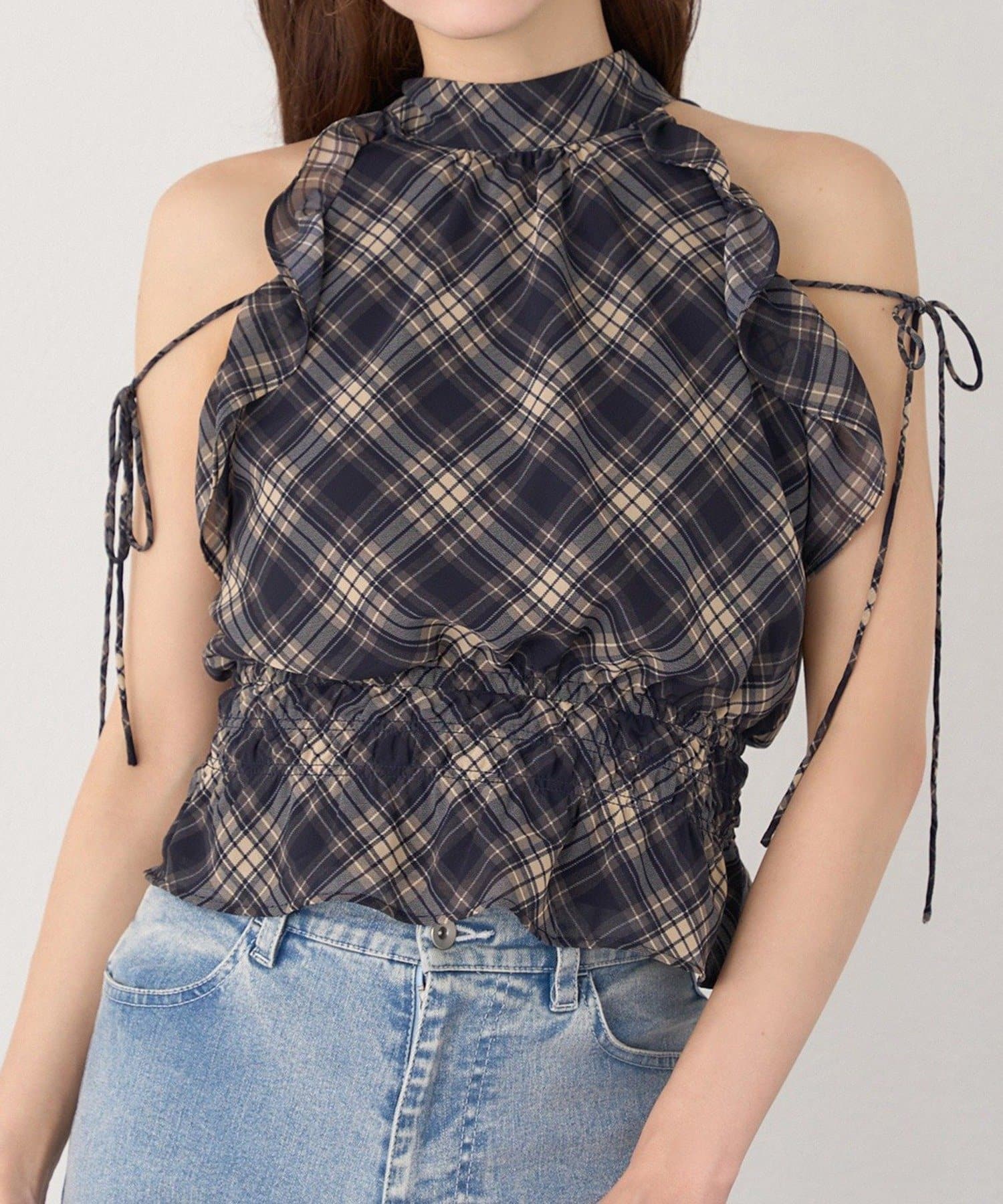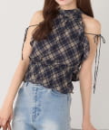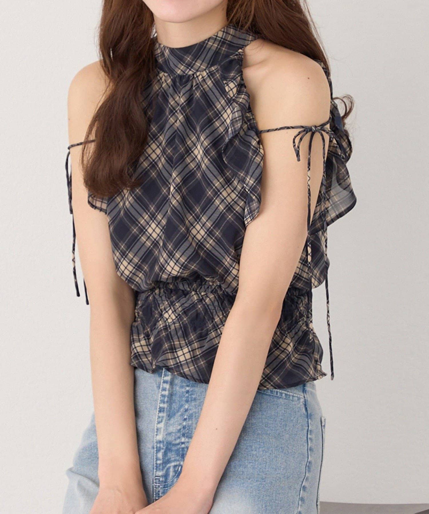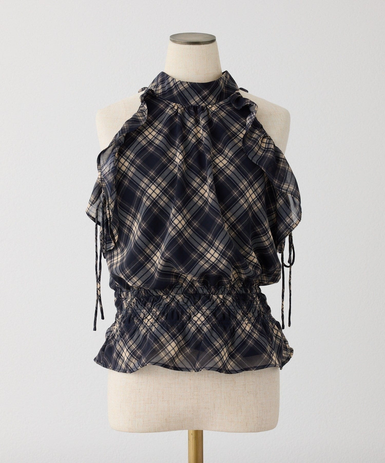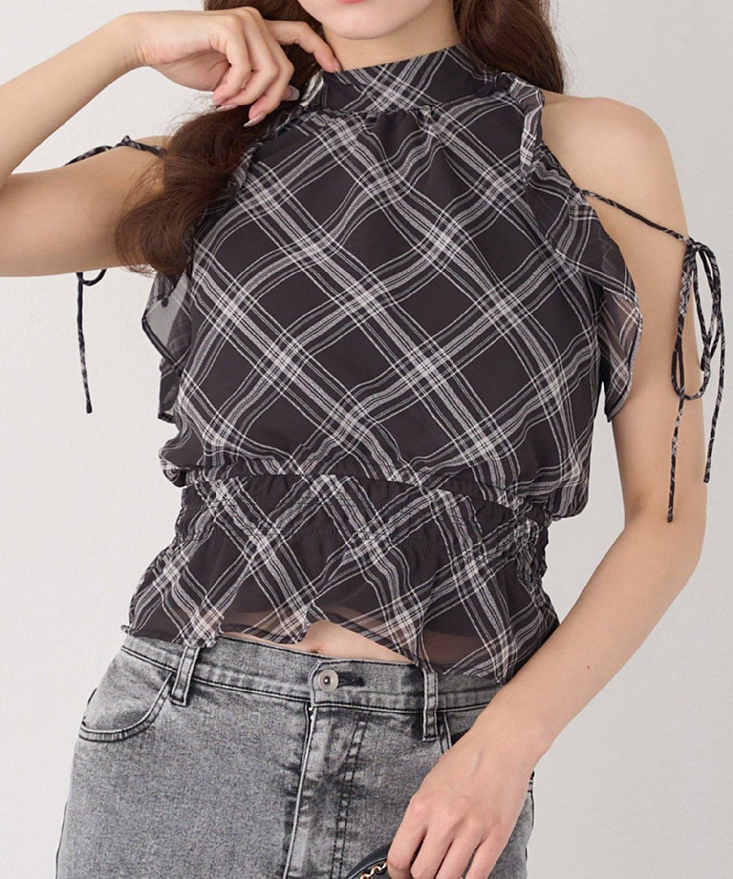 可愛らしさとフェミニンな印象を与えるノースリーブブラウス。