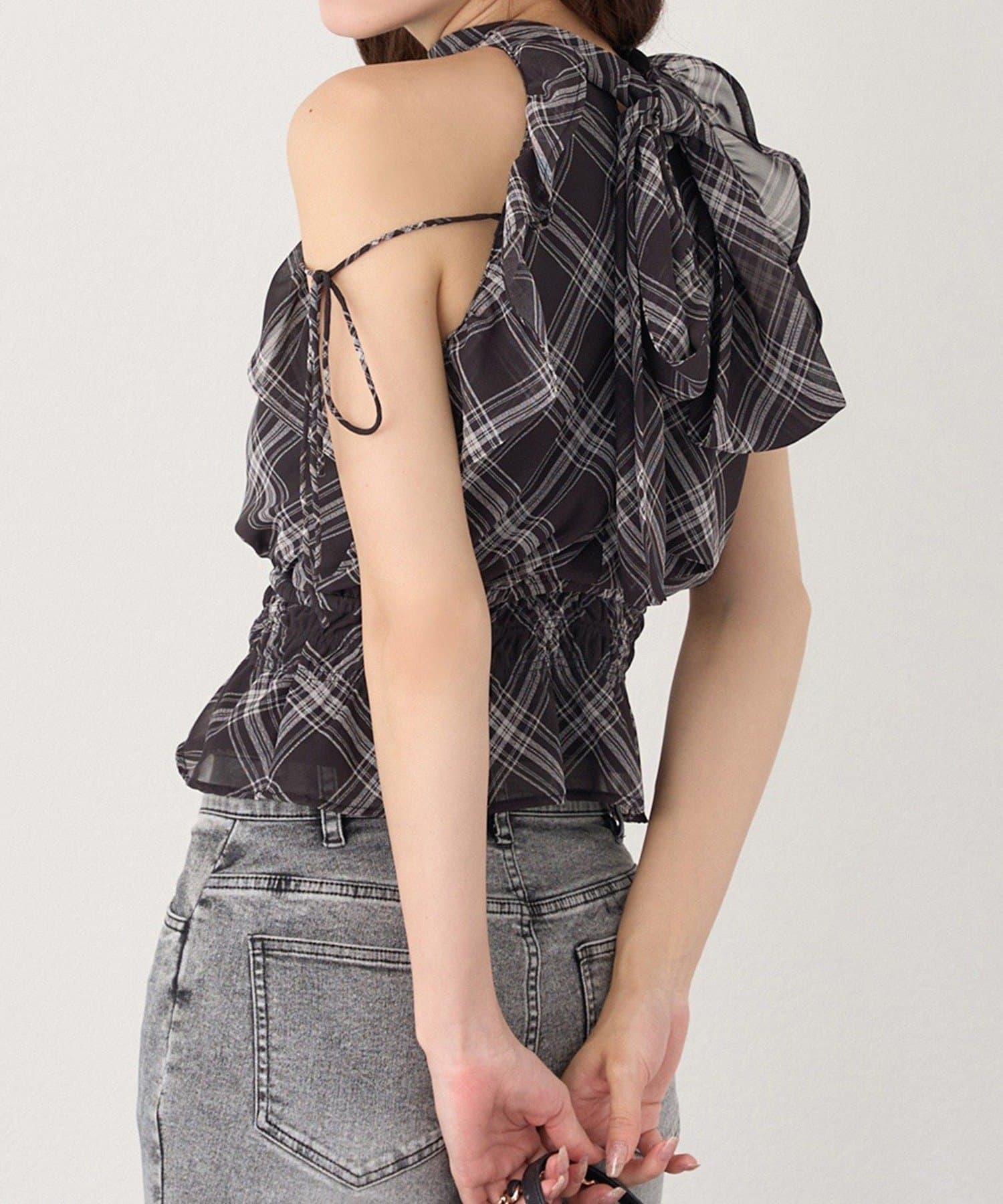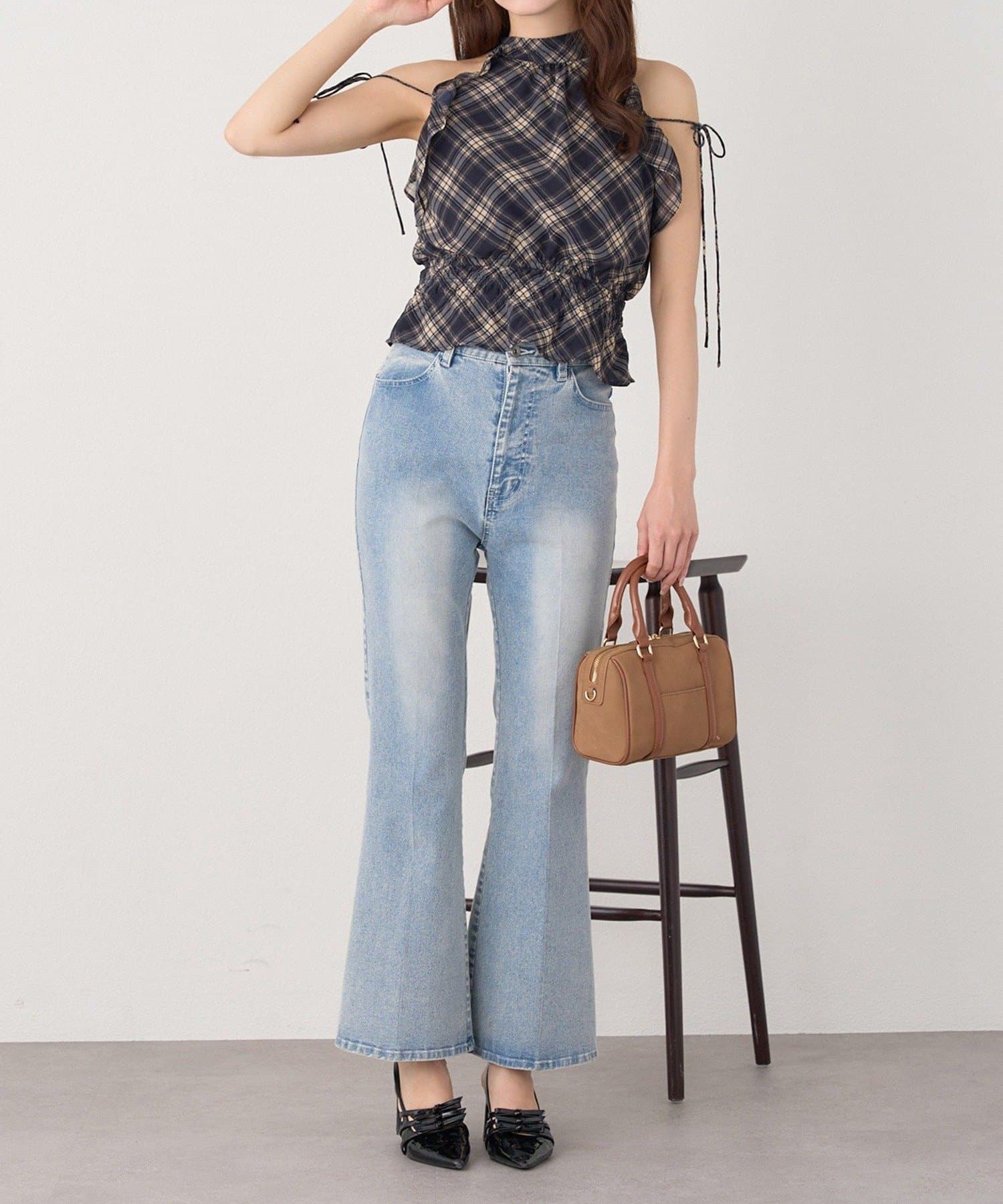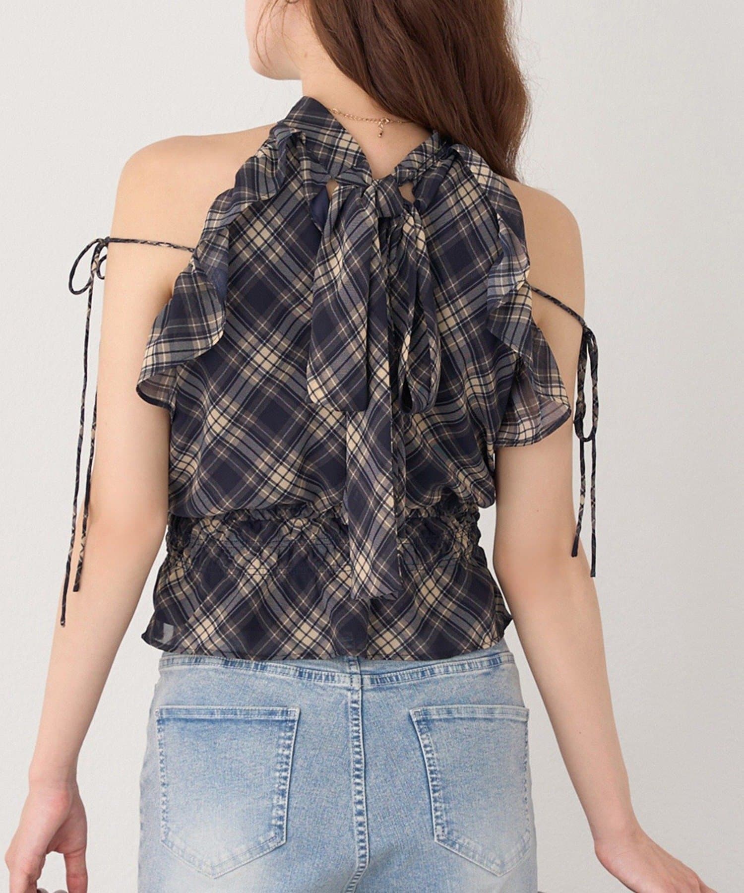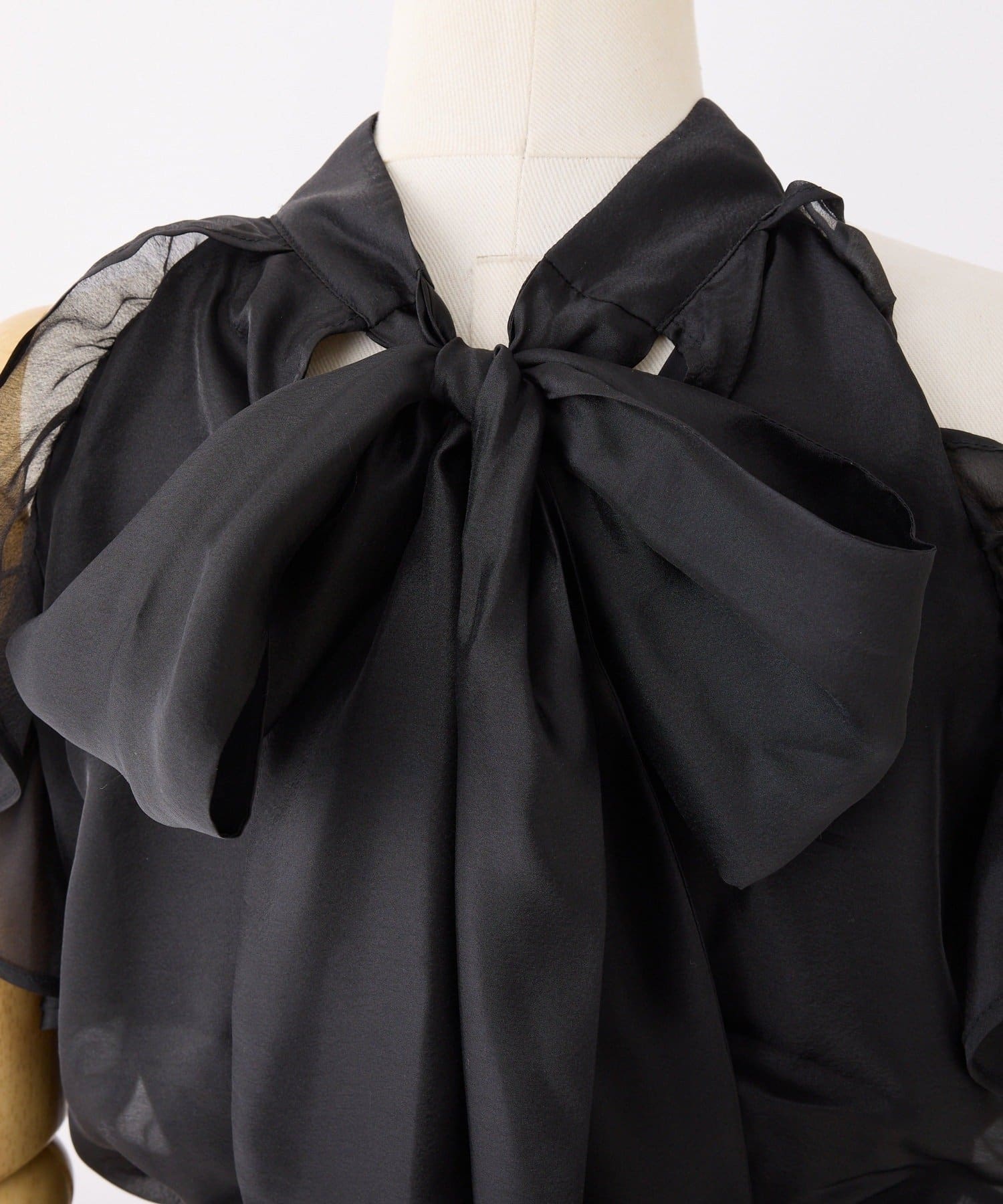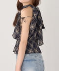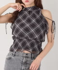 可愛らしさとフェミニンな印象を与えるノースリーブブラウス。