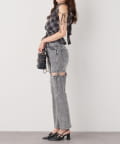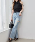 デニムパンツを合わせれば韓国風トレンドスタイルが完成します。