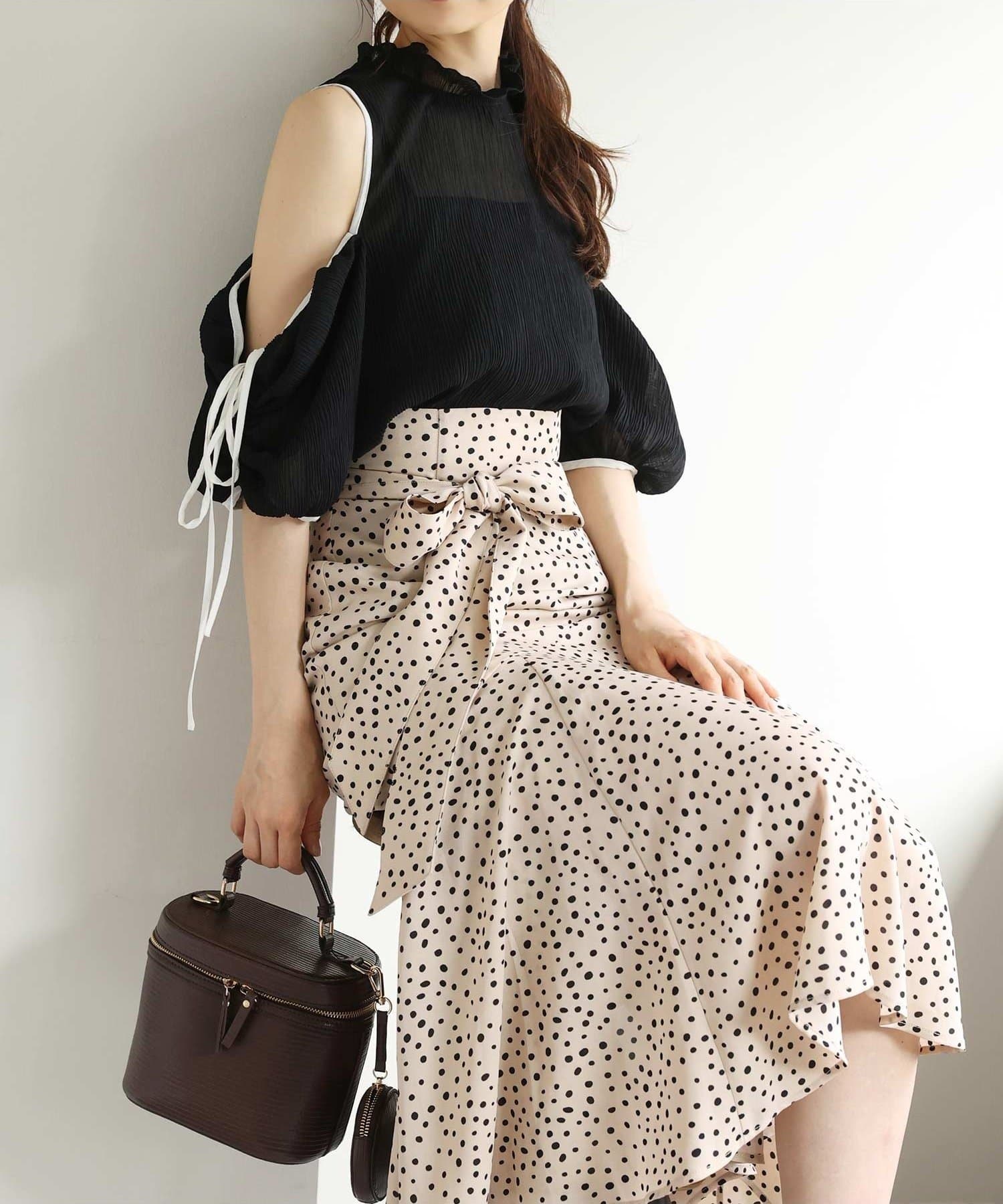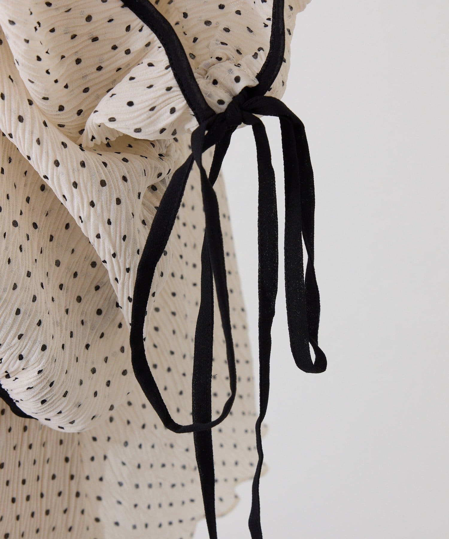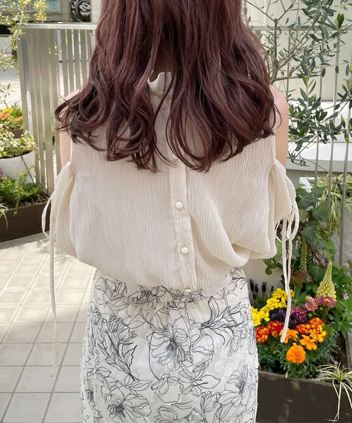 素材はとろみ感のある柔らかな素材にプリーツ加工をあしらい華やかな印象に。
