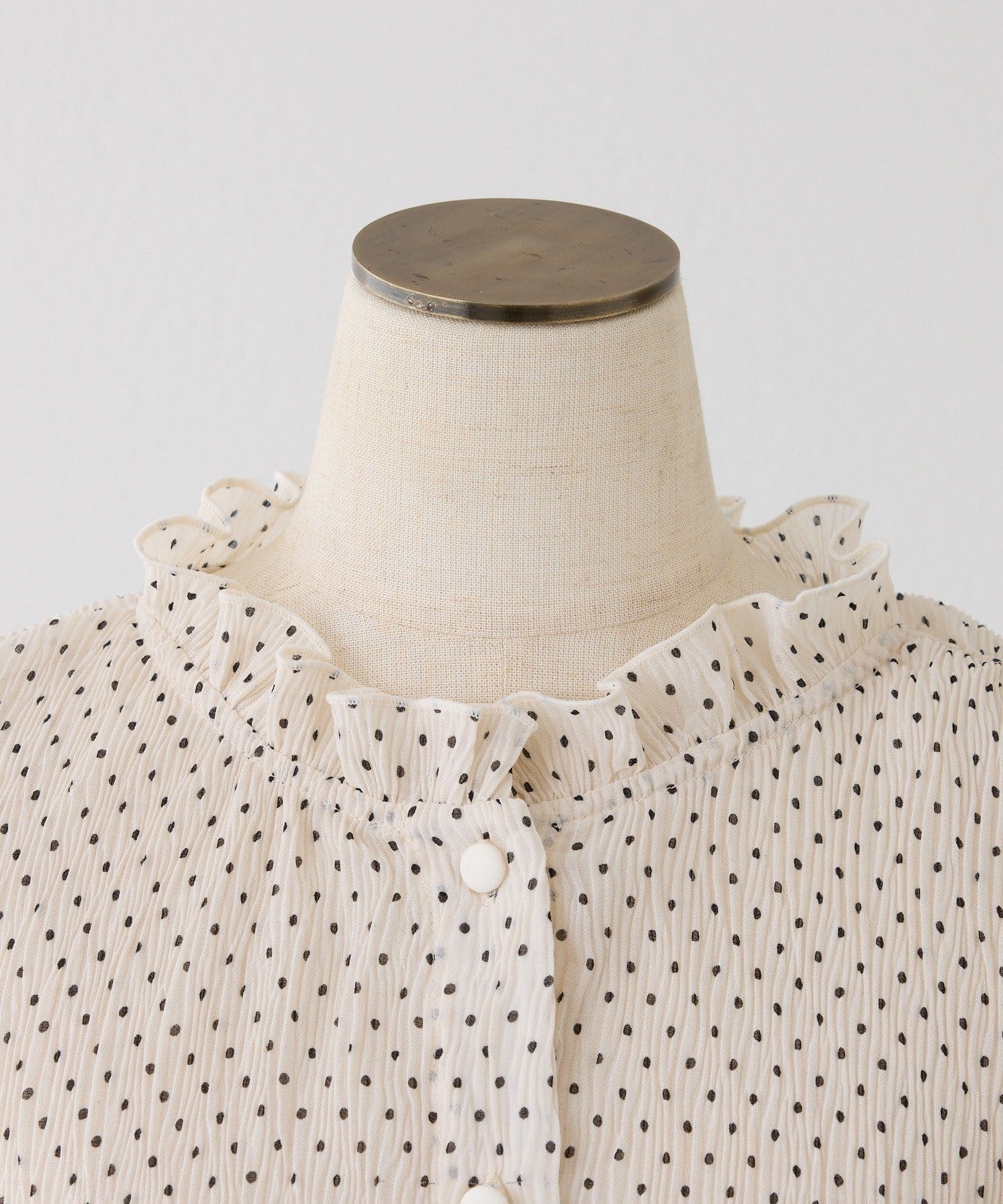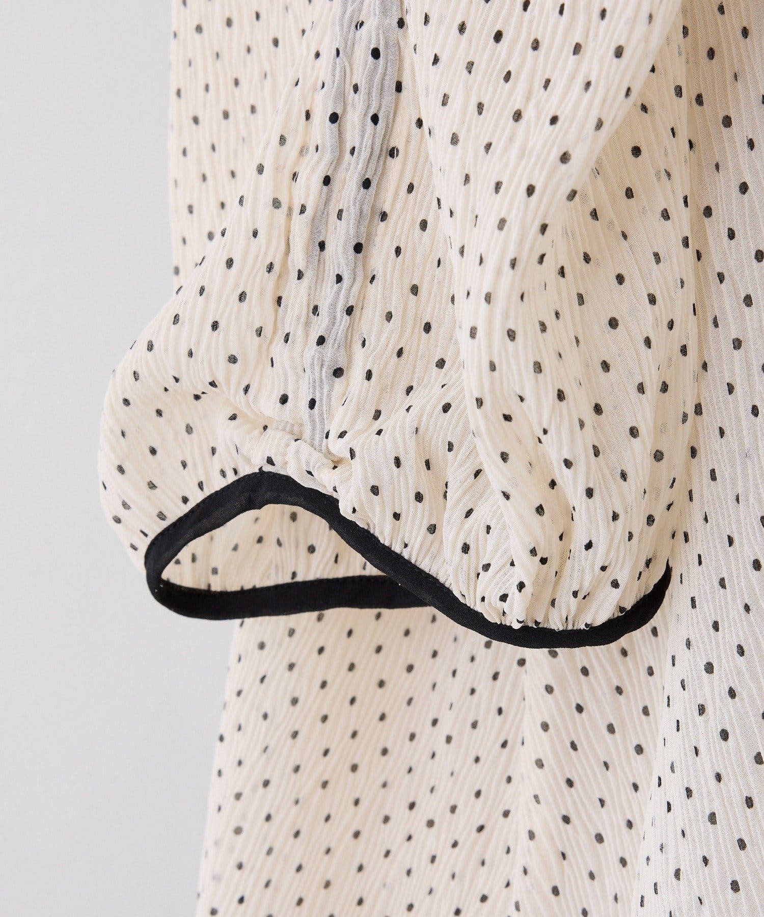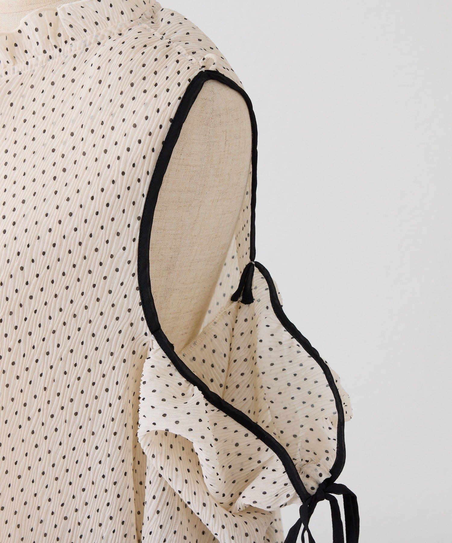 素材はとろみ感のある柔らかな素材にプリーツ加工をあしらい華やかな印象に。