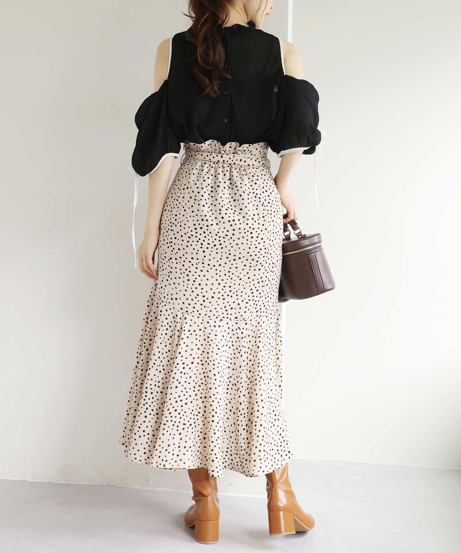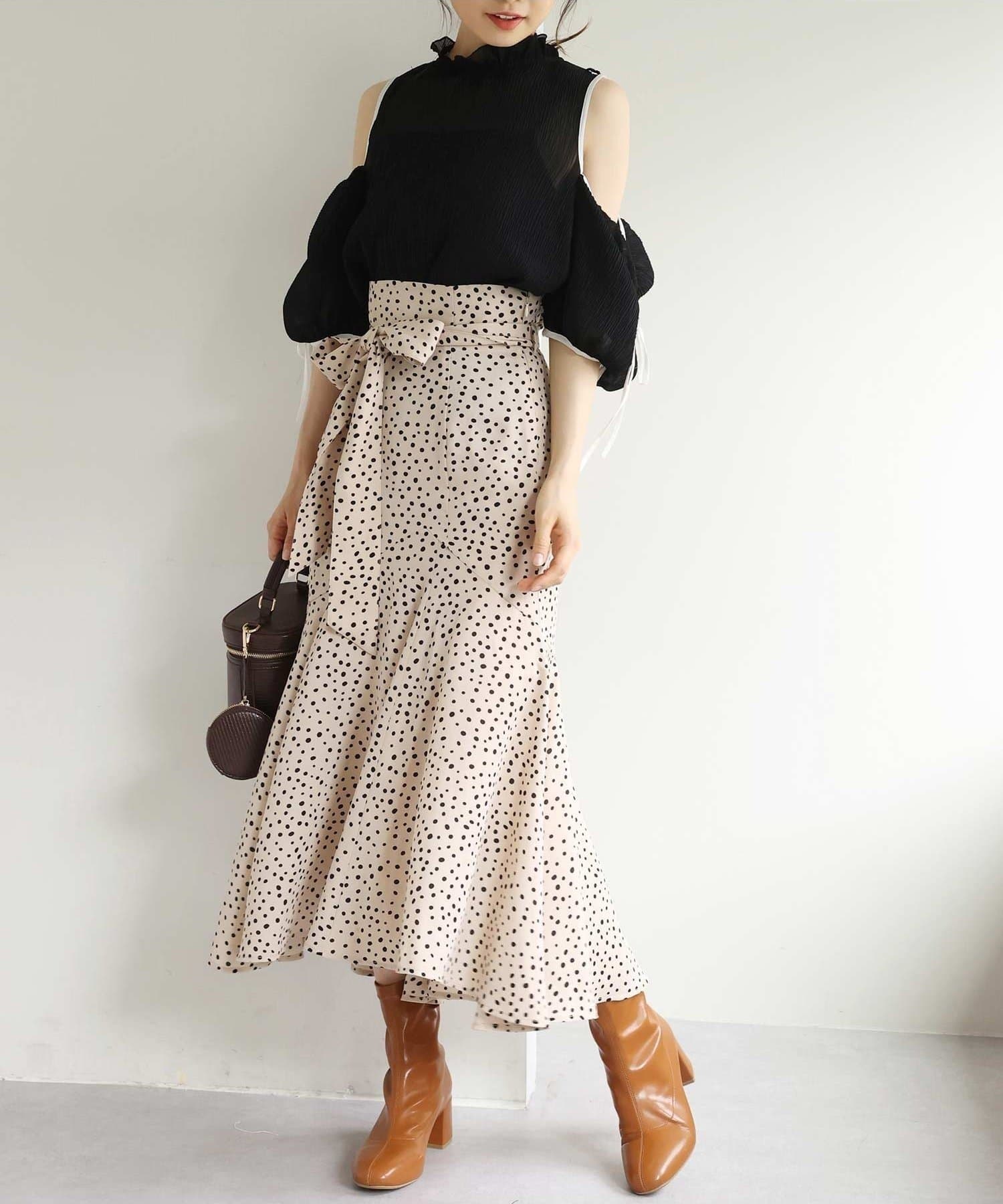 マーメイドスカートやフレアスカートにタックインして着こなして大人レディー印象に。