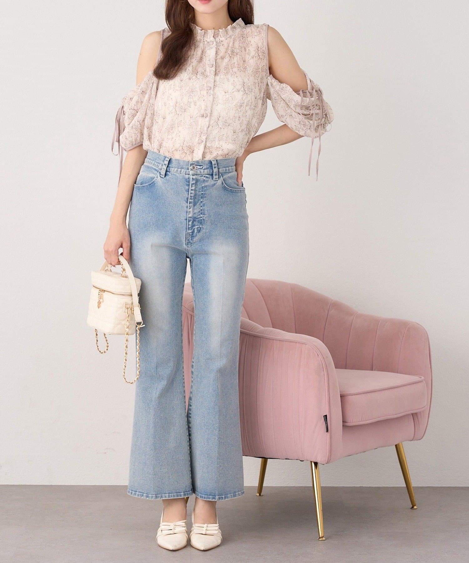 上品な印象になるブラウスなので、ロングボトムとの相性は◎