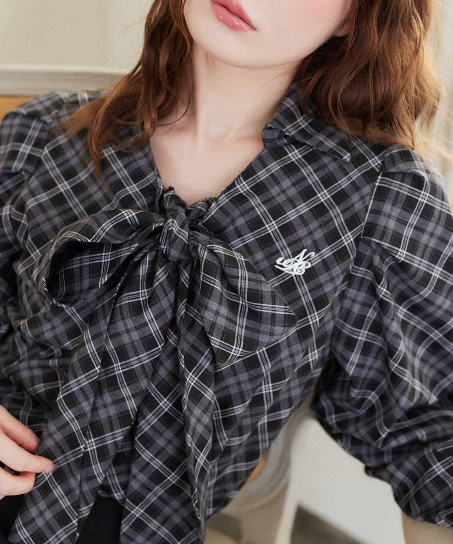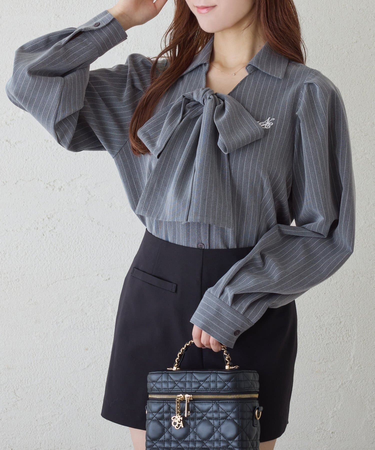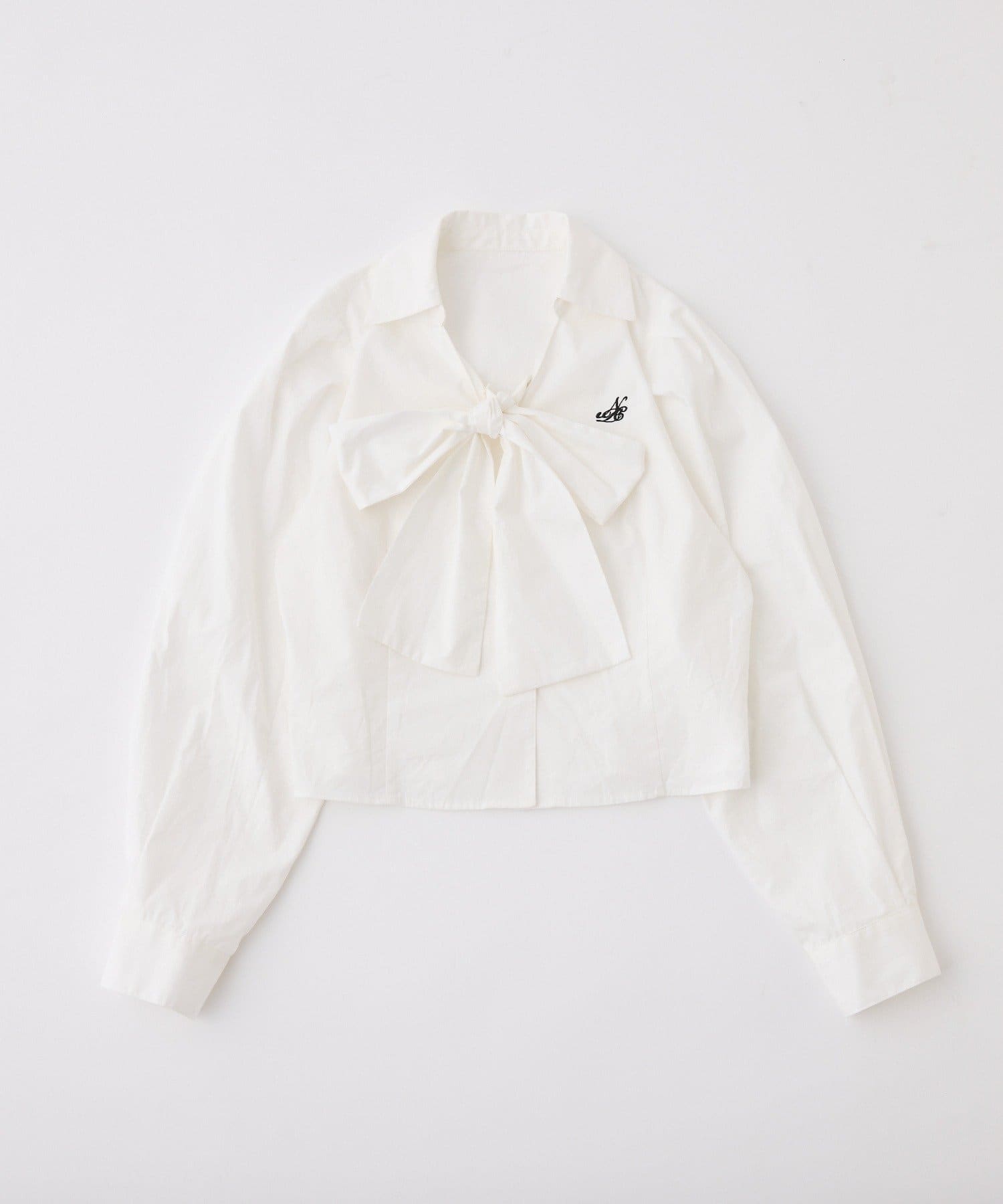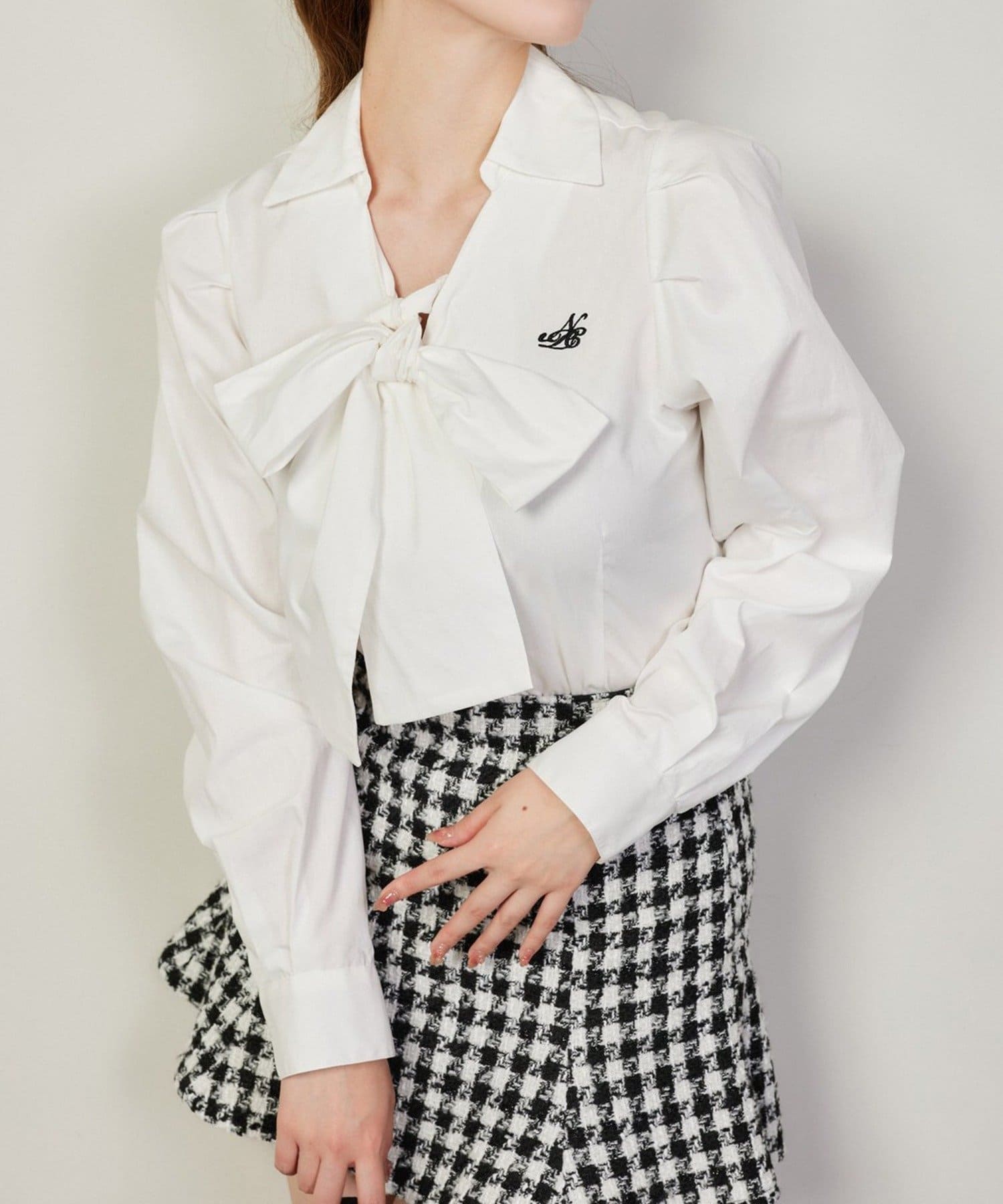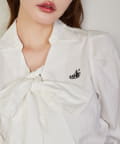 胸元の刺しゅうと大きなリボンがポイントのブラウス