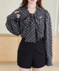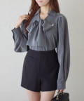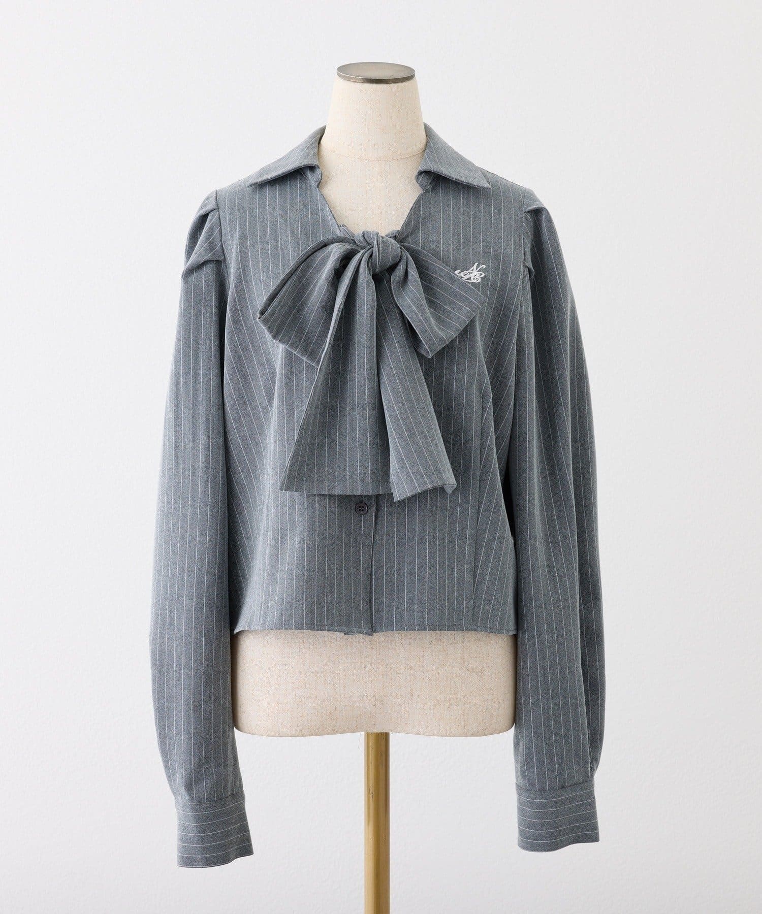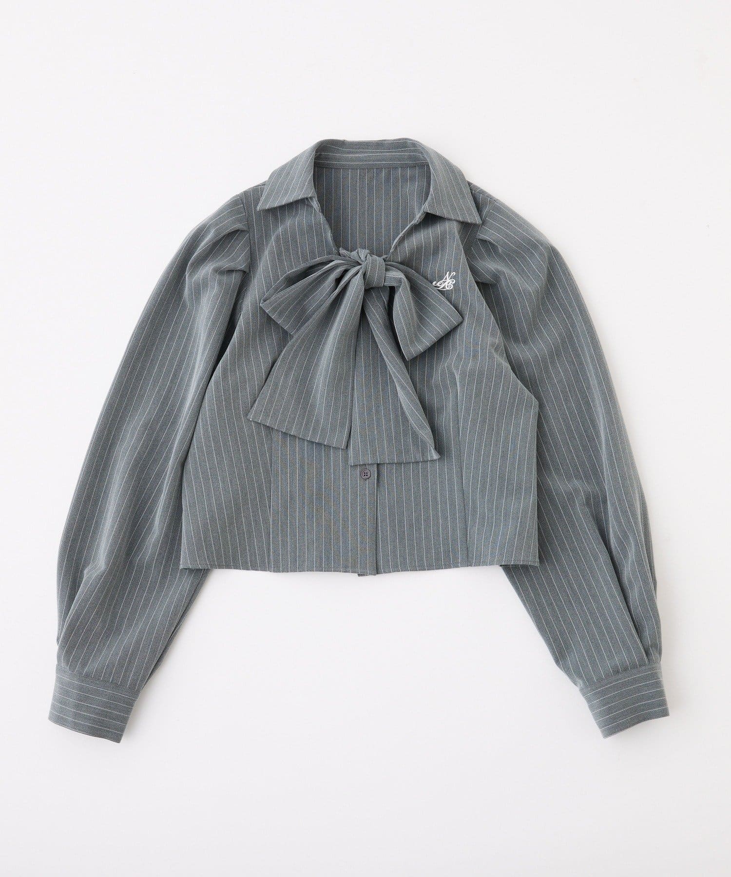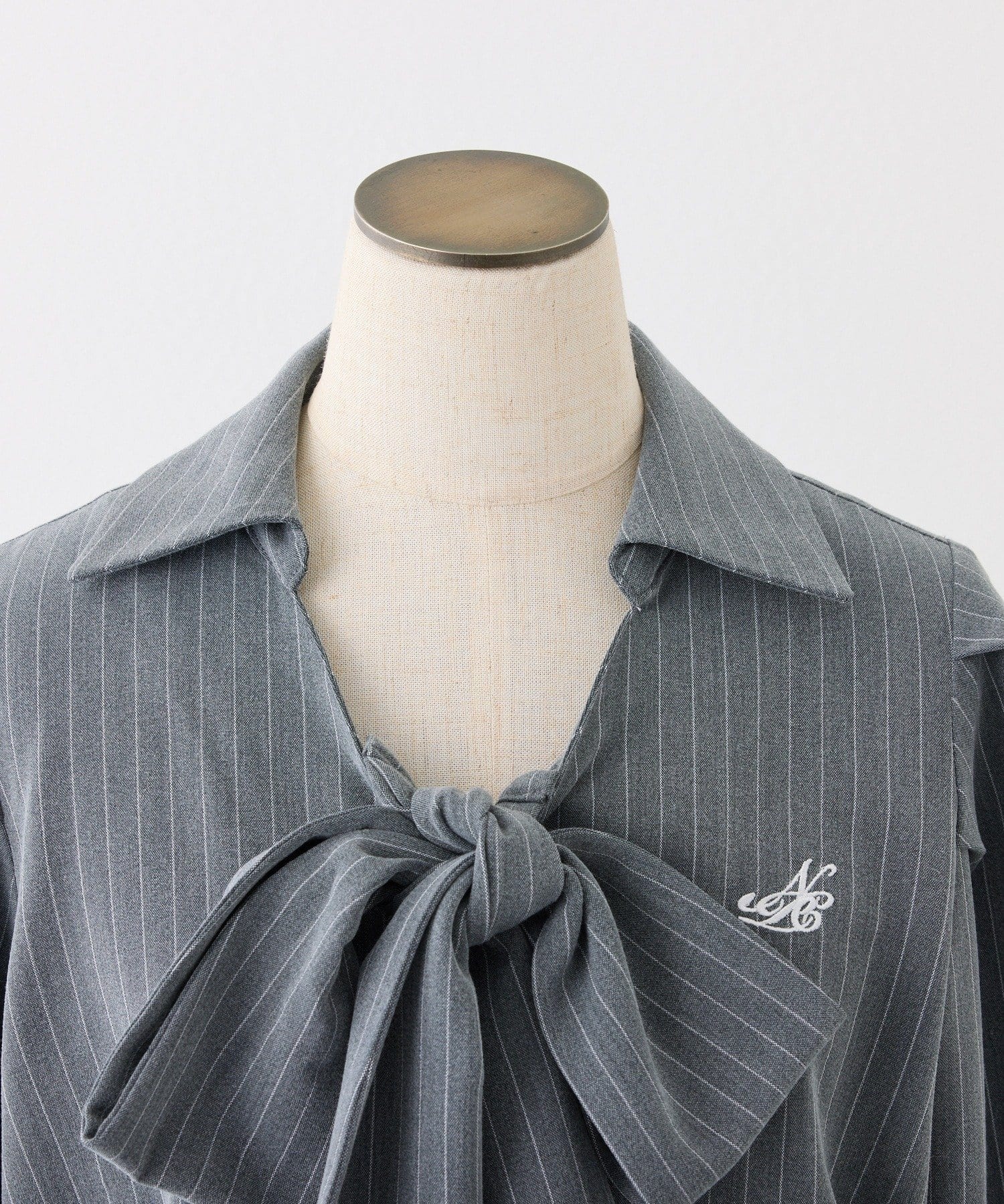 胸元の刺しゅうと大きなリボンがポイントのブラウス