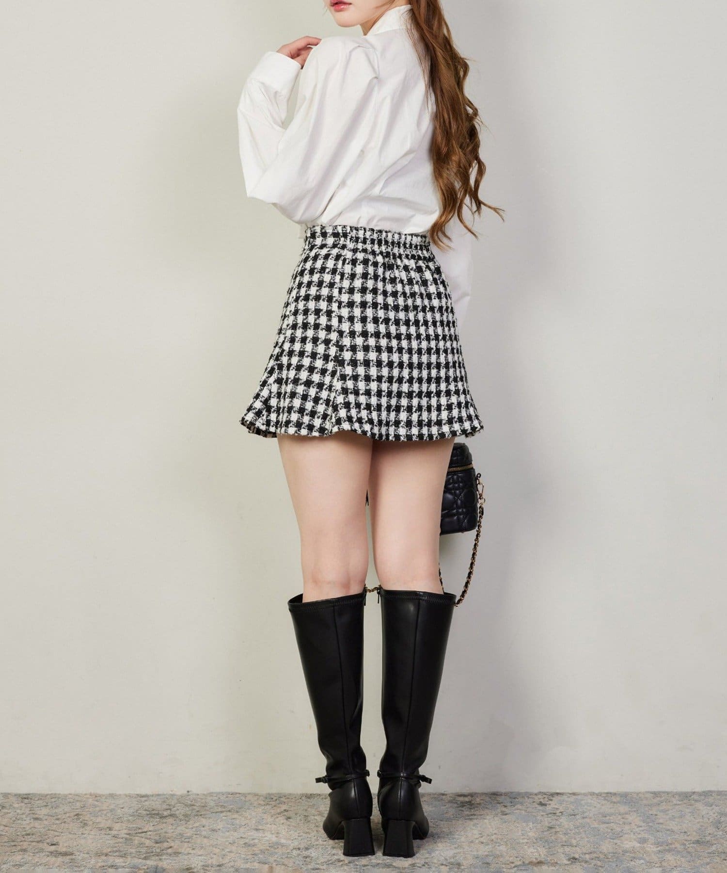 甘め好きな方はミニボトムにハイソックス合わせが今年らしい組み合わせでオススメです。