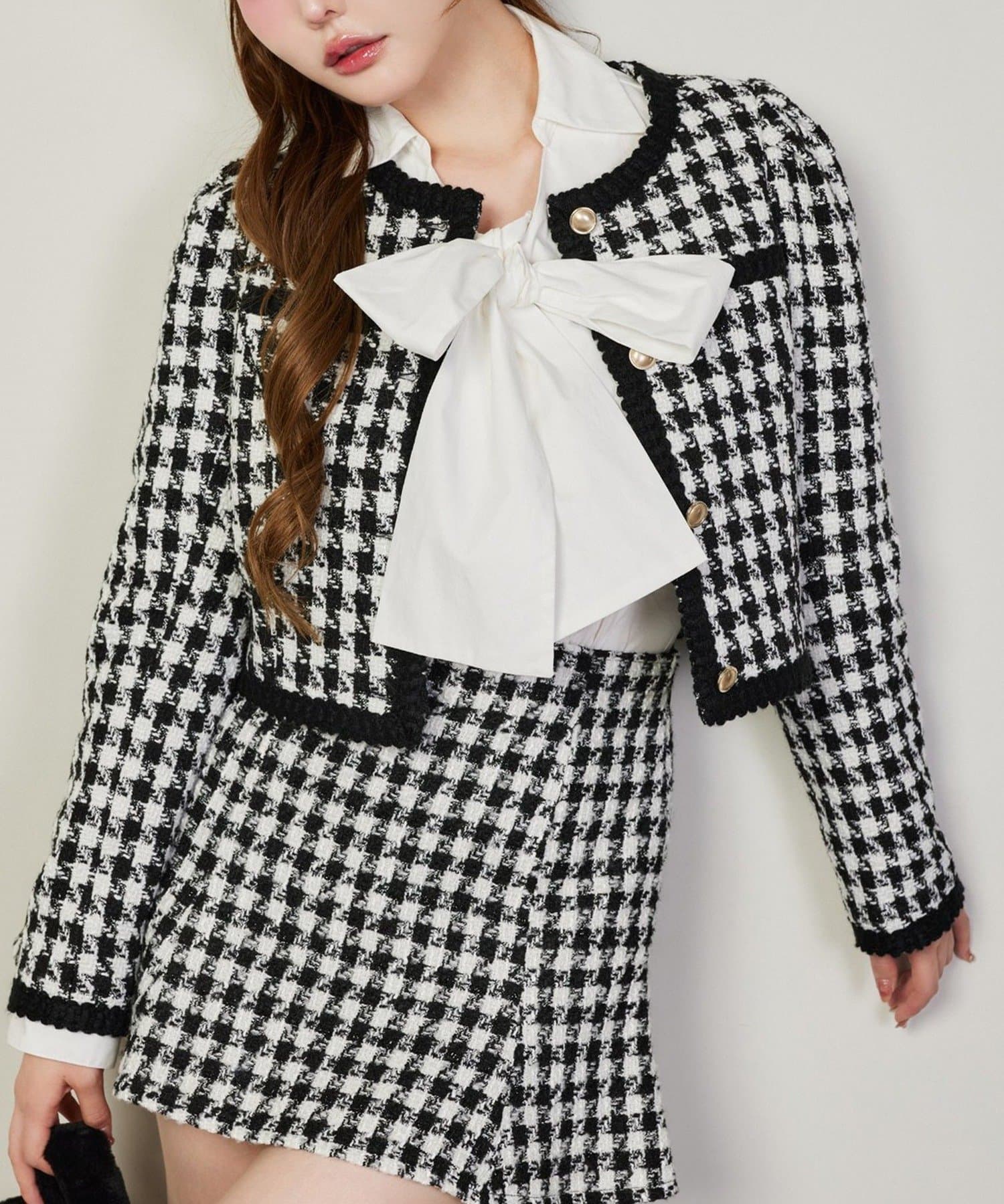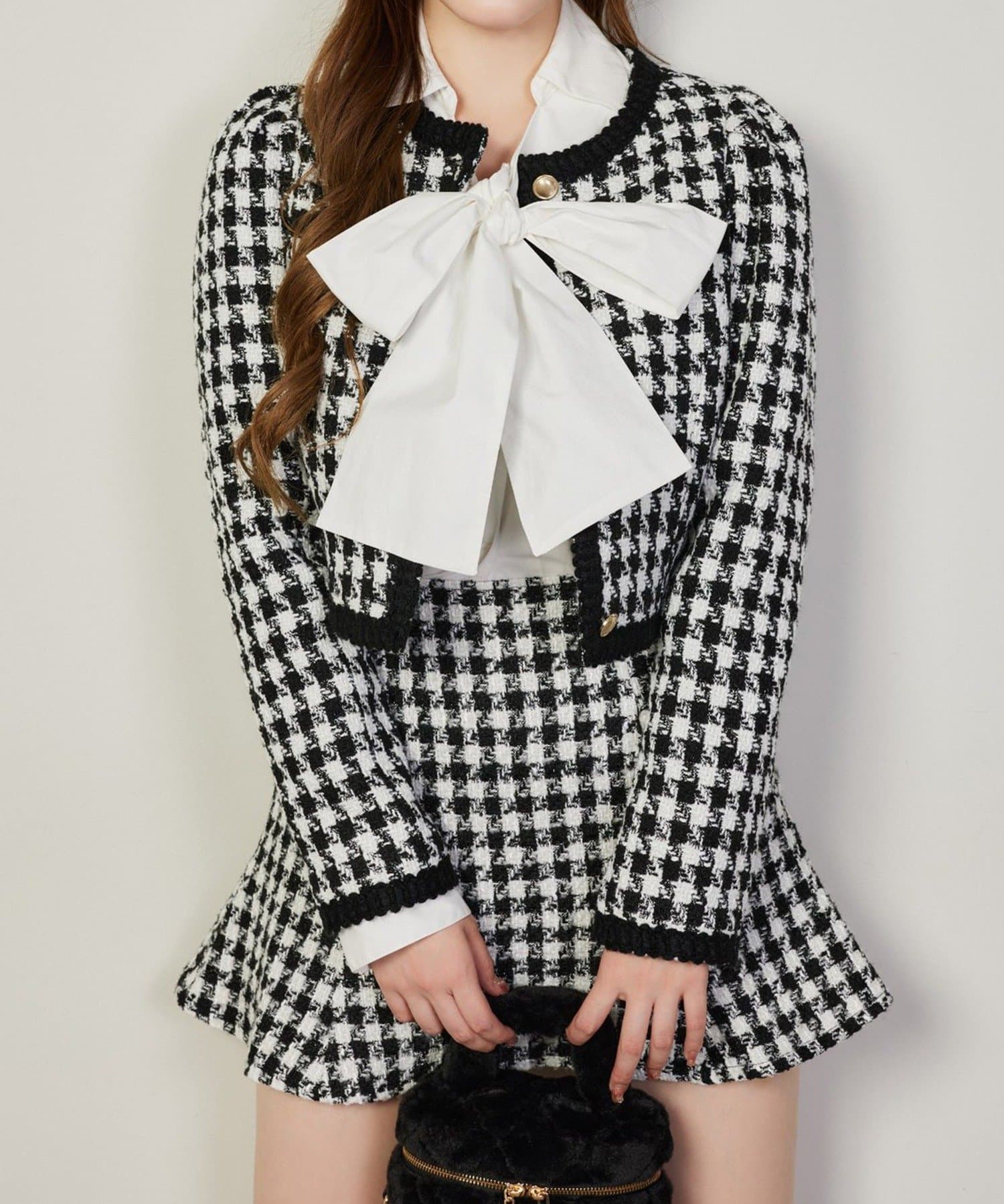 リボンは取り外しが出来るので、着方によって様々な印象も与えられます。