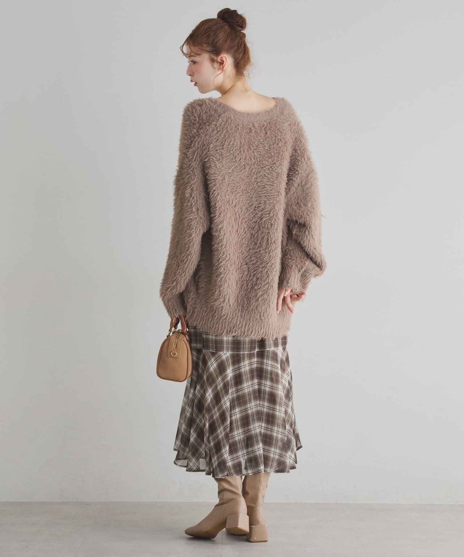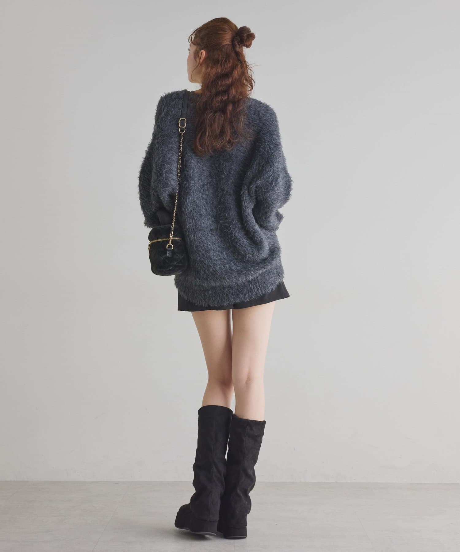 届くの早かったです!シャギーのニットを探していました。店舗で実際にきてみてかわいかったので悩んで購入しました。意外と薄めな素材なので春先まで活躍しそうです。