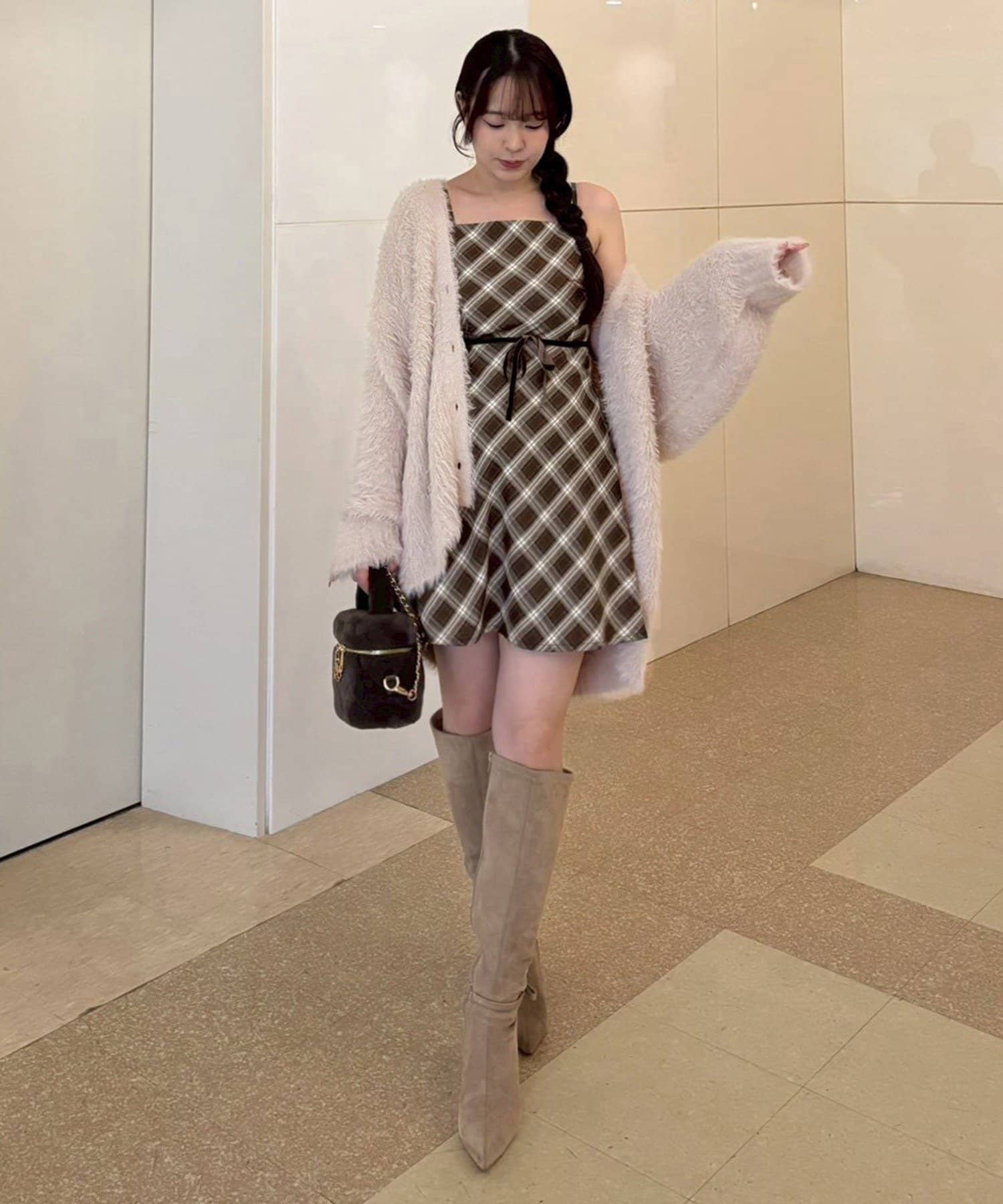 足元はショートブーツ、ロングブーツと合わせたスタイリングがおすすめ。