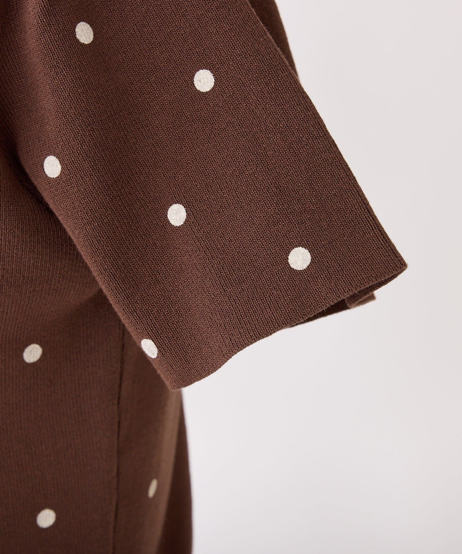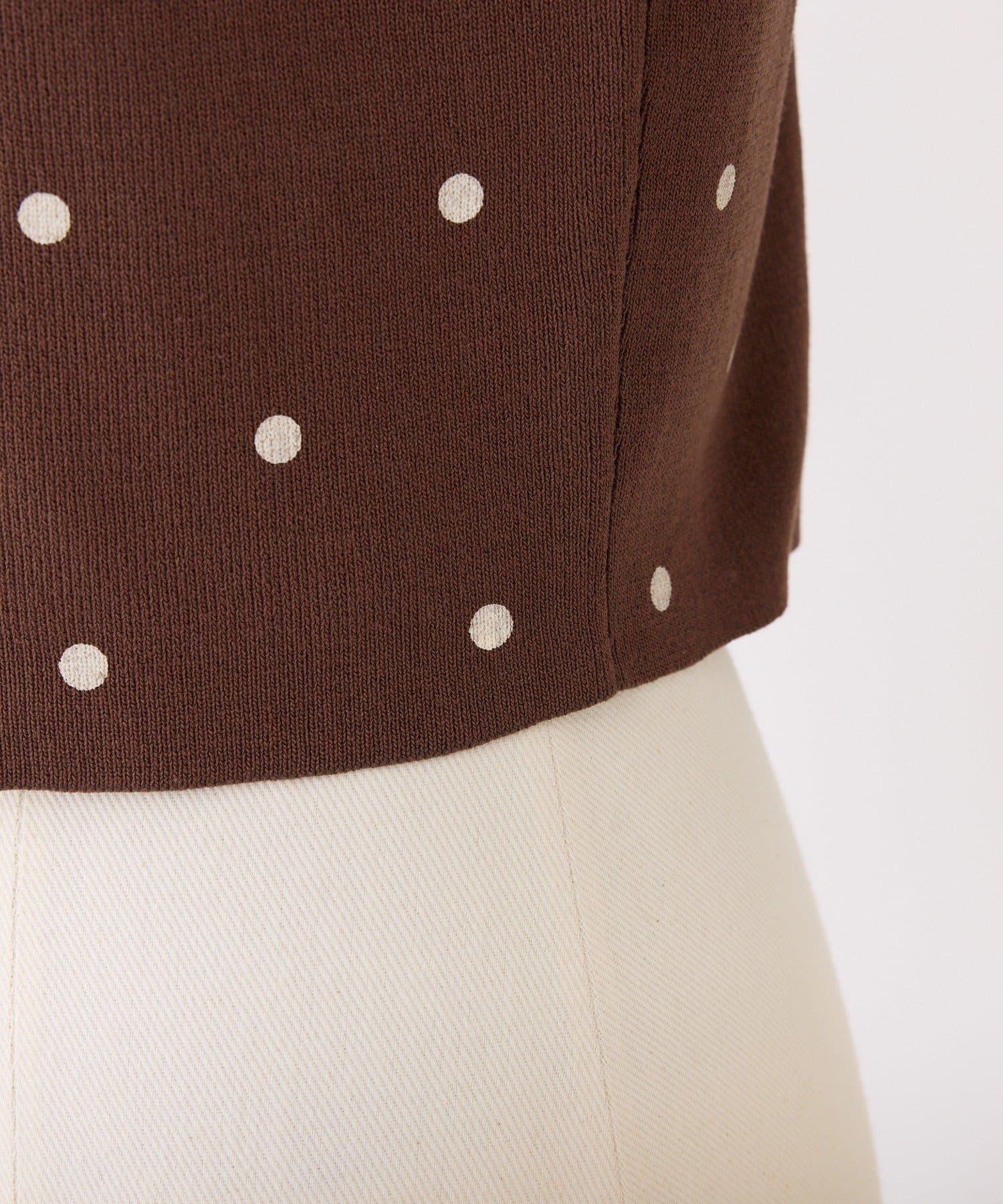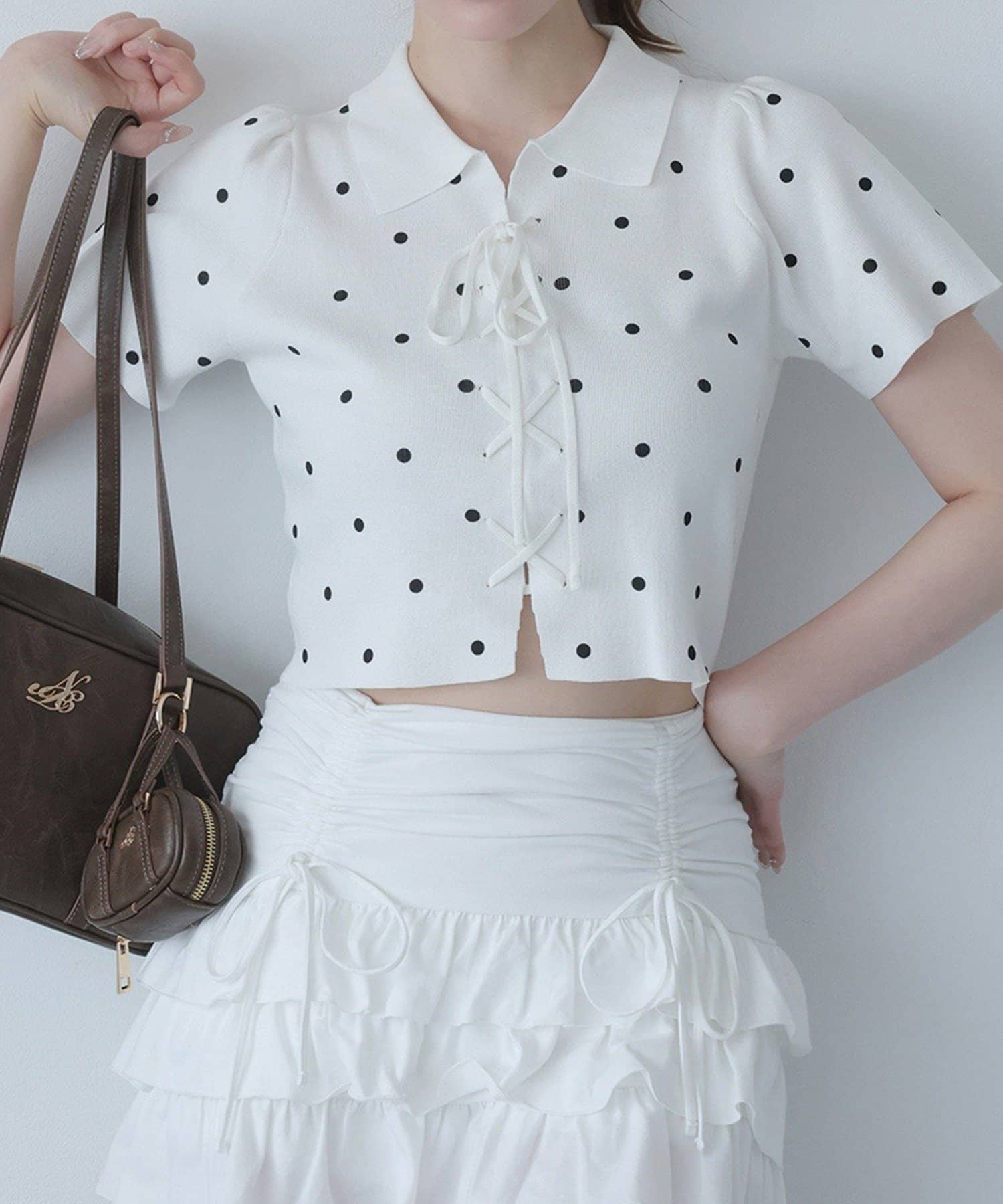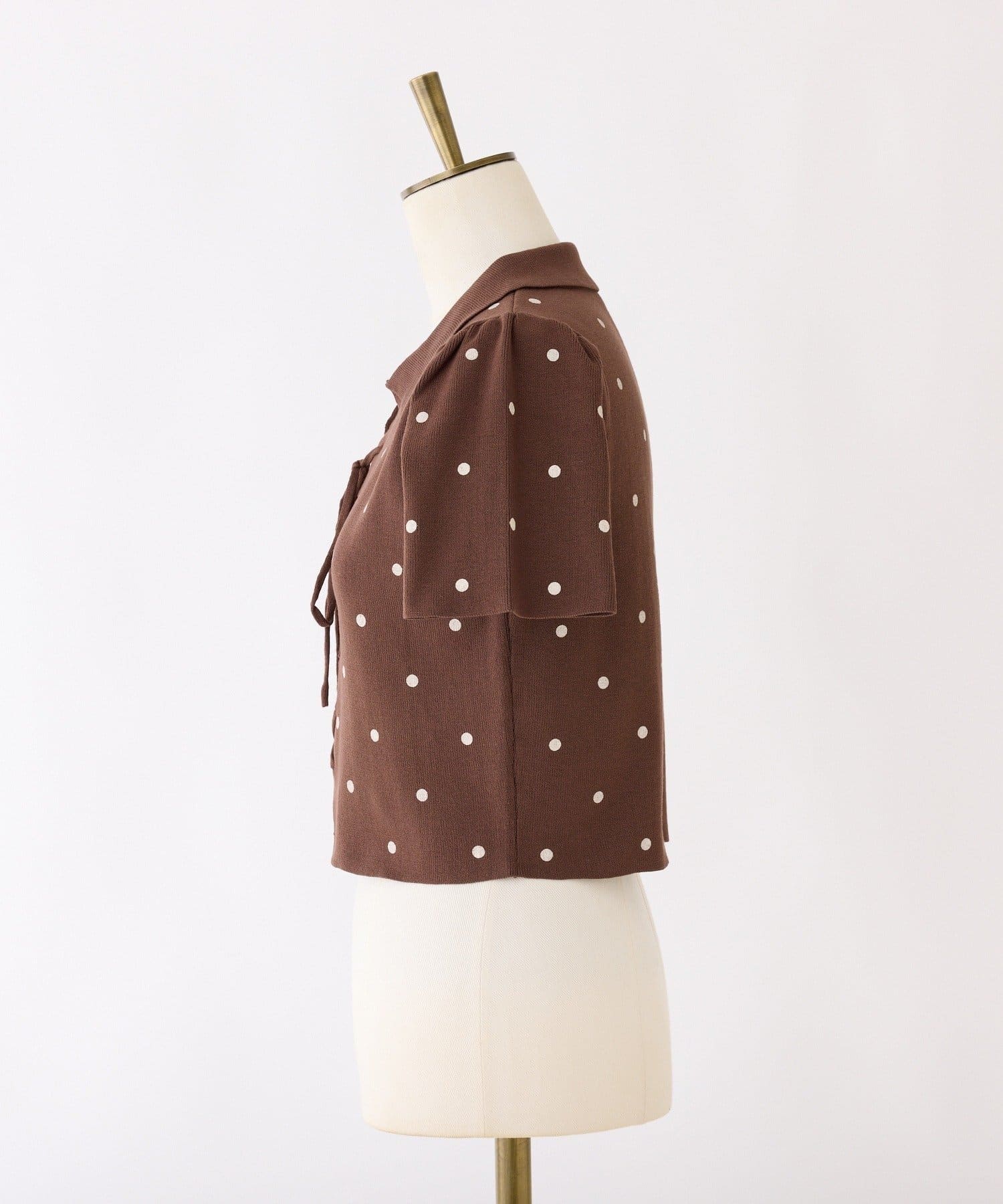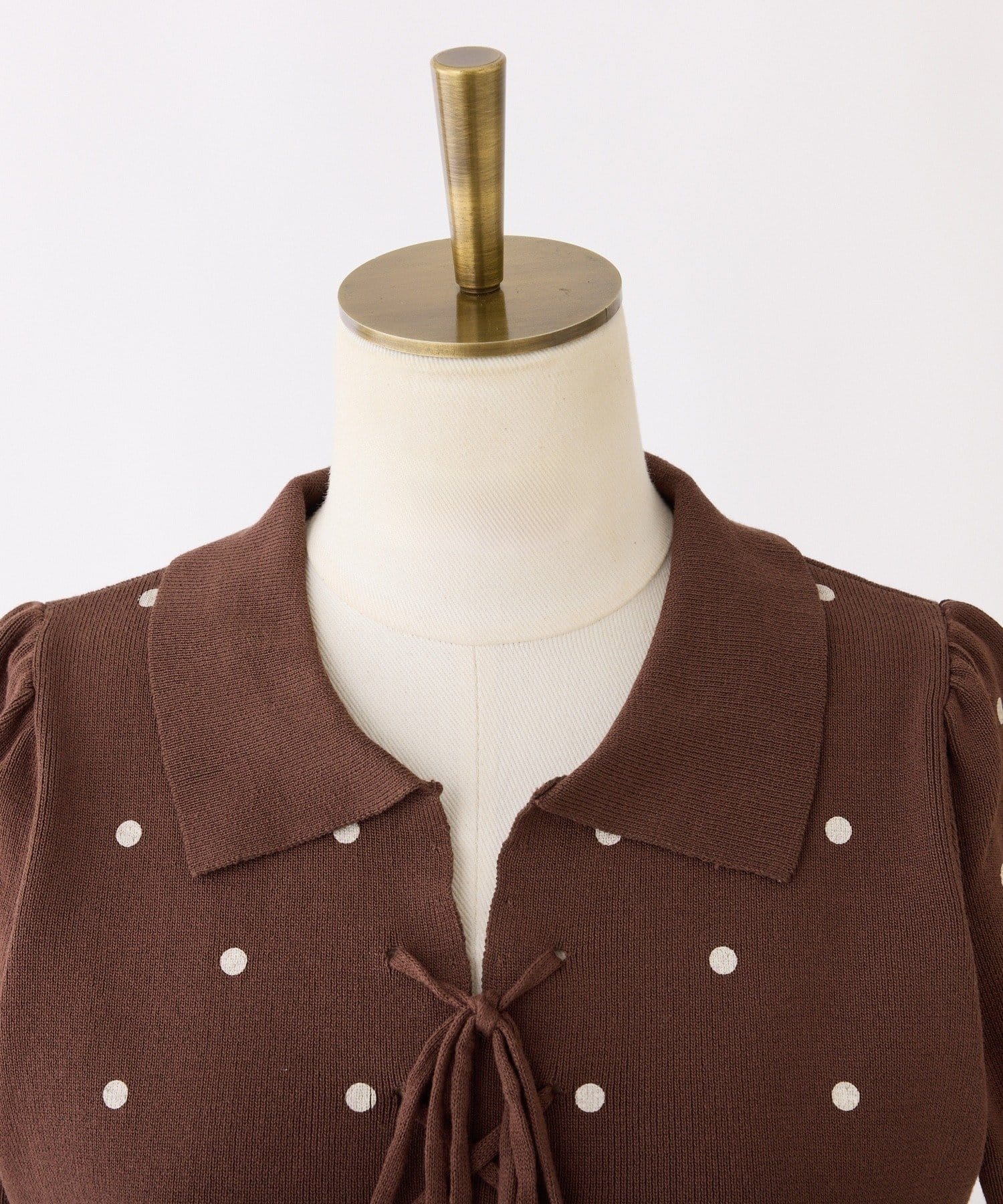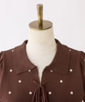 クラシカルなドット柄のニットに襟を合わせた甘さたっぷりの一枚。
